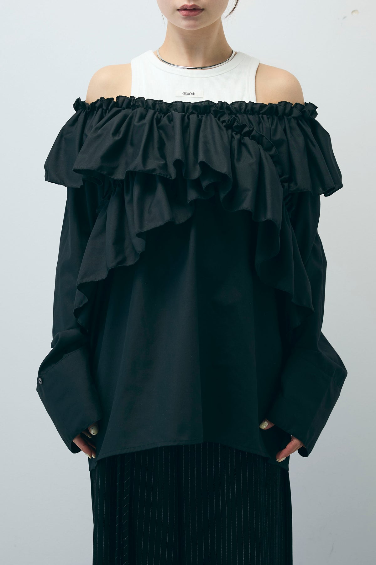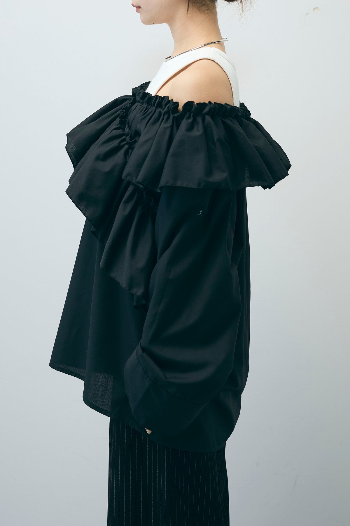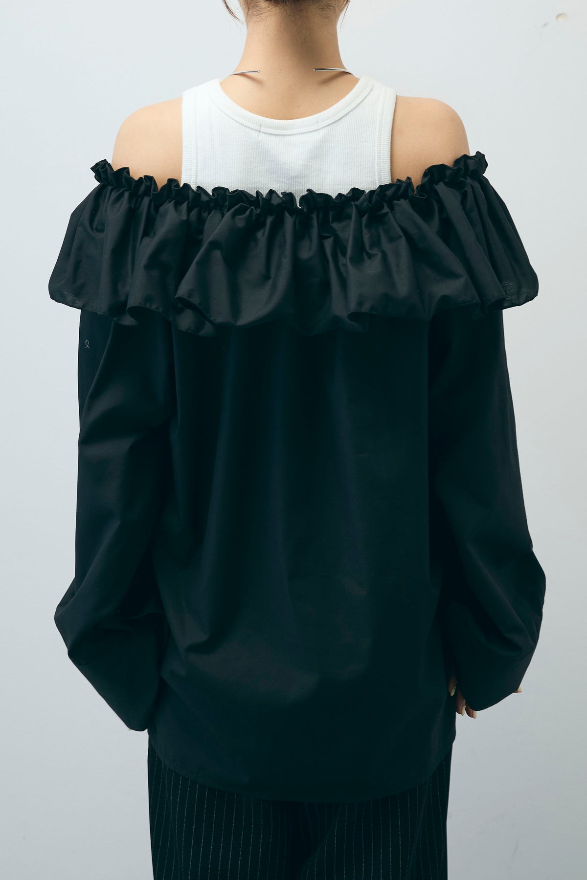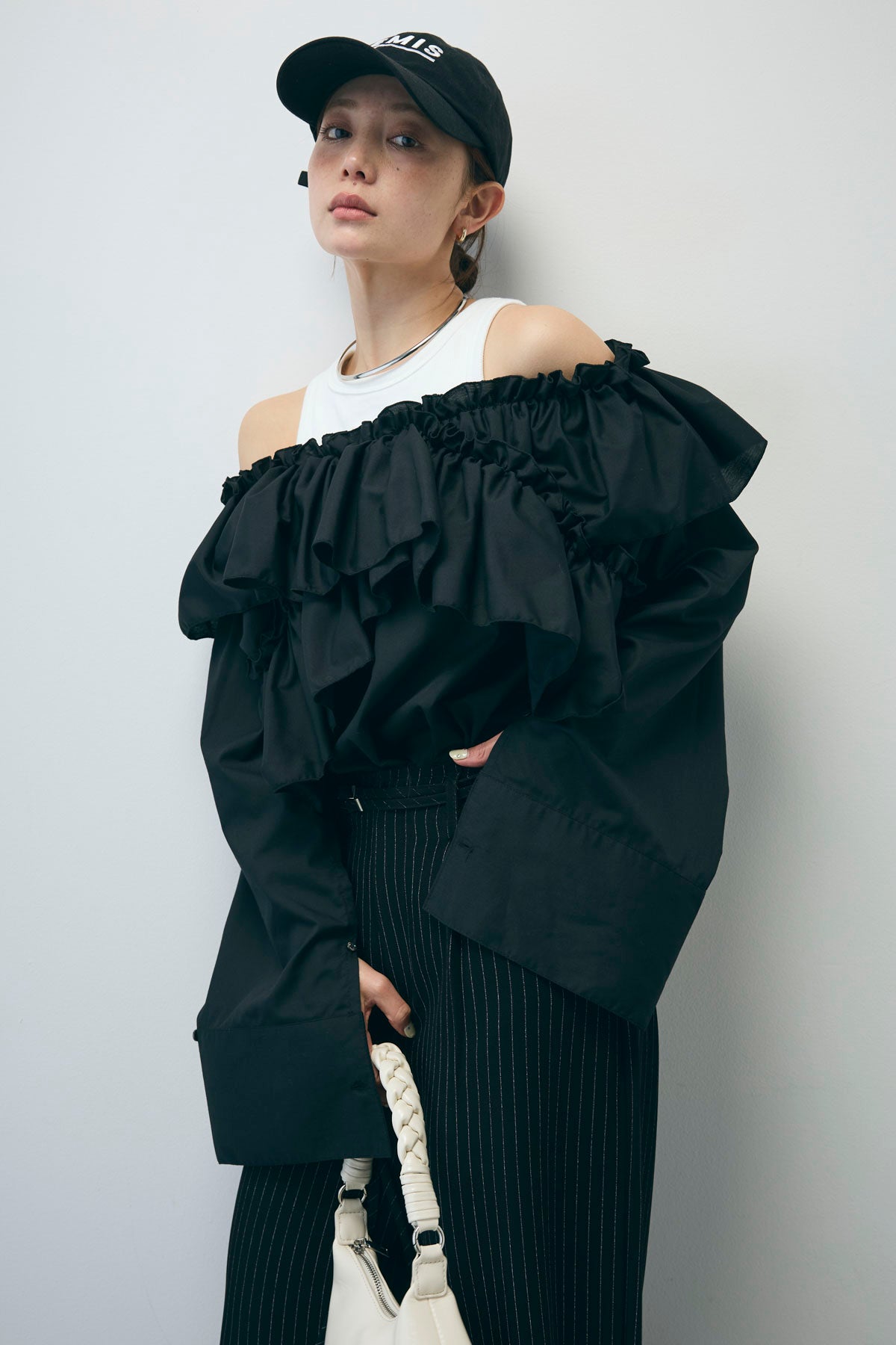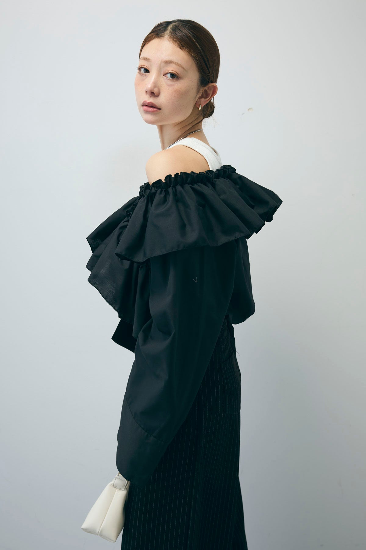 [予約/SET]TCブロード2wayフリルオフショルブラウス+ダブルベルトストライプパンツ(2set)