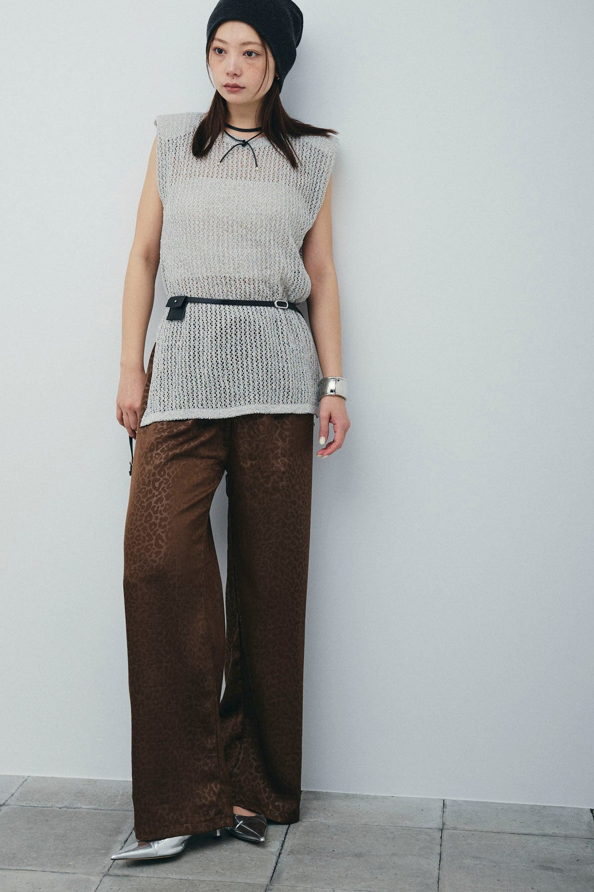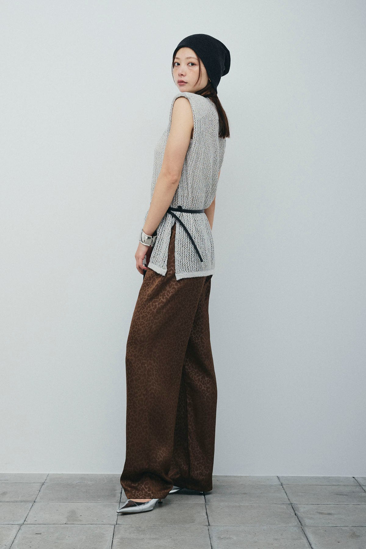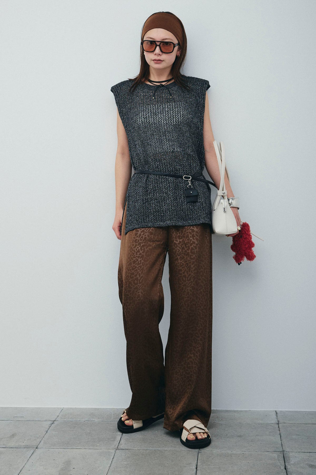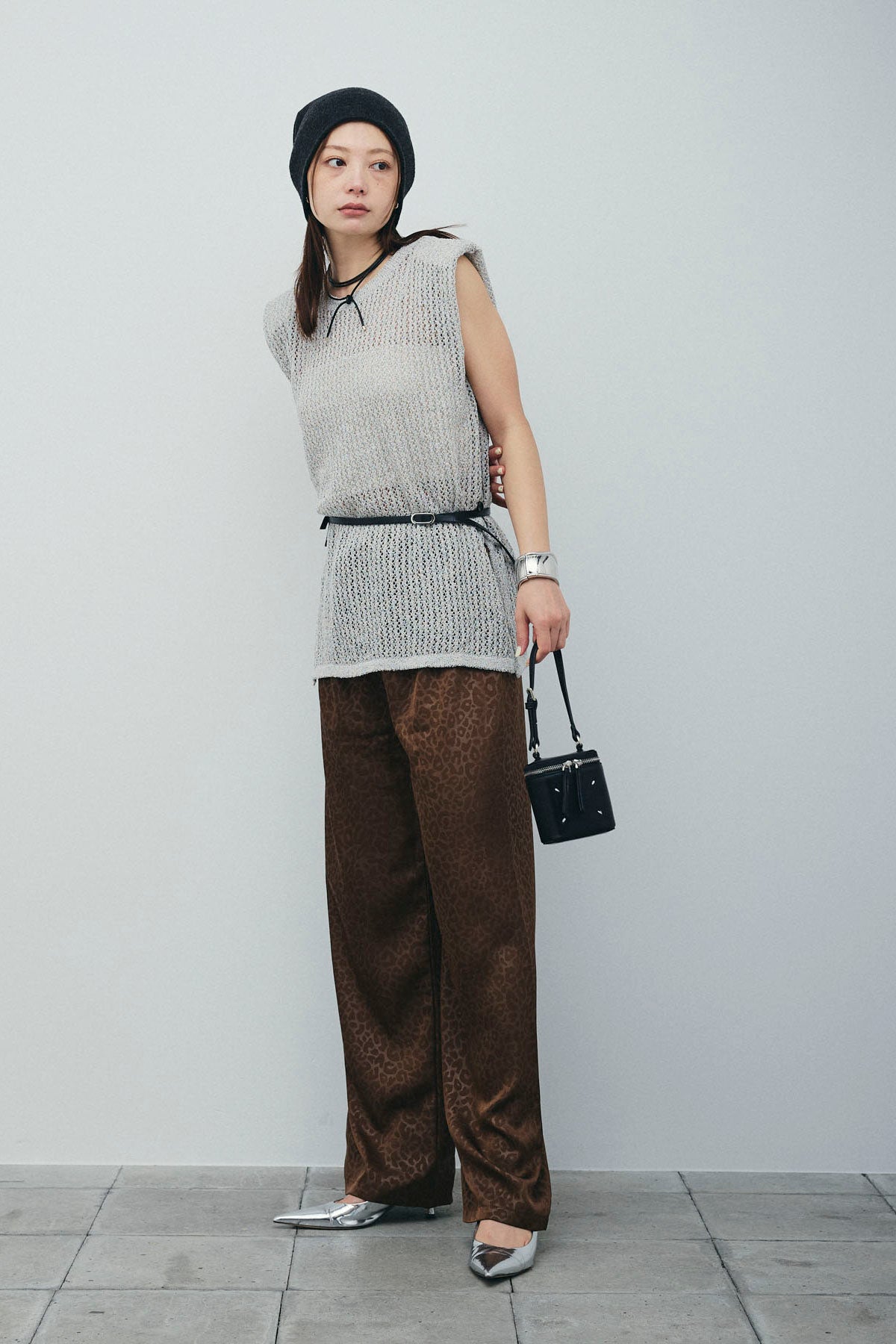[予約/SET]ベルト付きノースリニット+フェイクサテンレオパードワイドパンツ(2set)
