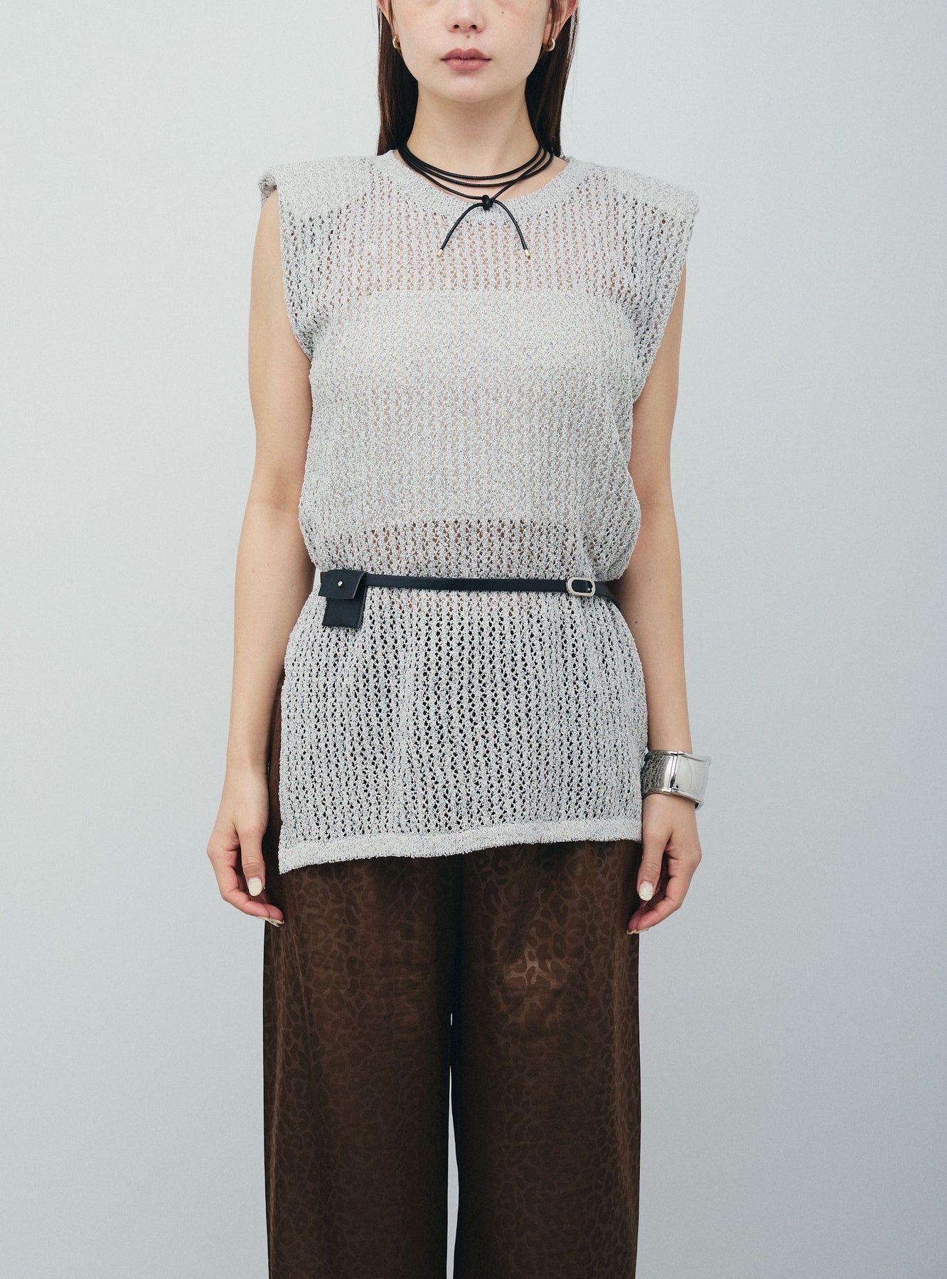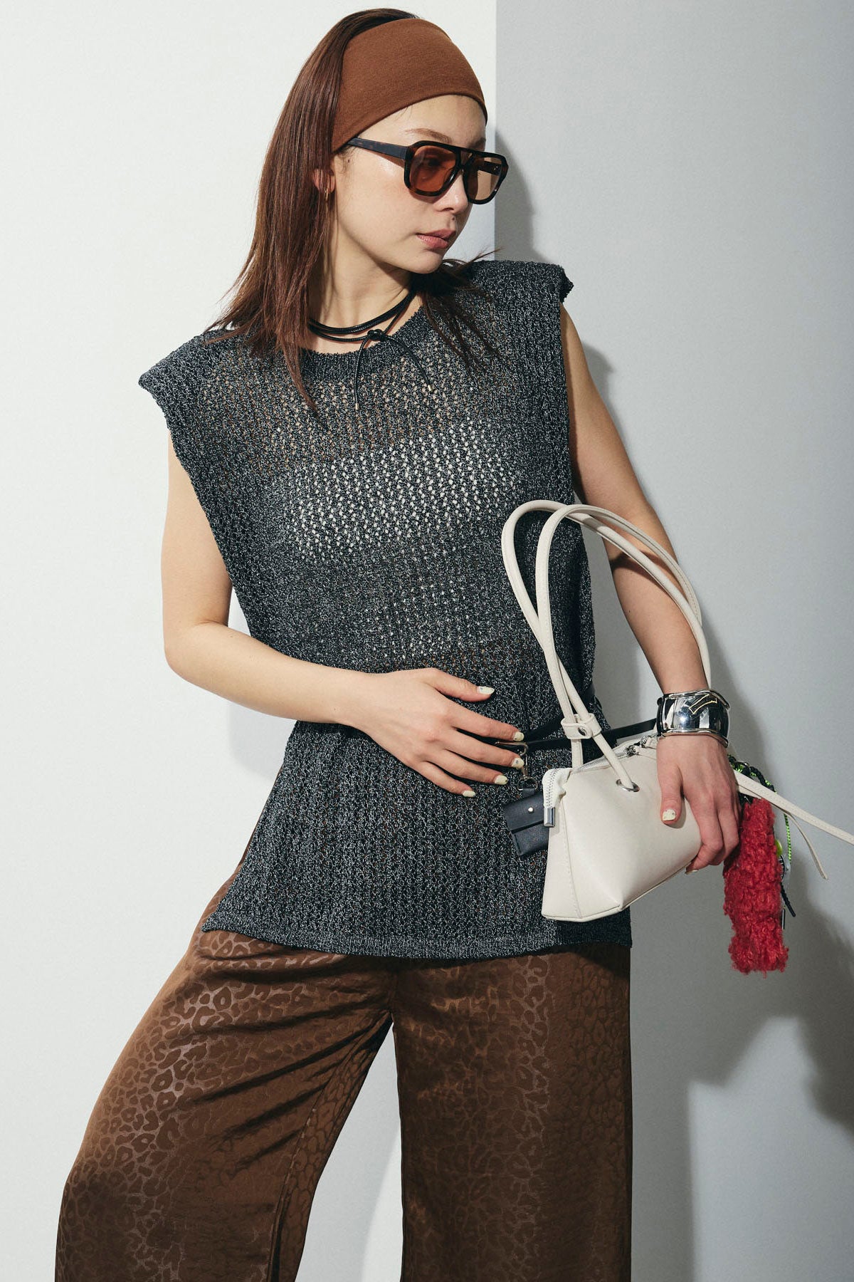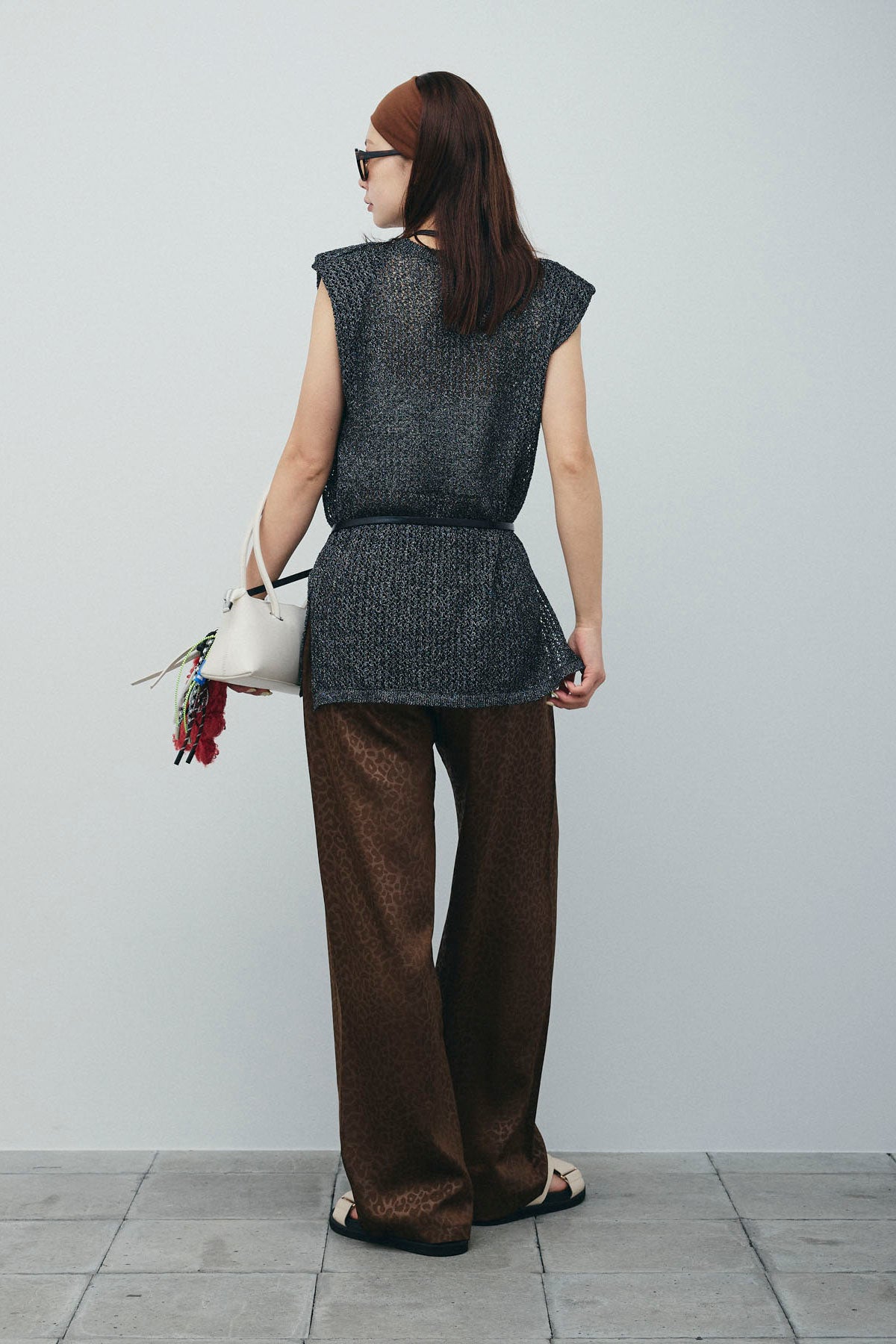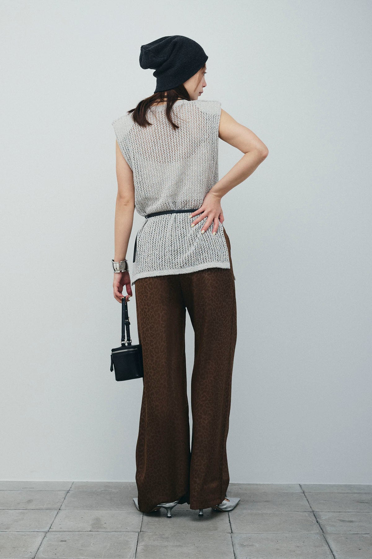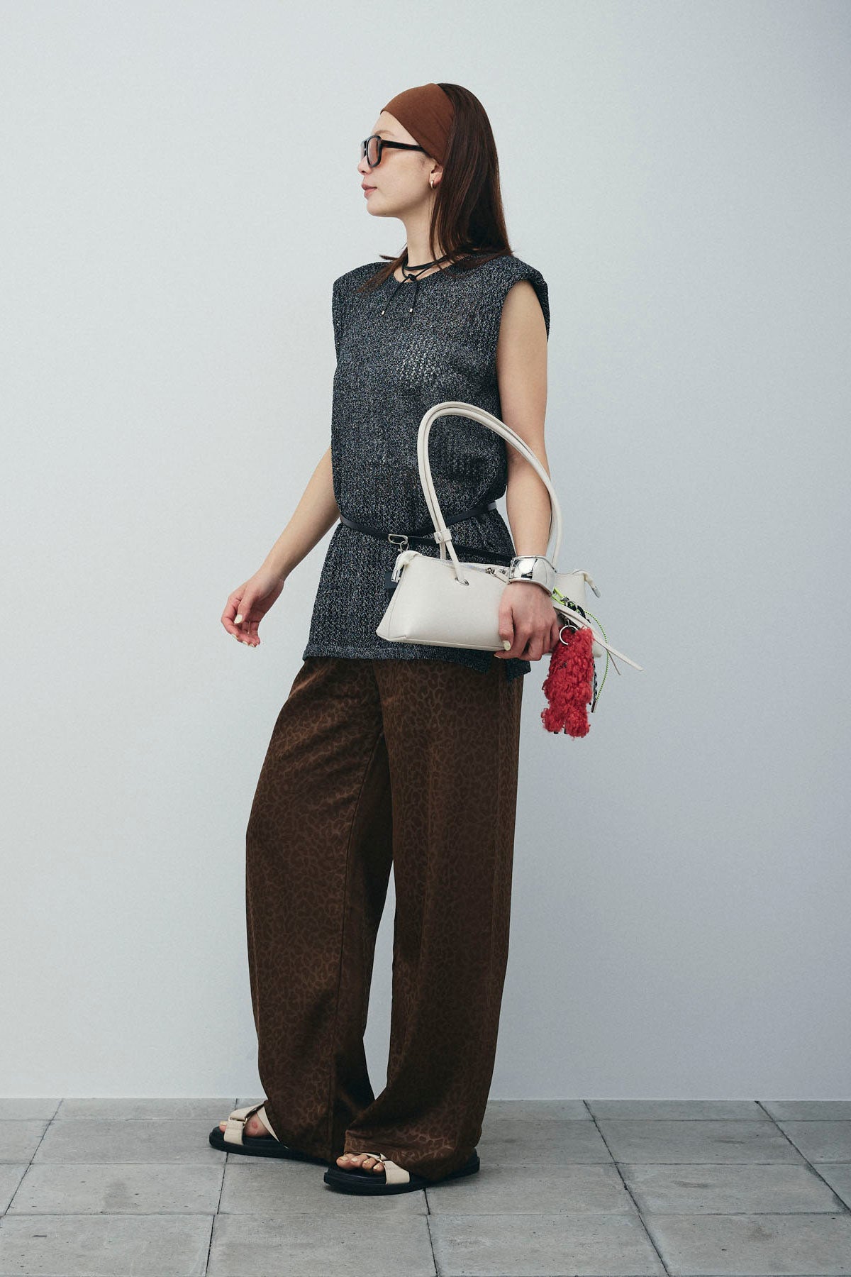 [予約/SET]ベルト付きノースリニット+フェイクサテンレオパードワイドパンツ(2set)