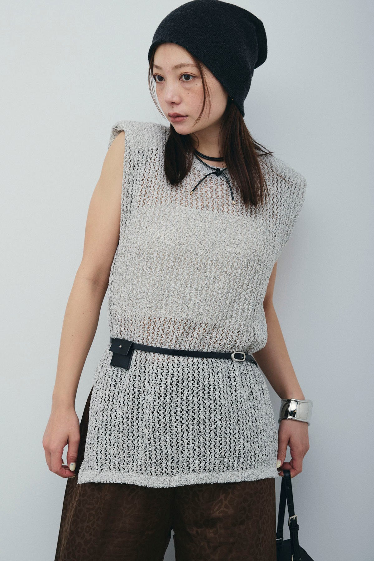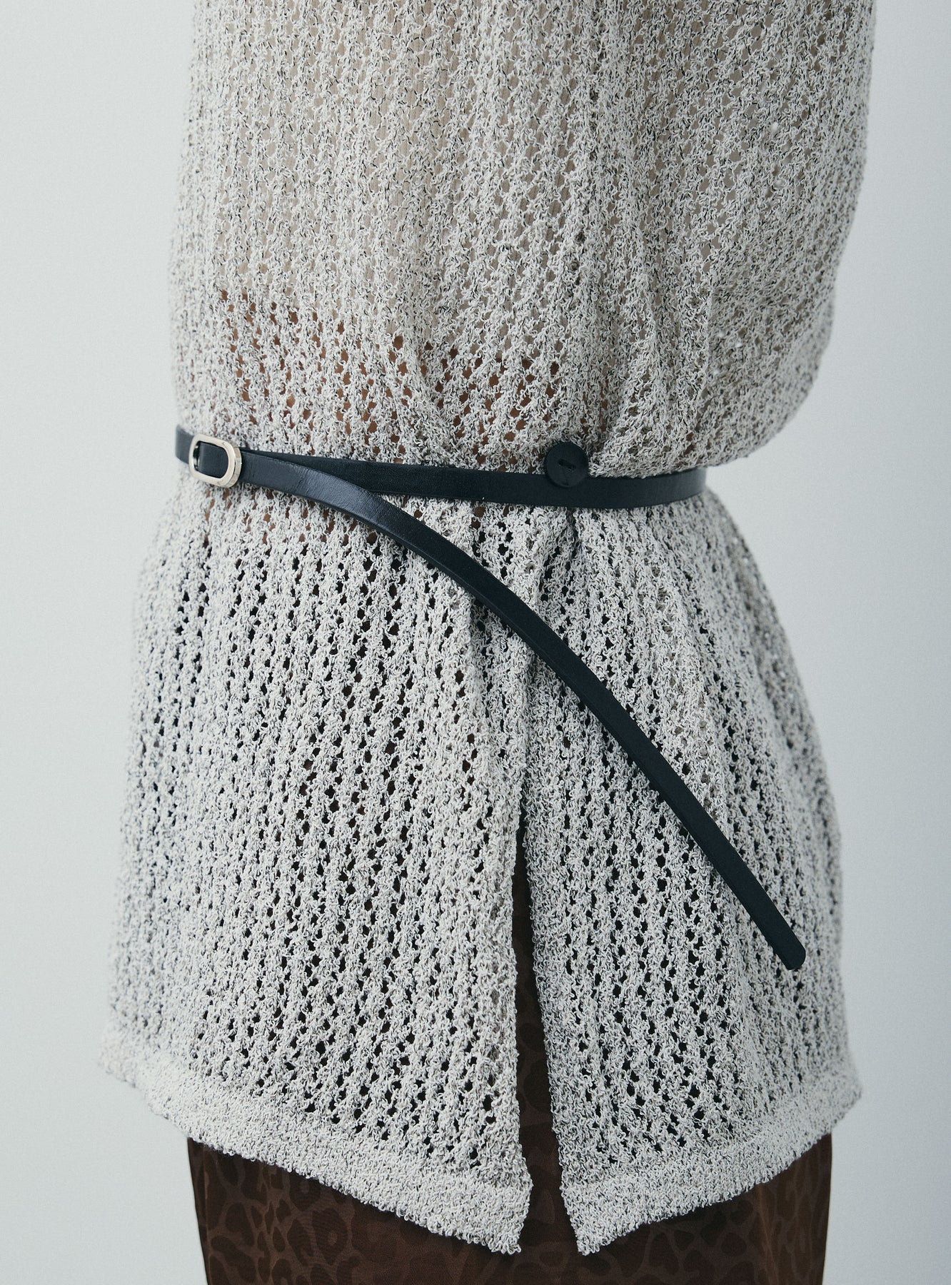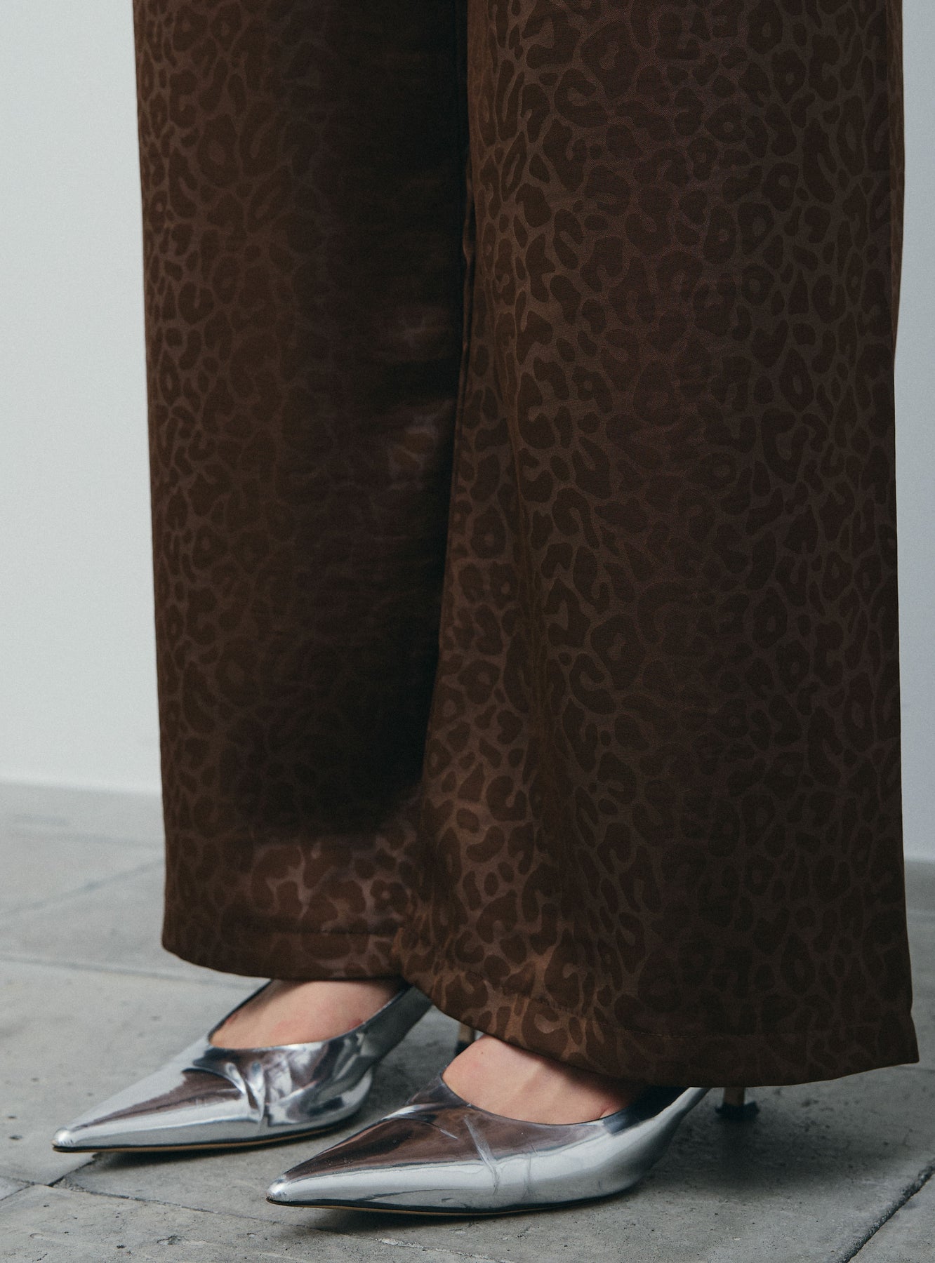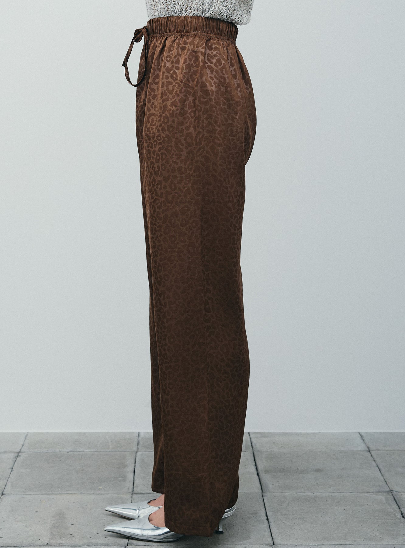[予約/SET]ベルト付きノースリニット+フェイクサテンレオパードワイドパンツ(2set)