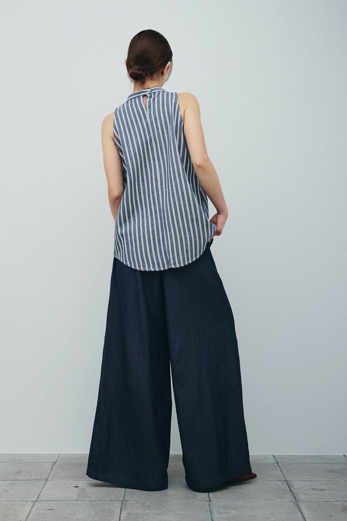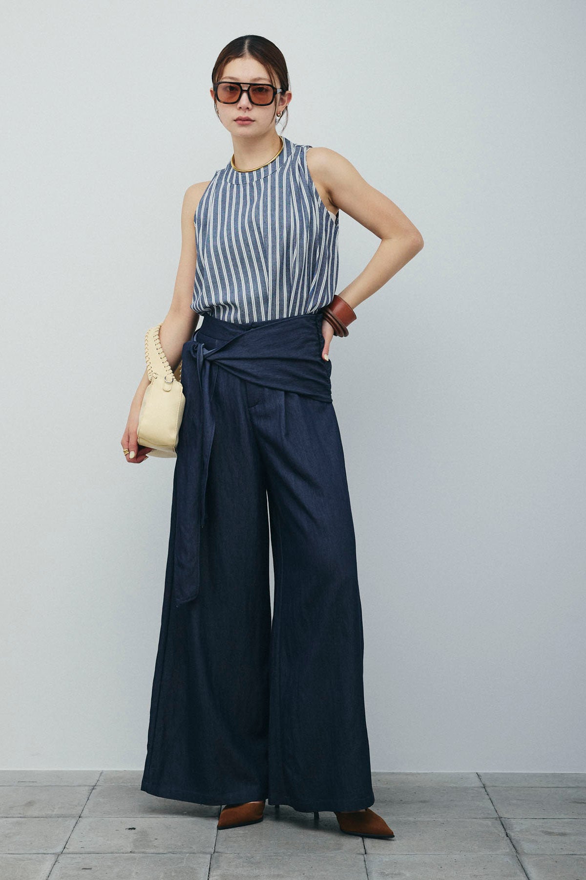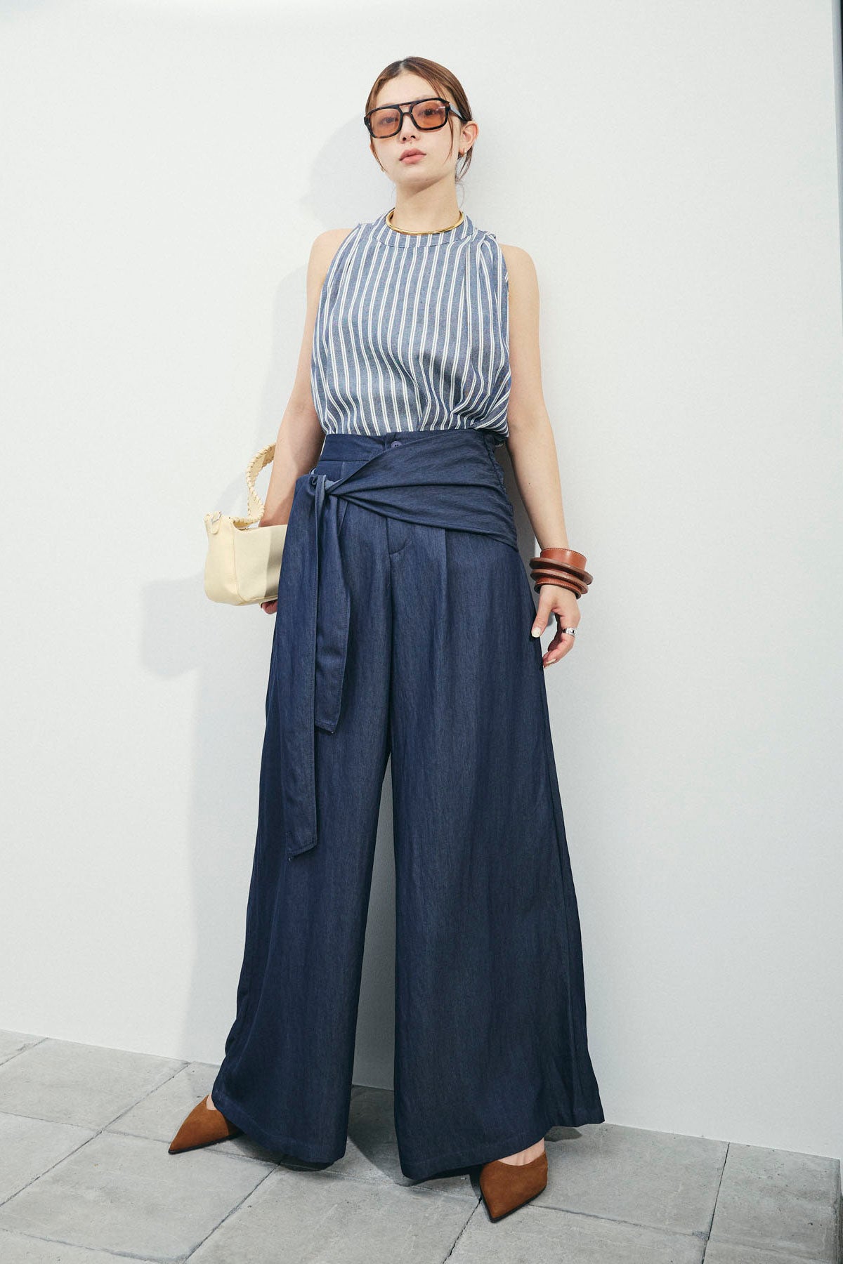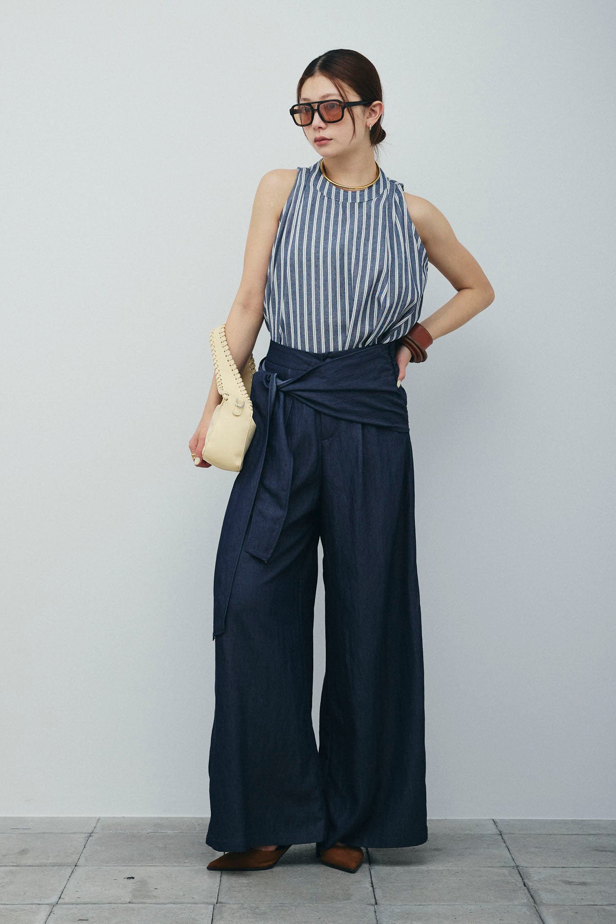 [予約/SET]ダブルストライプホルターブラウス+サイドラップワイドパンツ(2set)