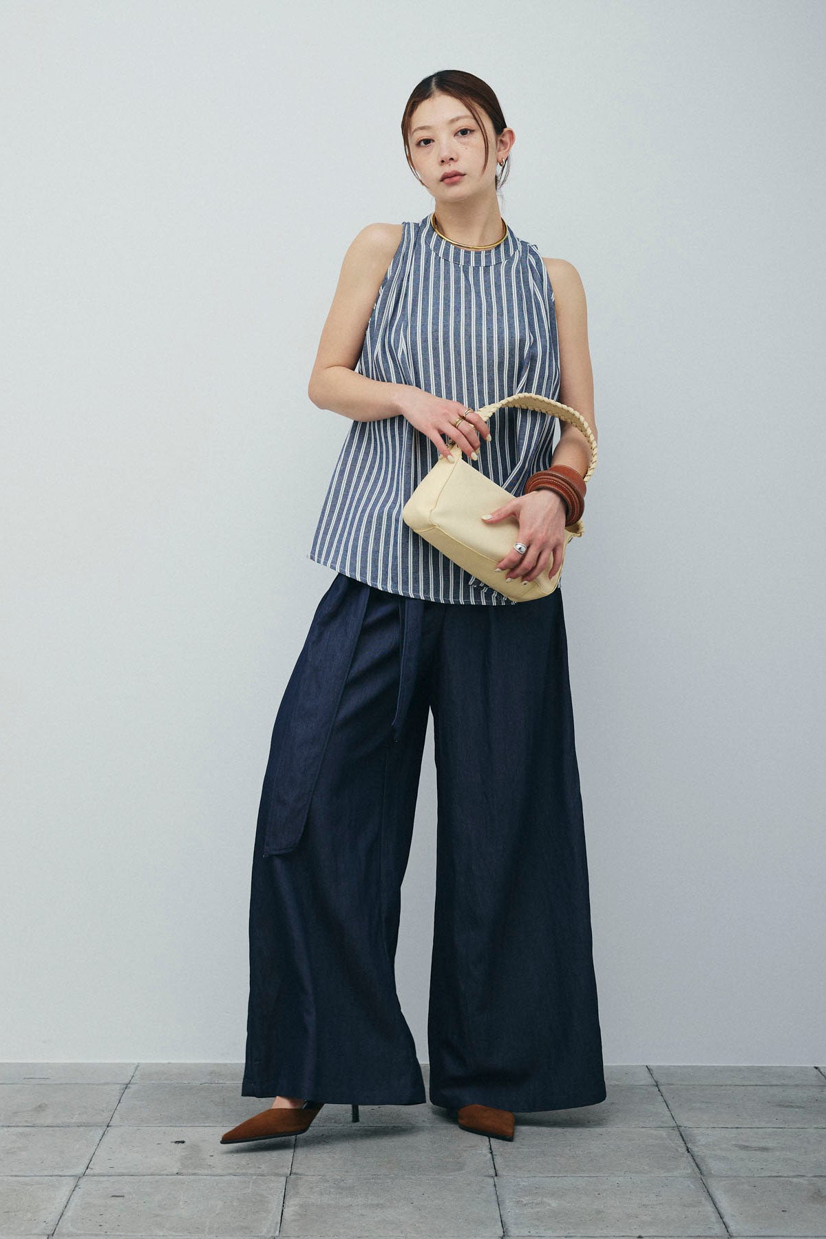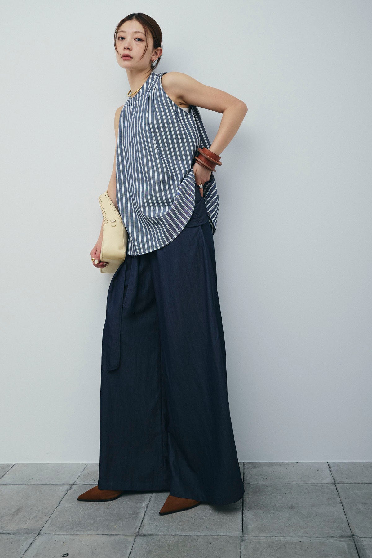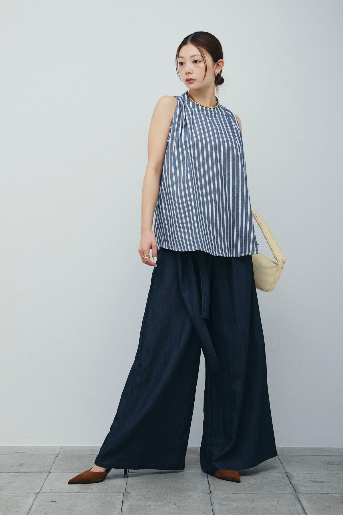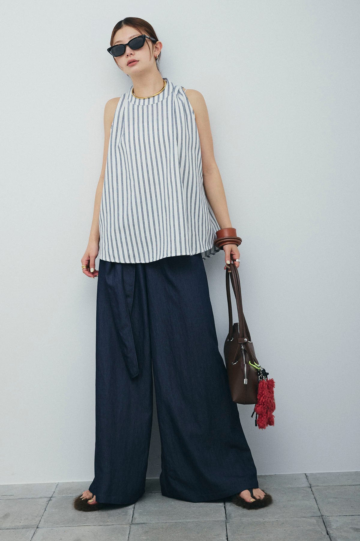 [予約/SET]ダブルストライプホルターブラウス+サイドラップワイドパンツ(2set)