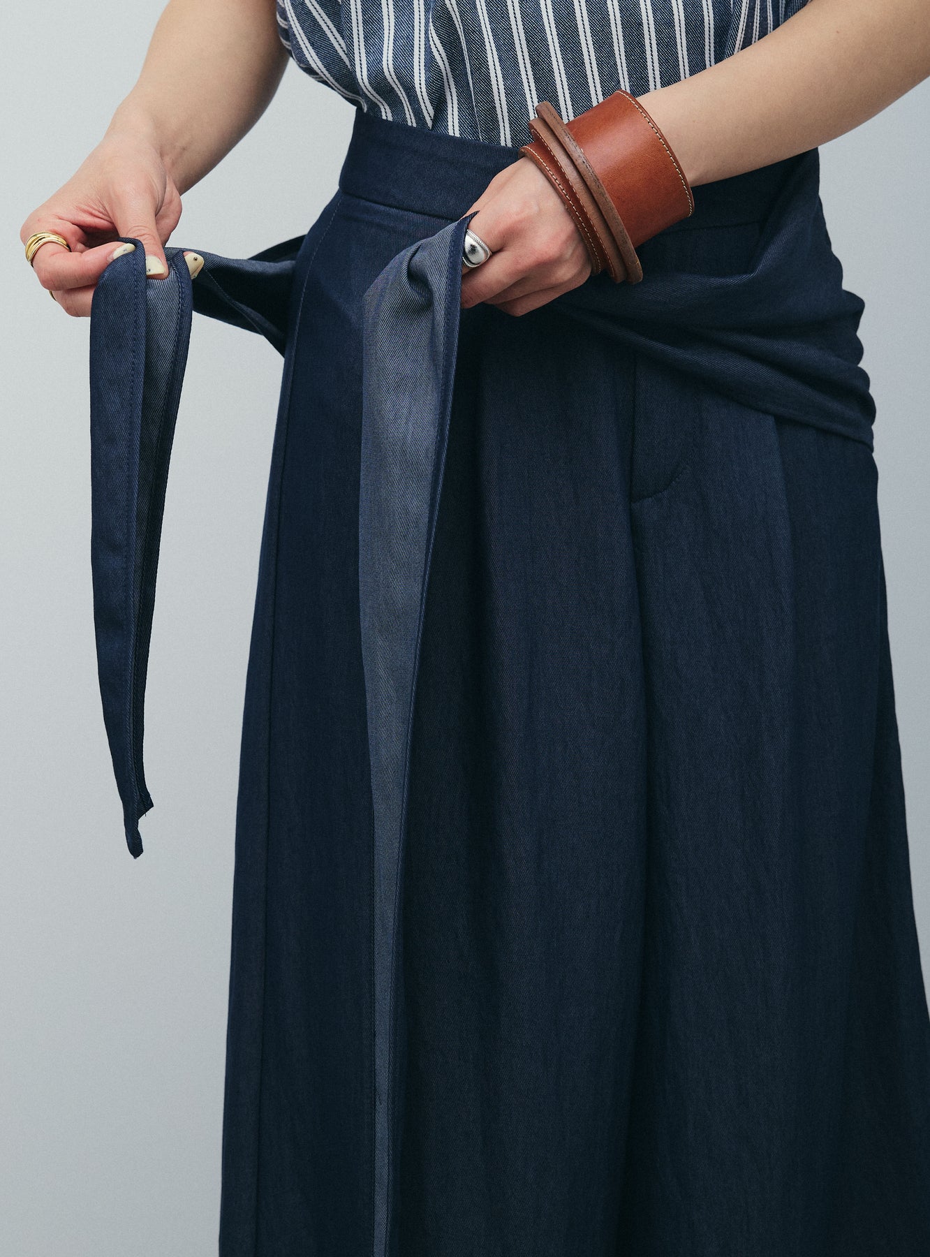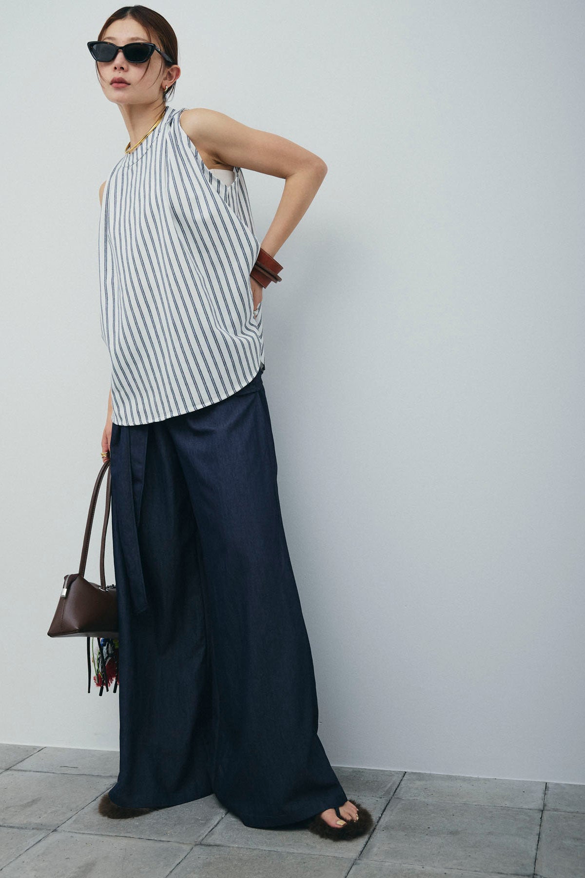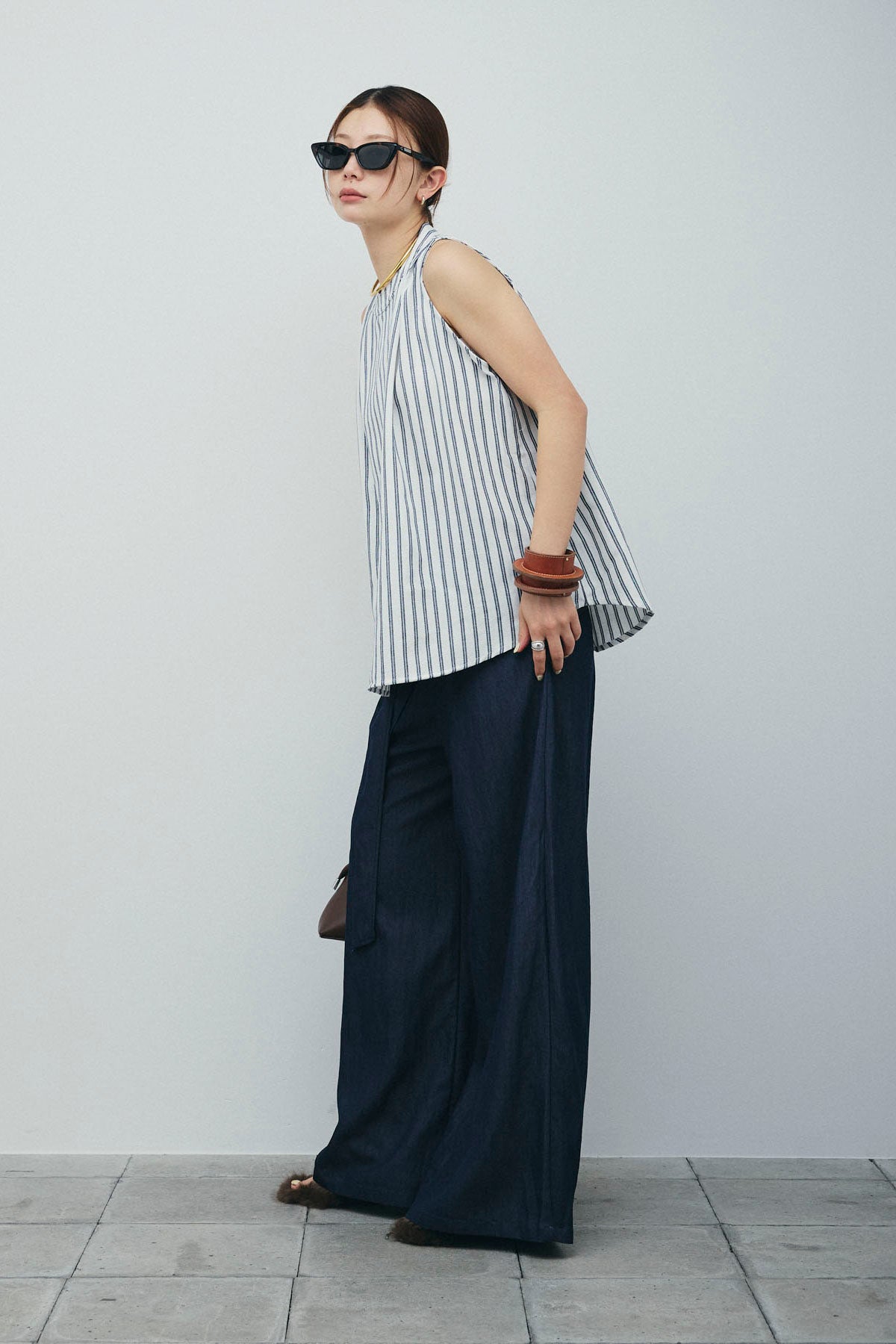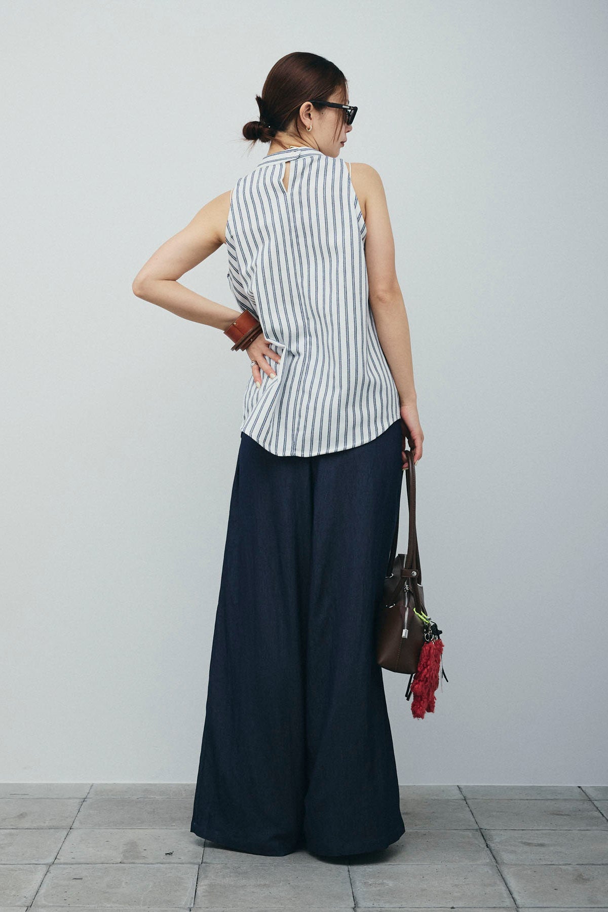 [予約/SET]ダブルストライプホルターブラウス+サイドラップワイドパンツ(2set)