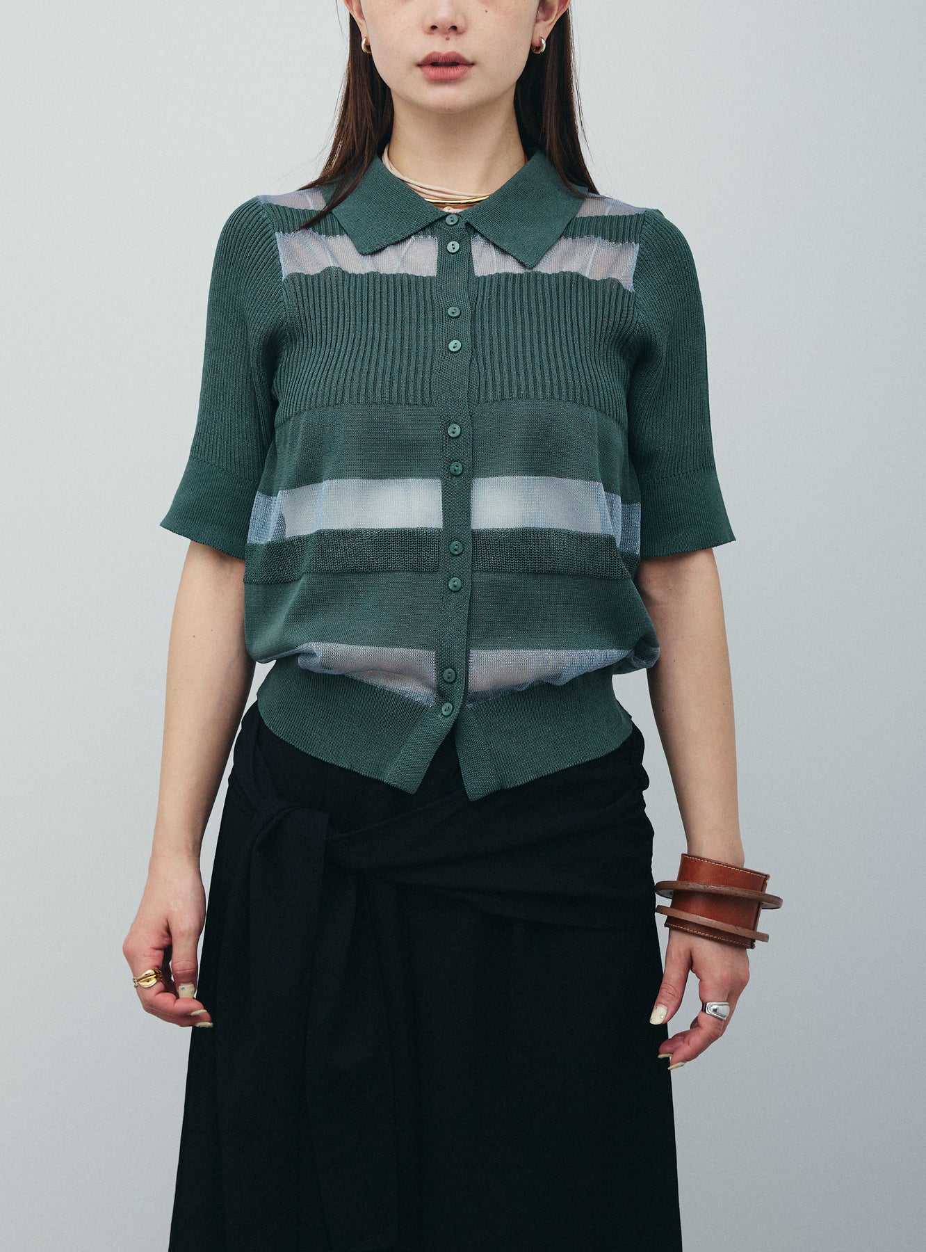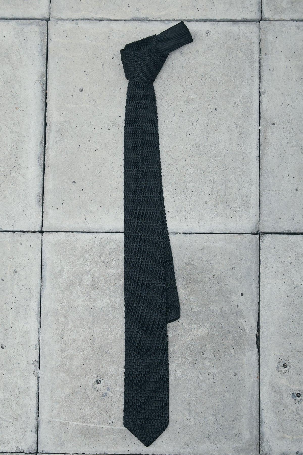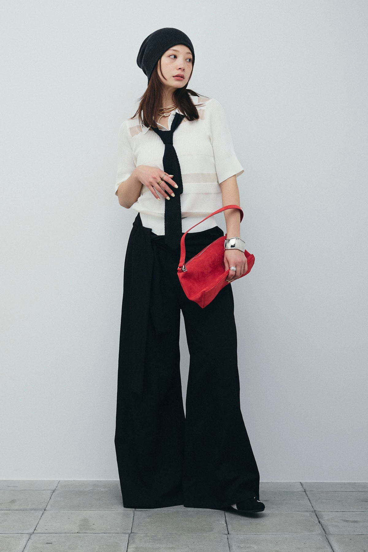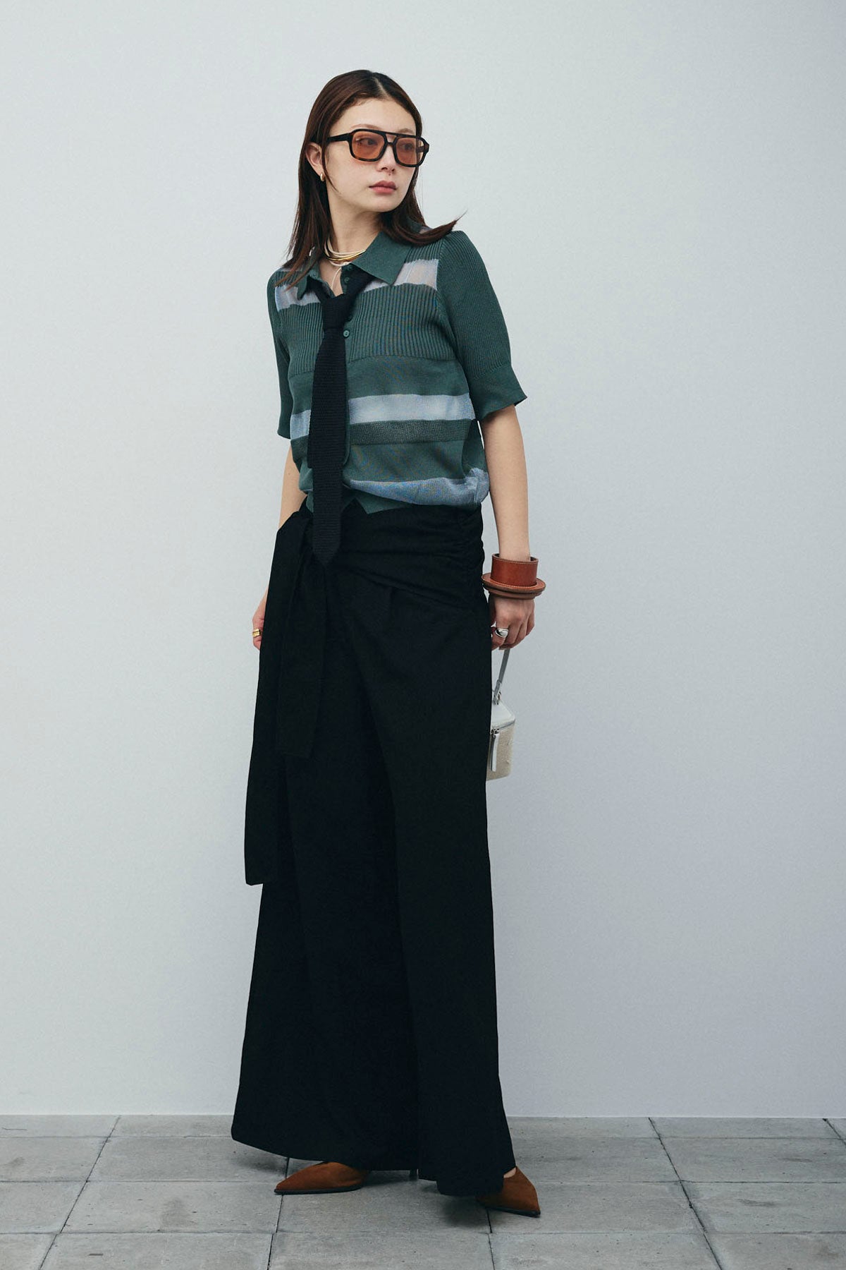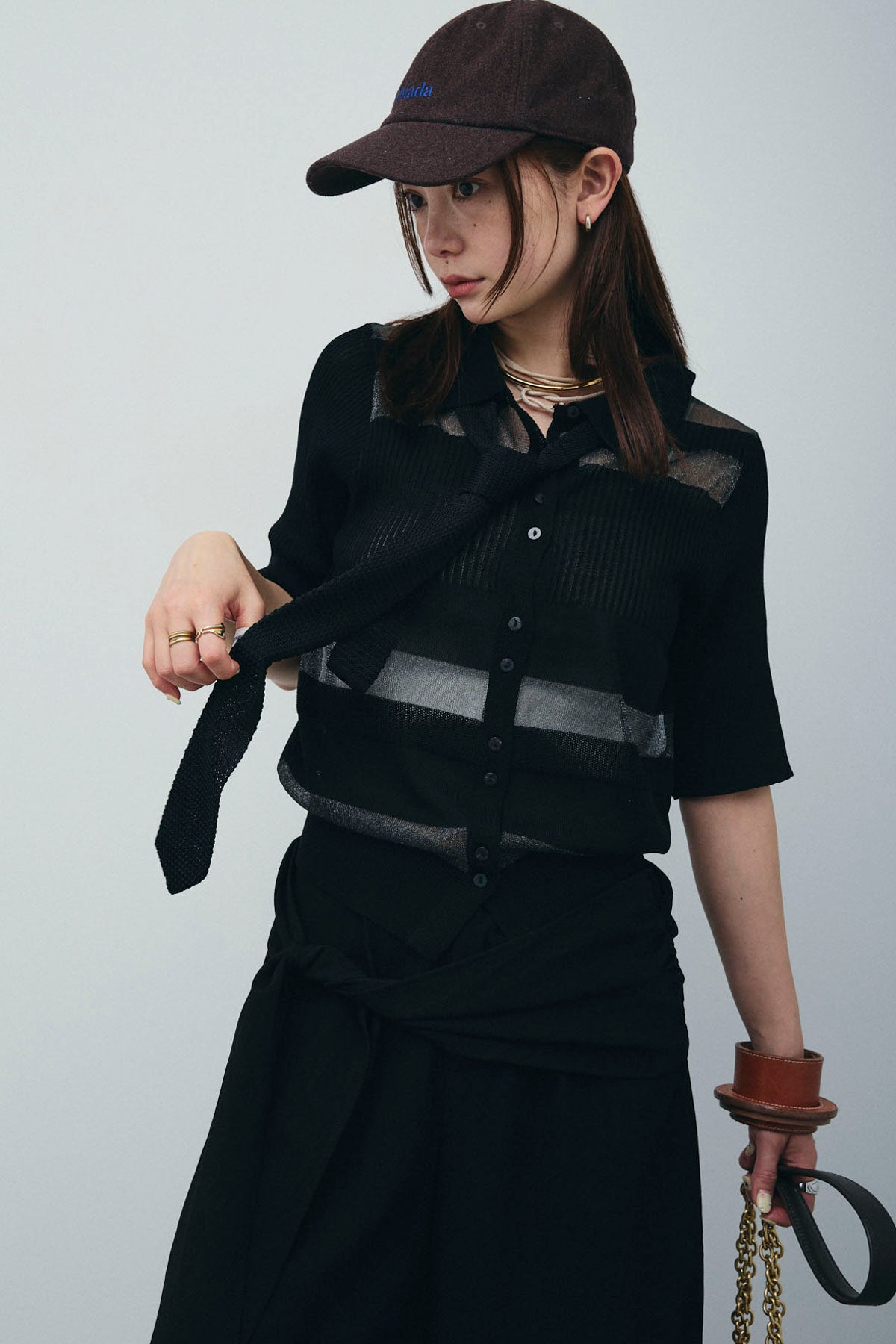 [予約/SET]シアーミックス編みニットポロ+剣先三角シルクニットタイ(2set)