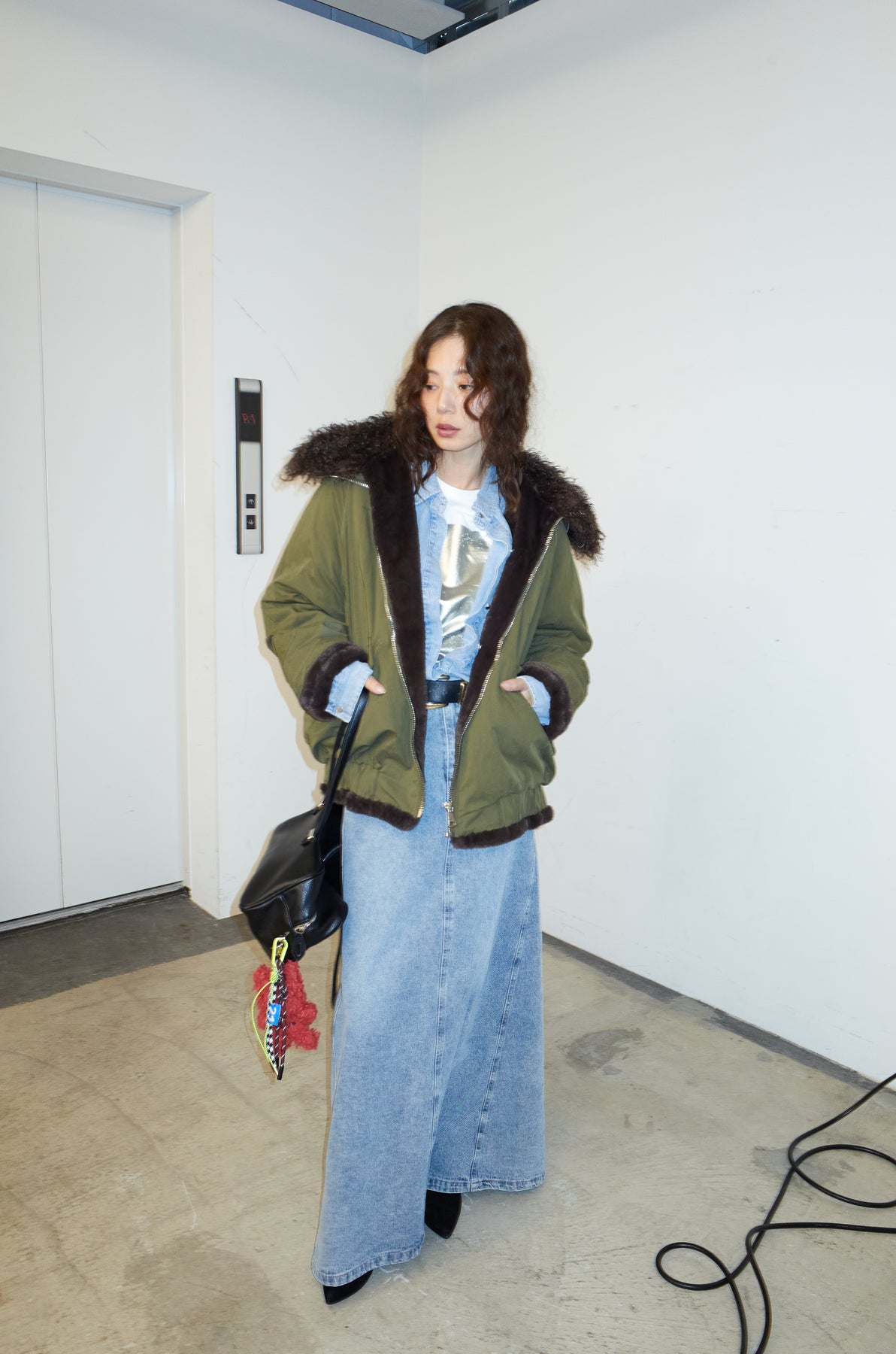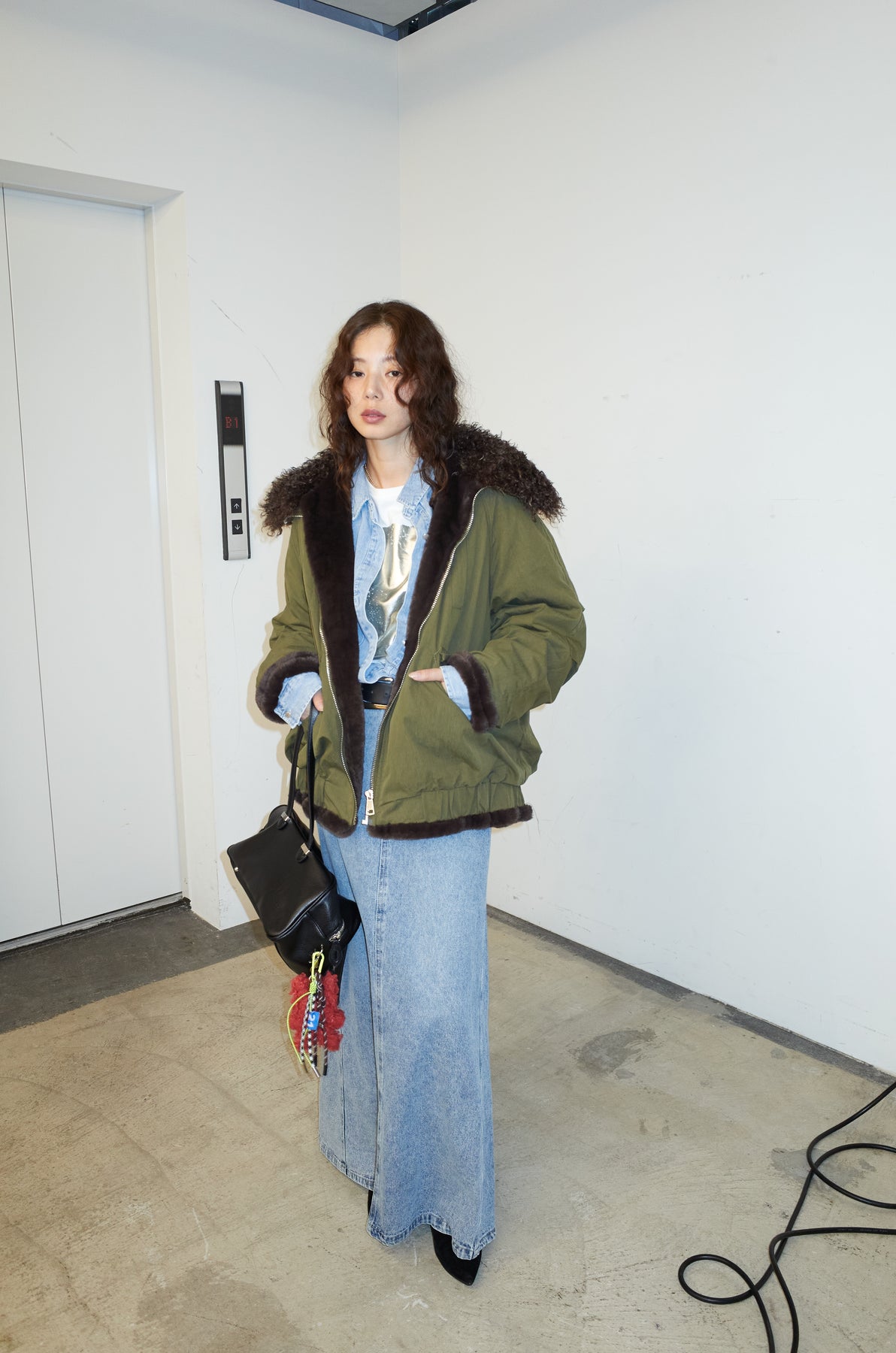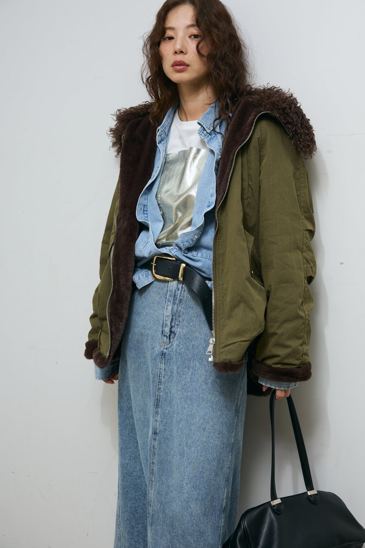 [予約/SET]ボア襟ジップブルゾン+オーセンティックデニムSK(2set)