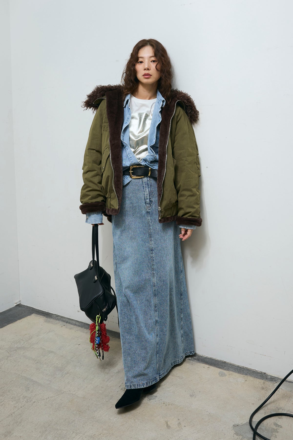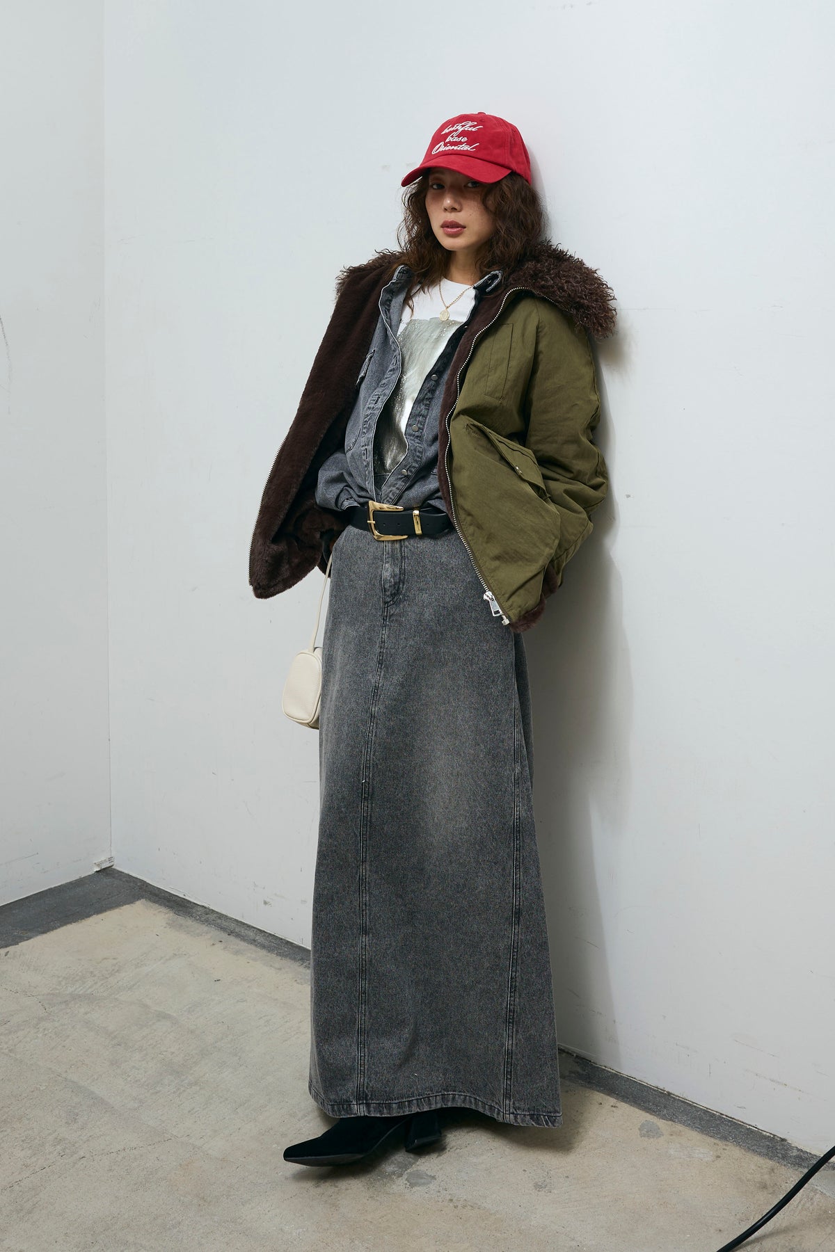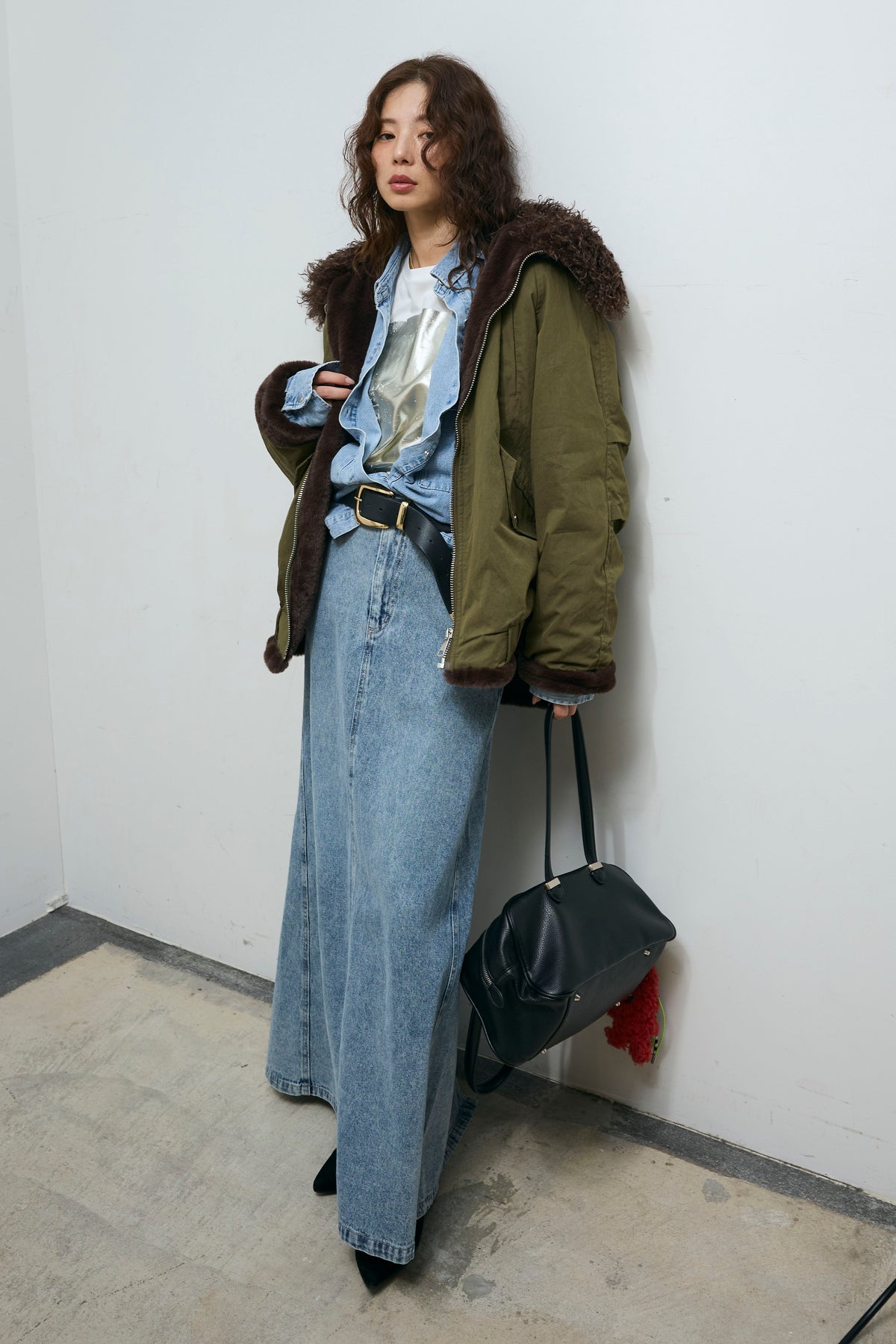 [予約/SET]ボア襟ジップブルゾン+オーセンティックデニムSK(2set)