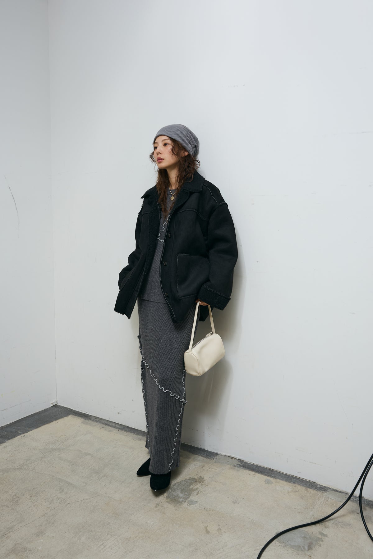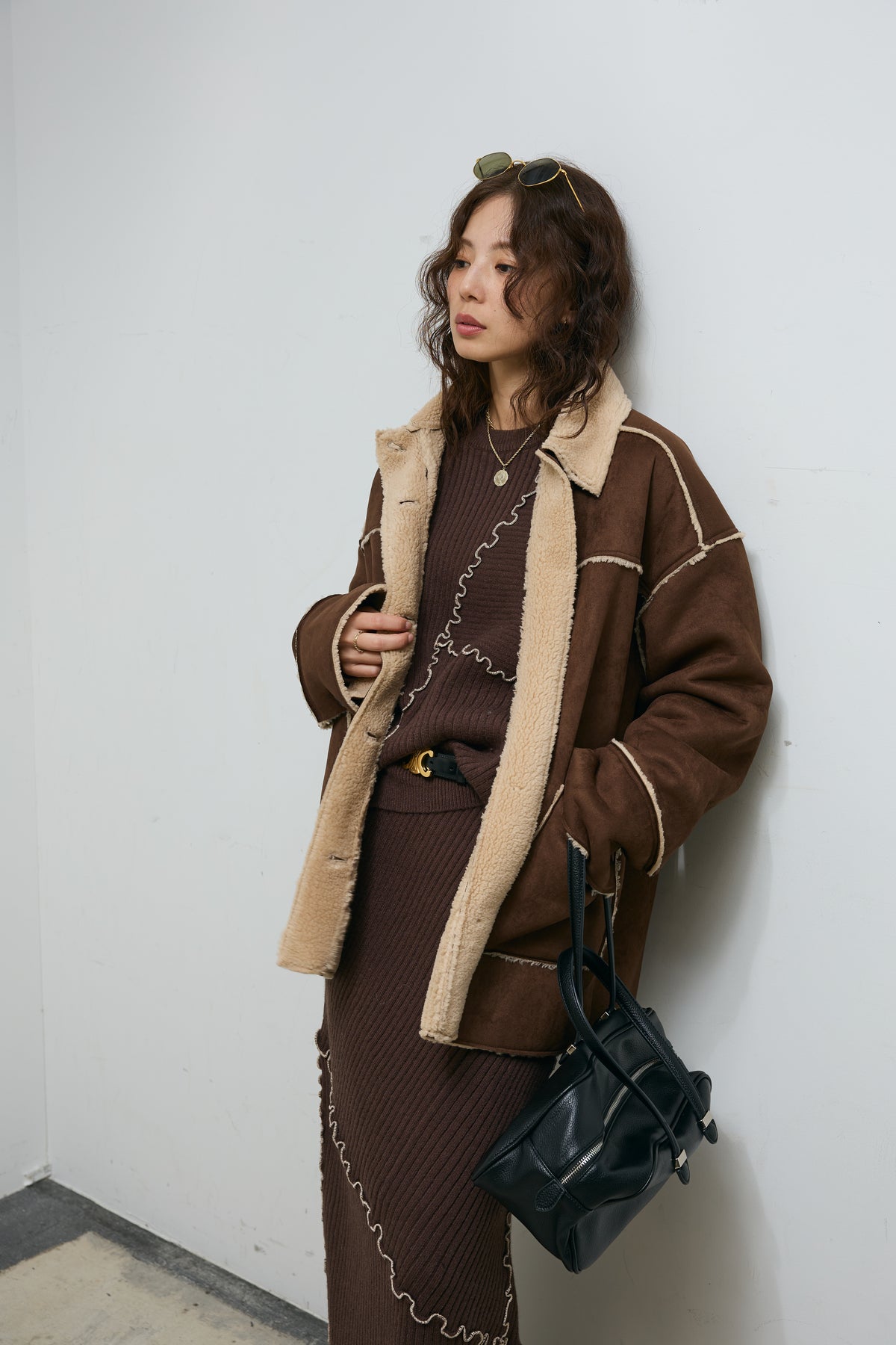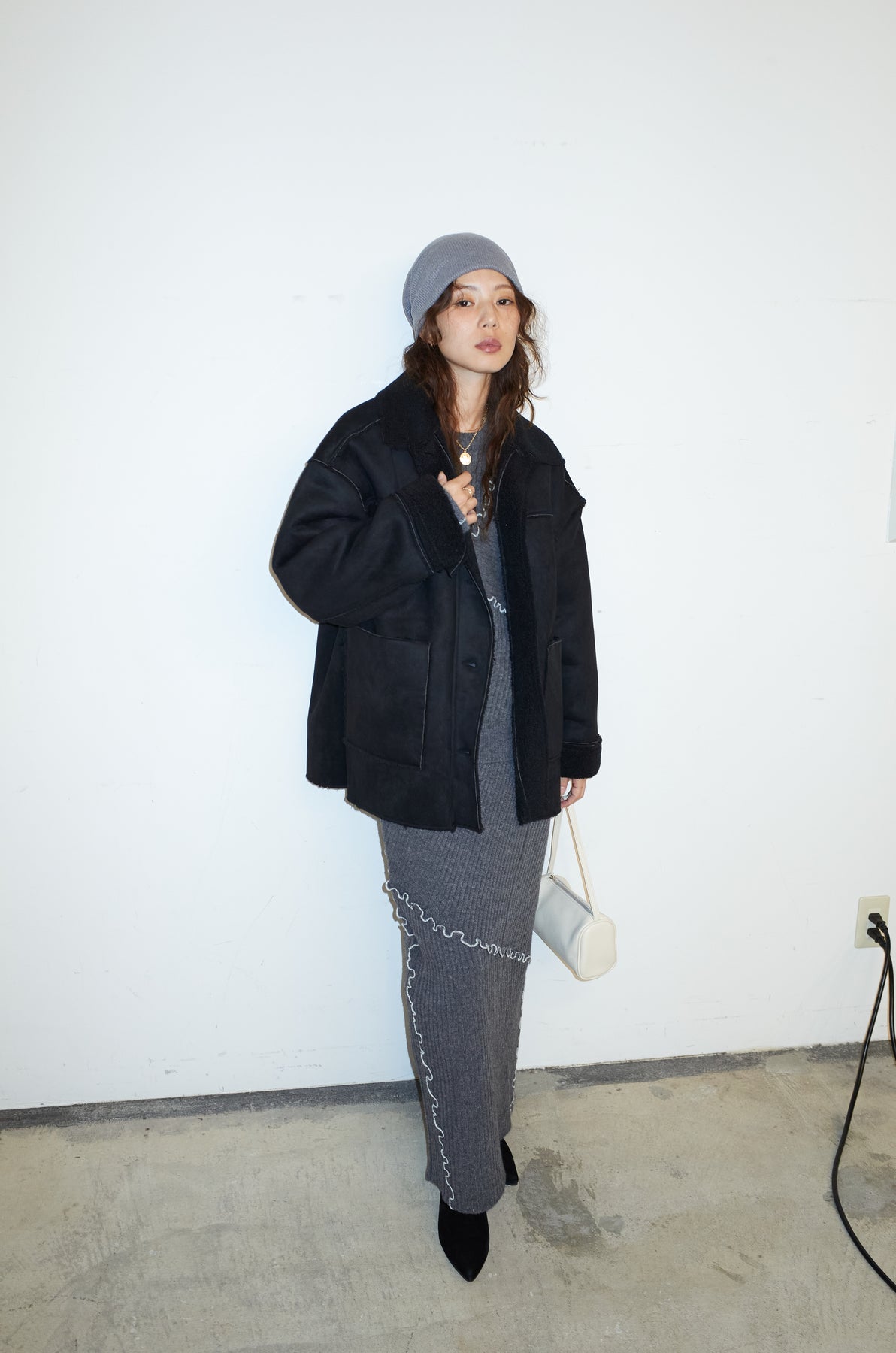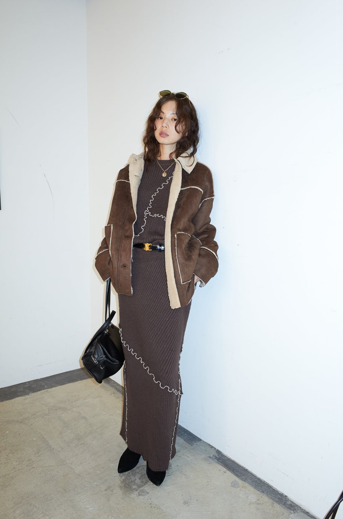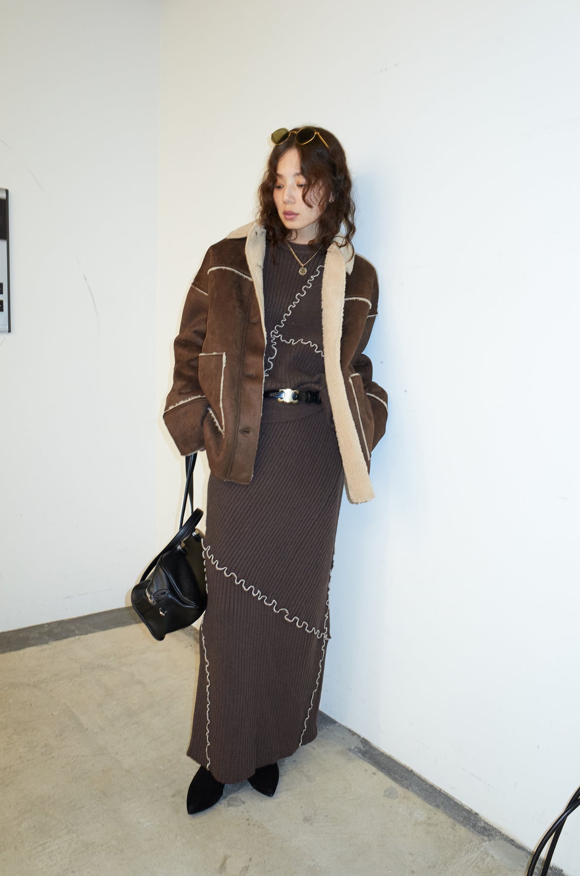 [予約/SET]フェイクムートンジャケット+ランダムメローニット+ランダムメローニットスカート(3set)