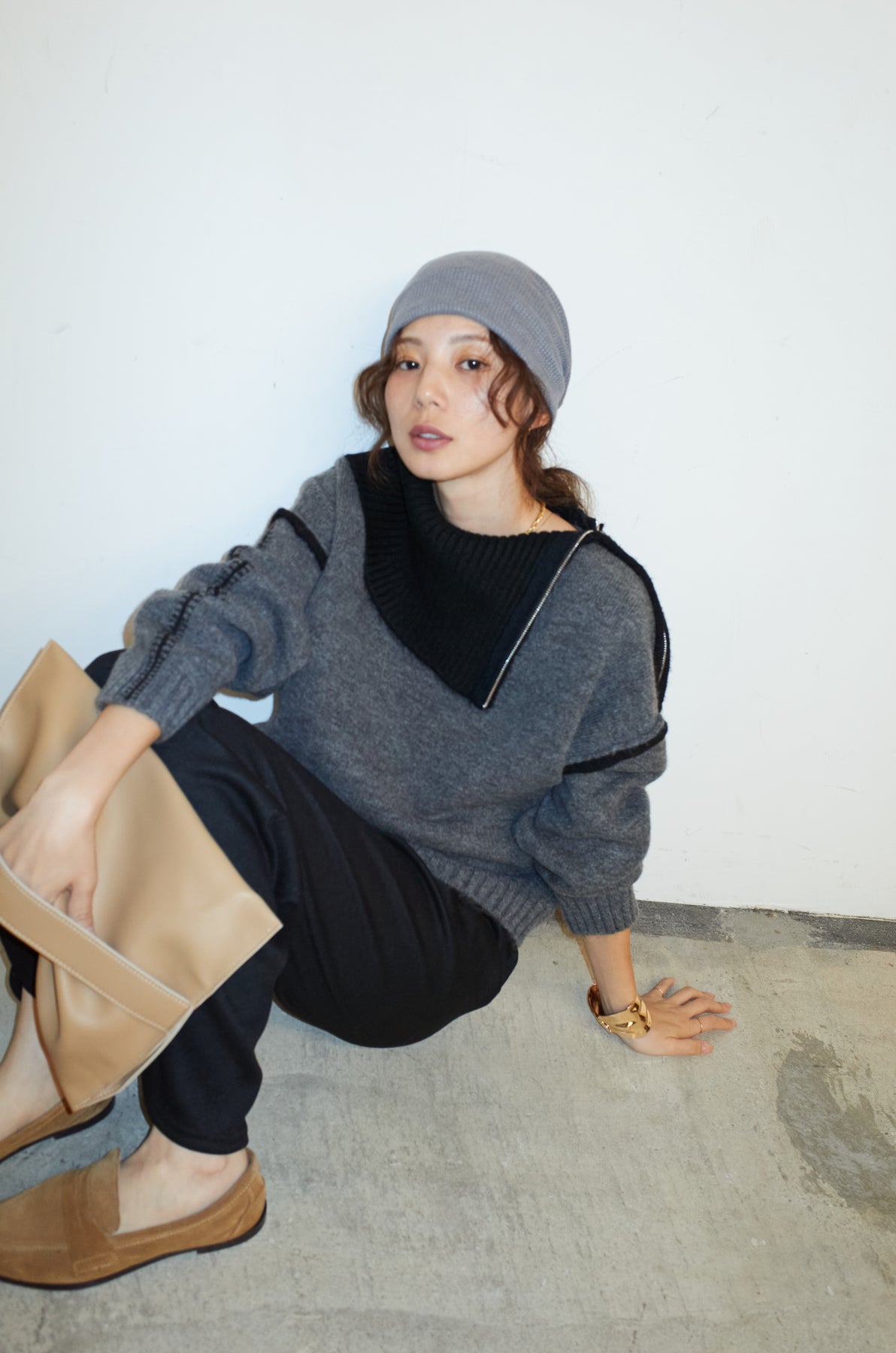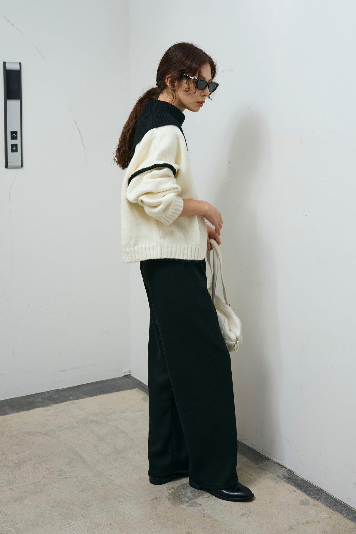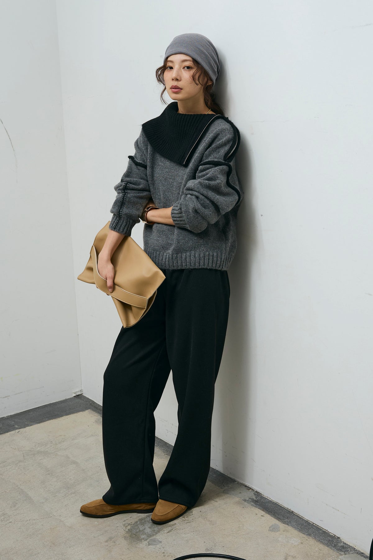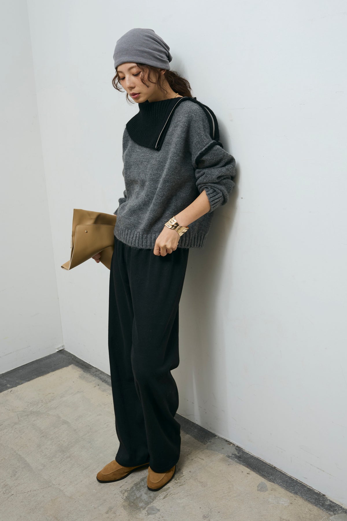 [予約/SET]ハイネックジップデザインニットトップス+ダンボールニットパンツ(2set)