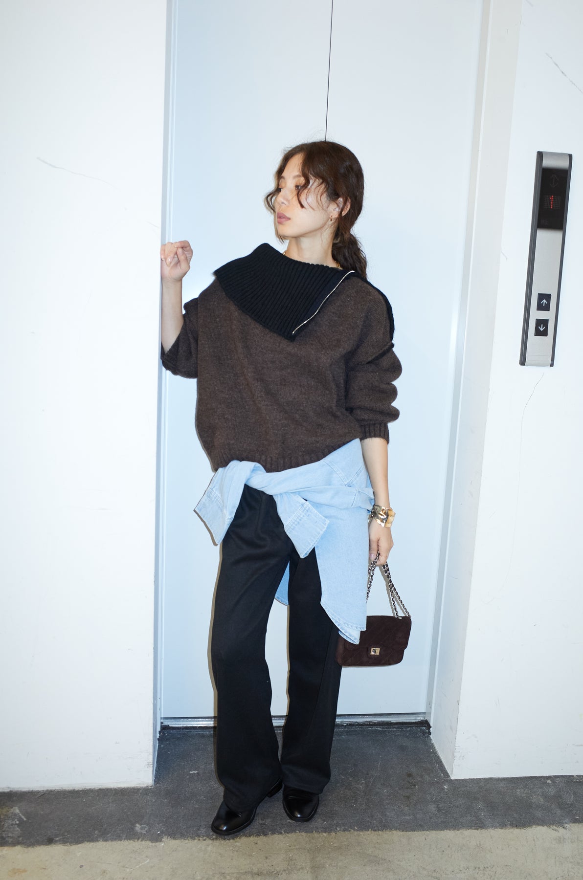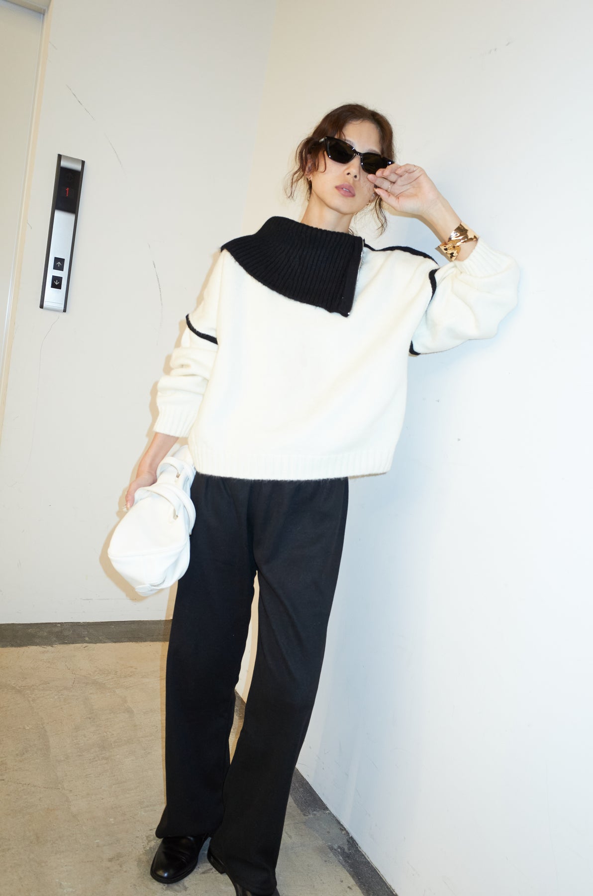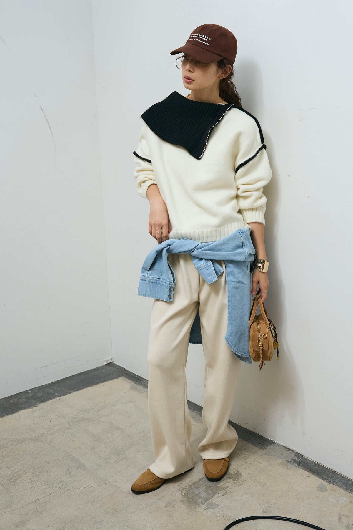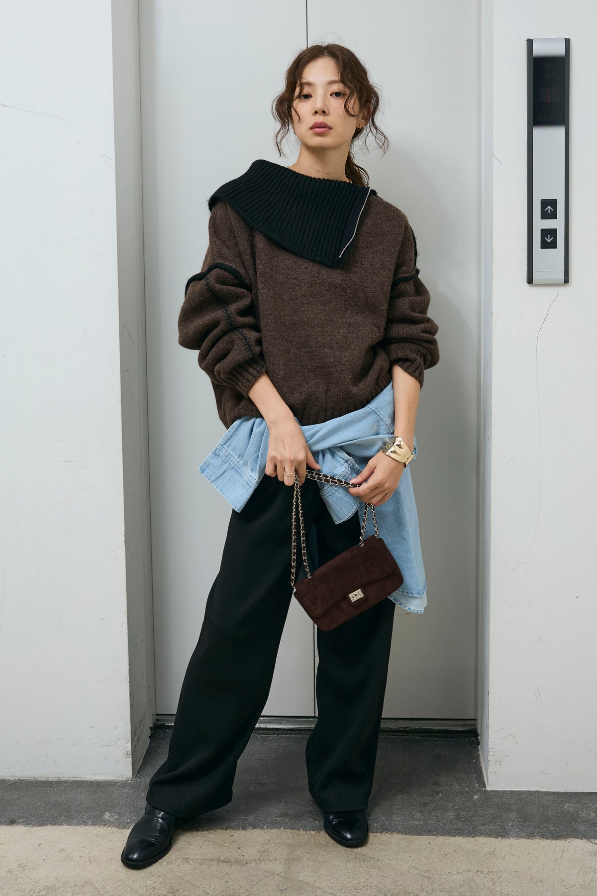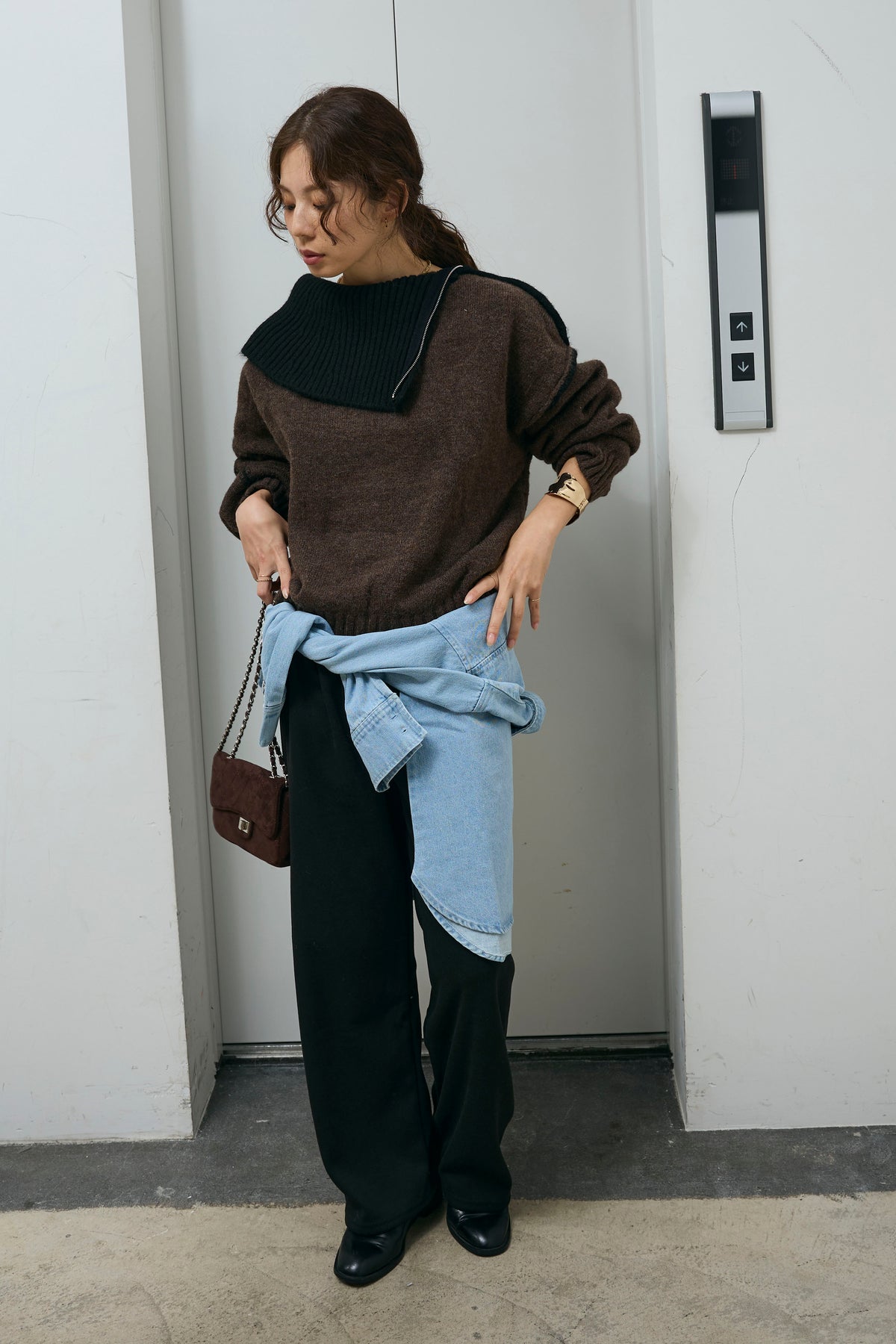 [予約/SET]ハイネックジップデザインニットトップス+ダンボールニットパンツ(2set)