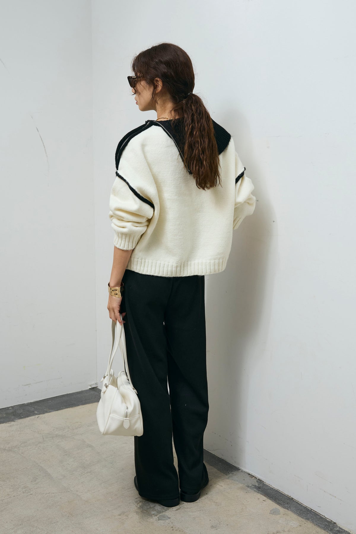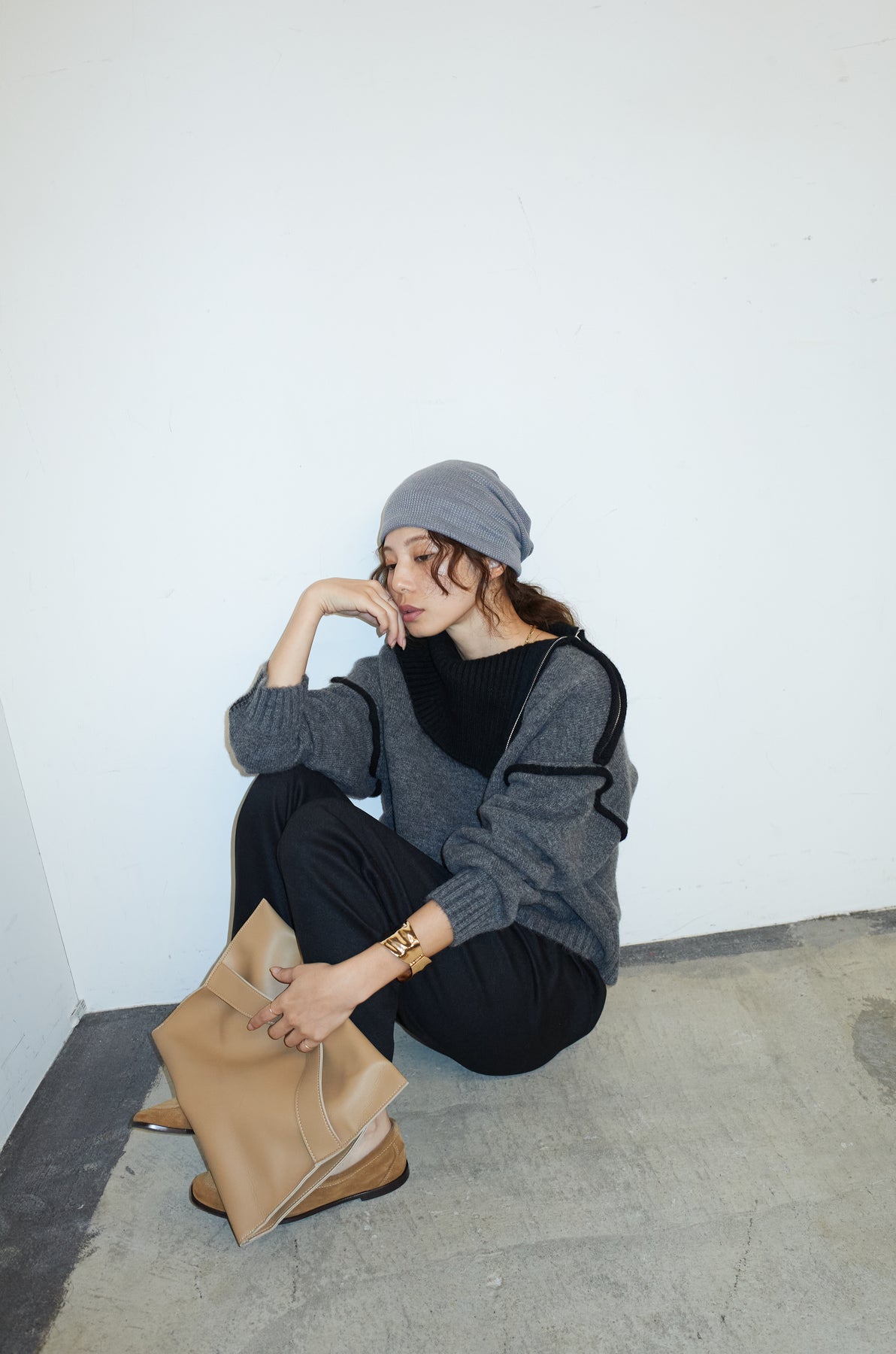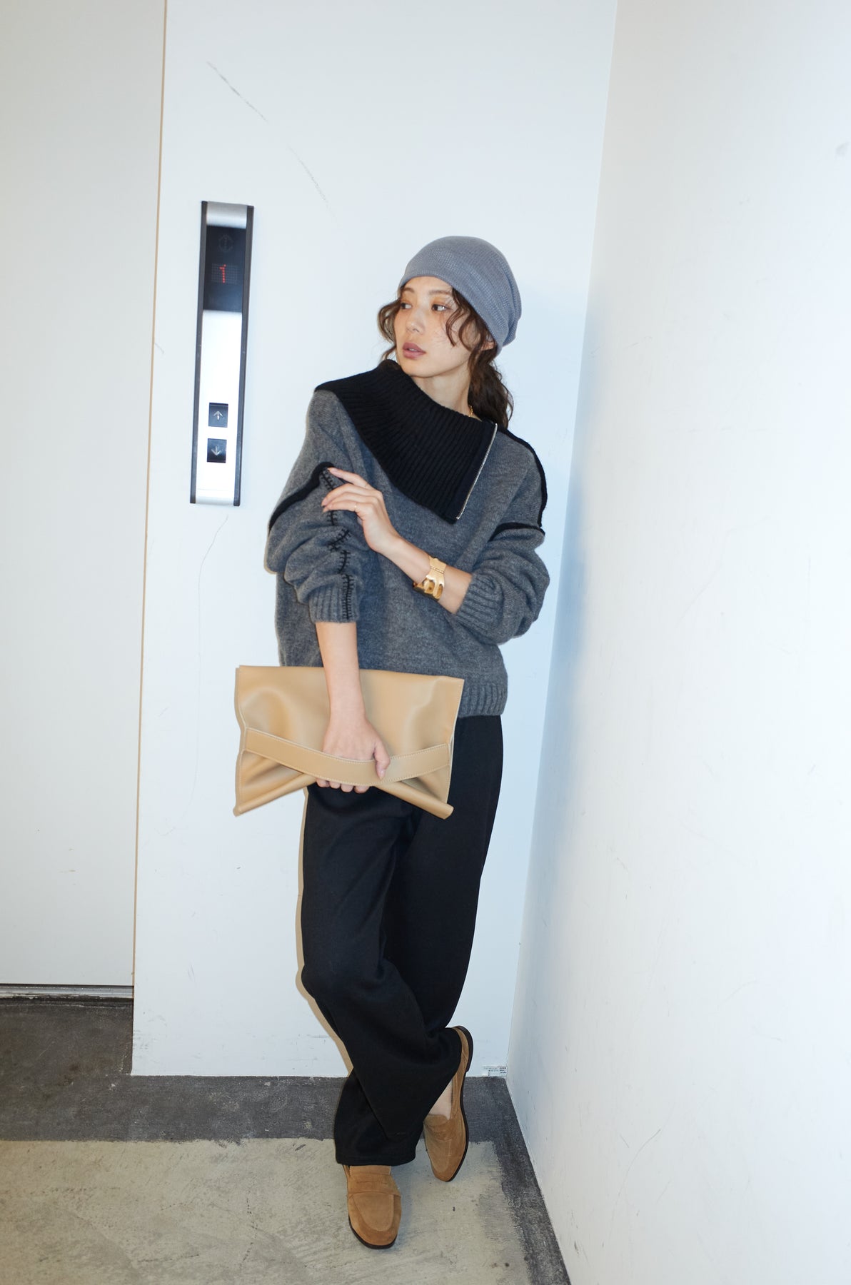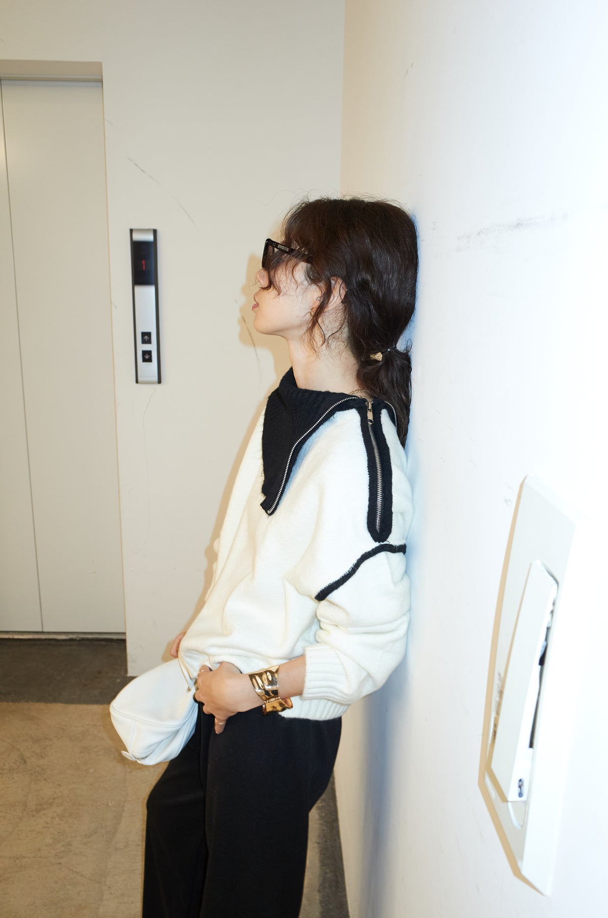 [予約/SET]ハイネックジップデザインニットトップス+ダンボールニットパンツ(2set)