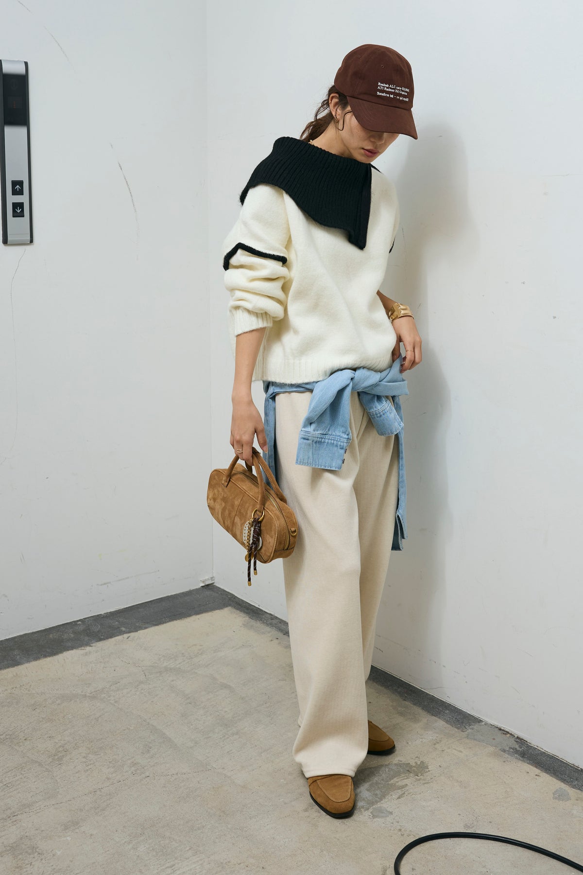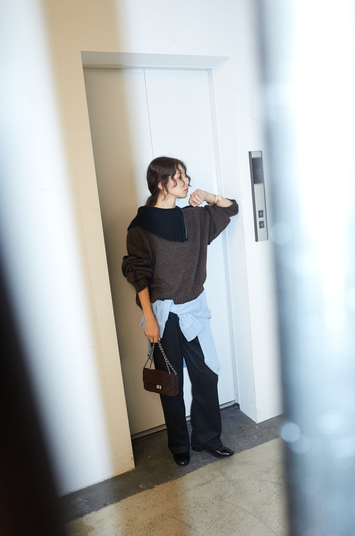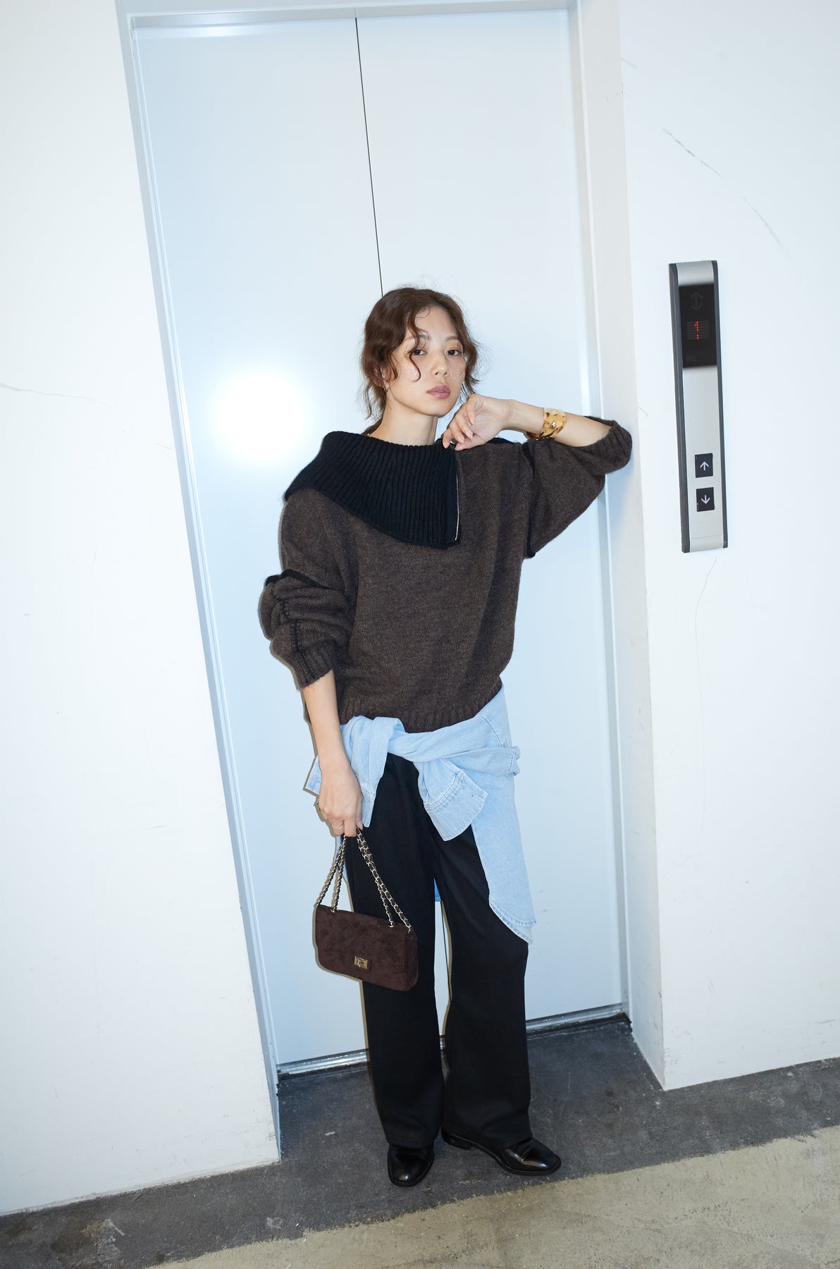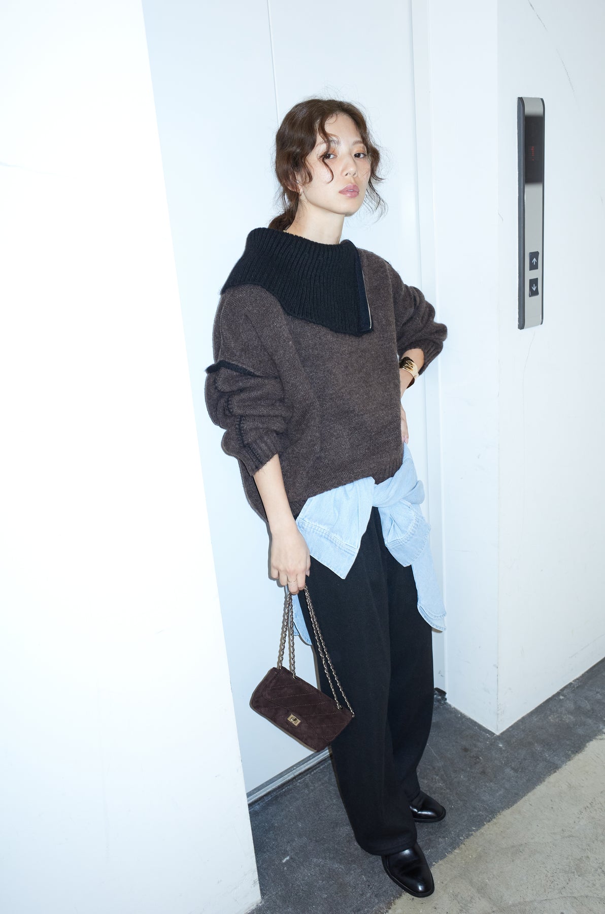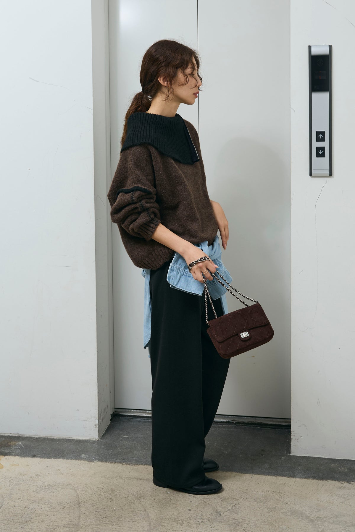 [予約/SET]ハイネックジップデザインニットトップス+ダンボールニットパンツ(2set)