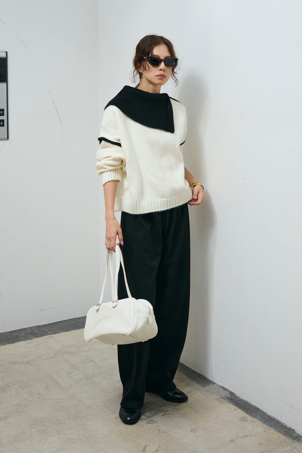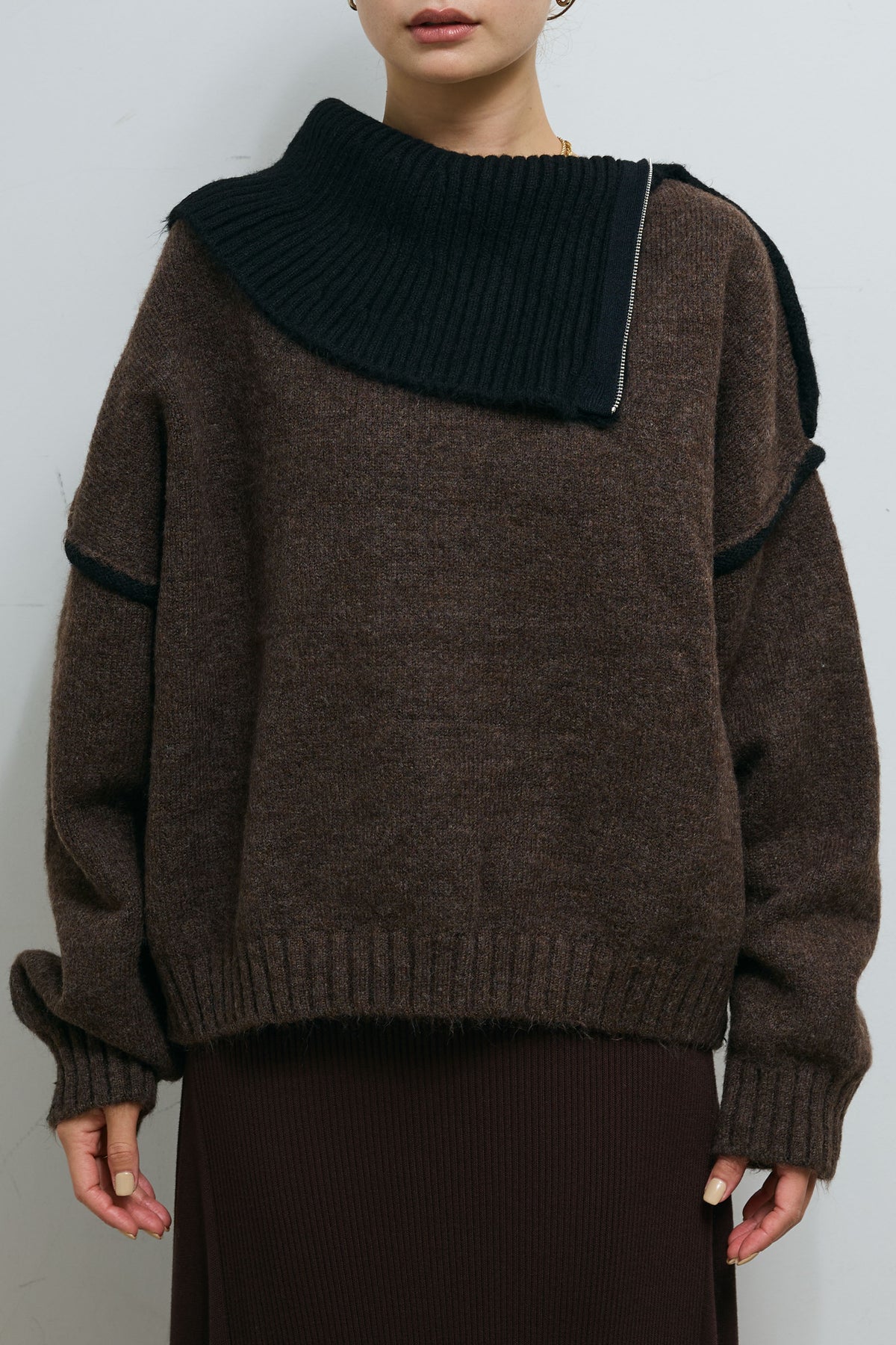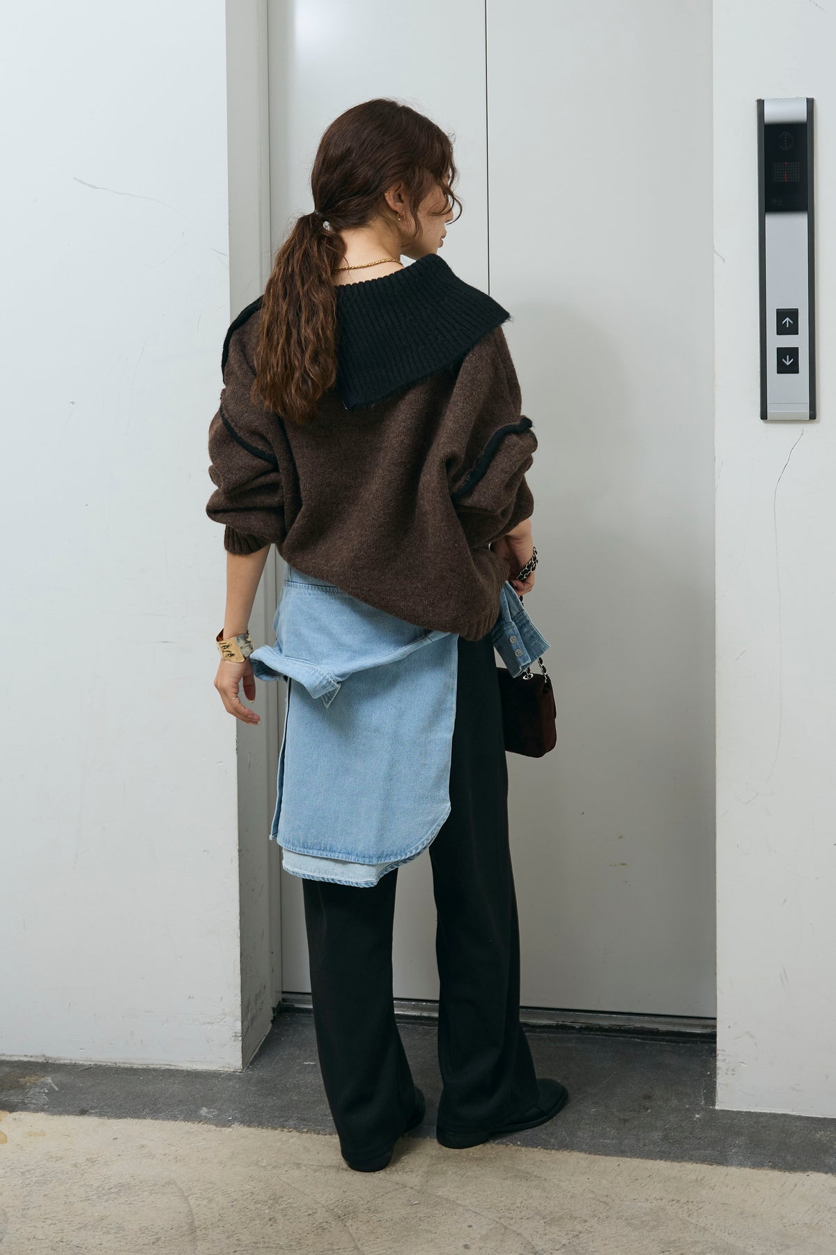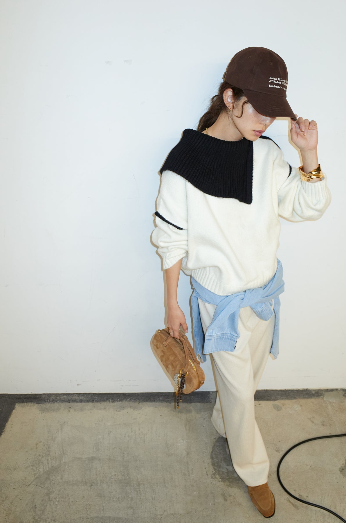 [予約/SET]ハイネックジップデザインニットトップス+ダンボールニットパンツ(2set)