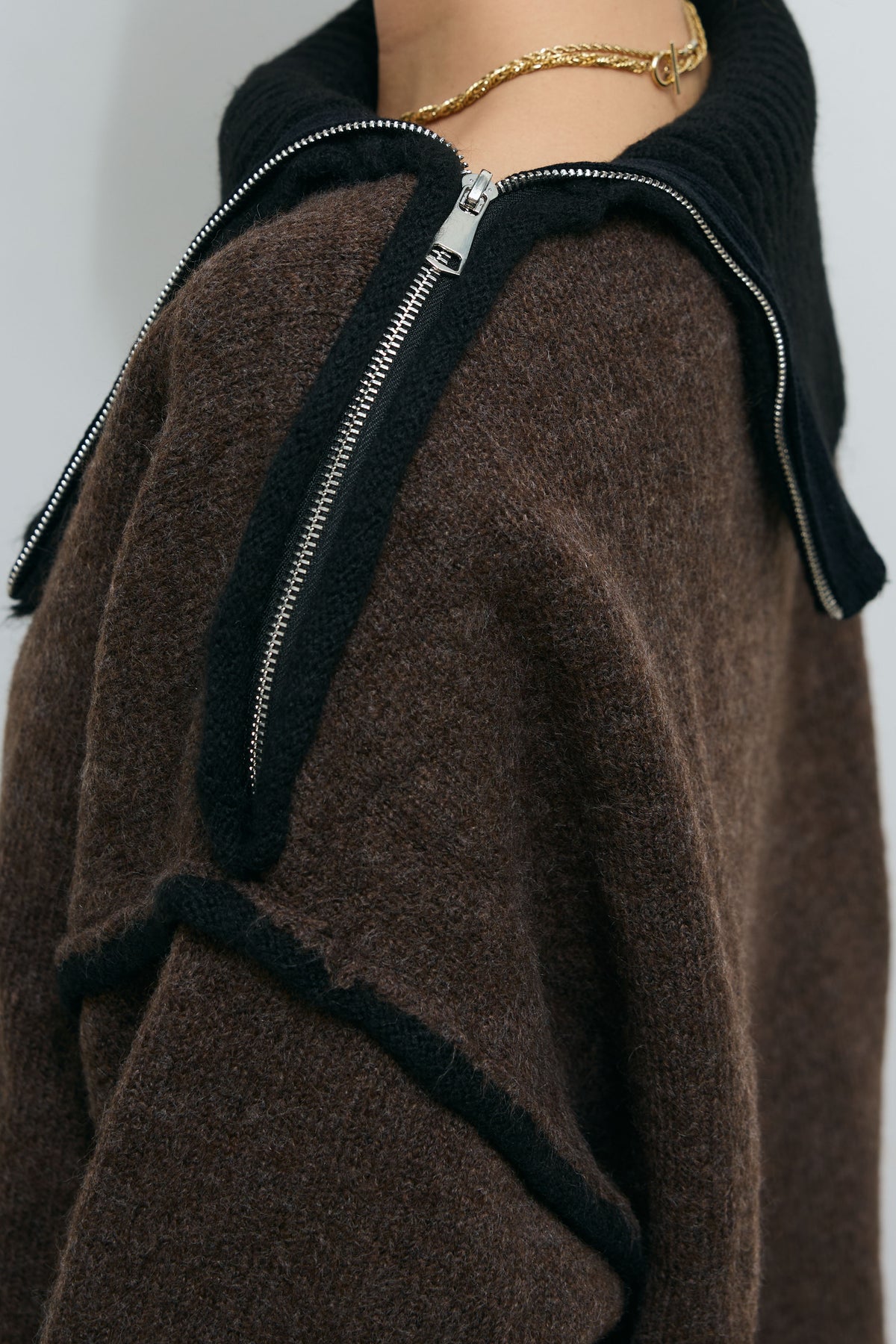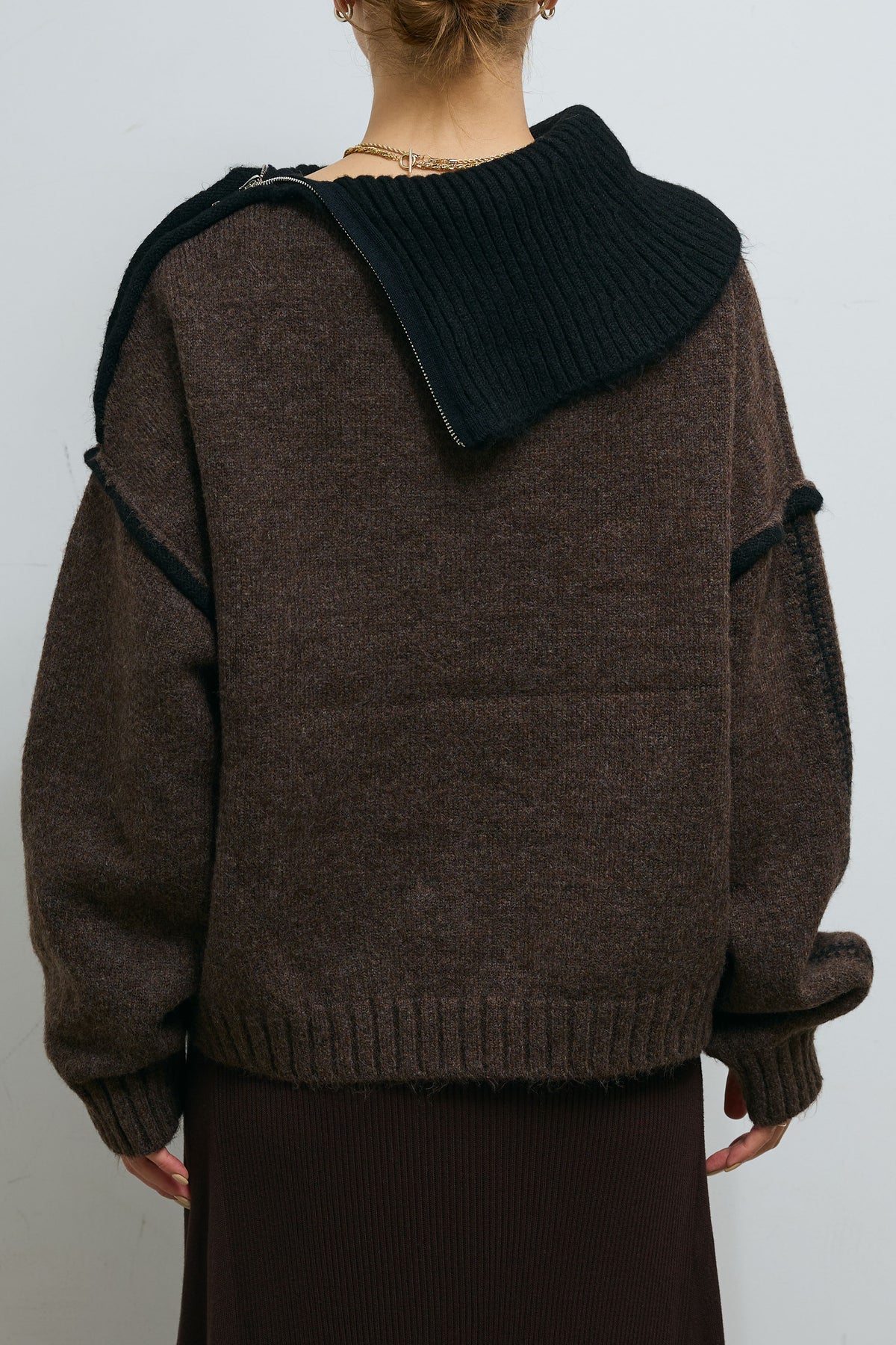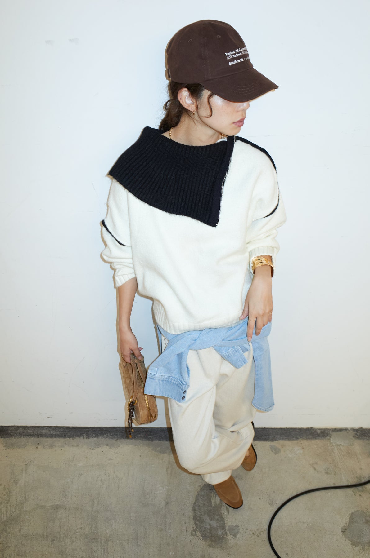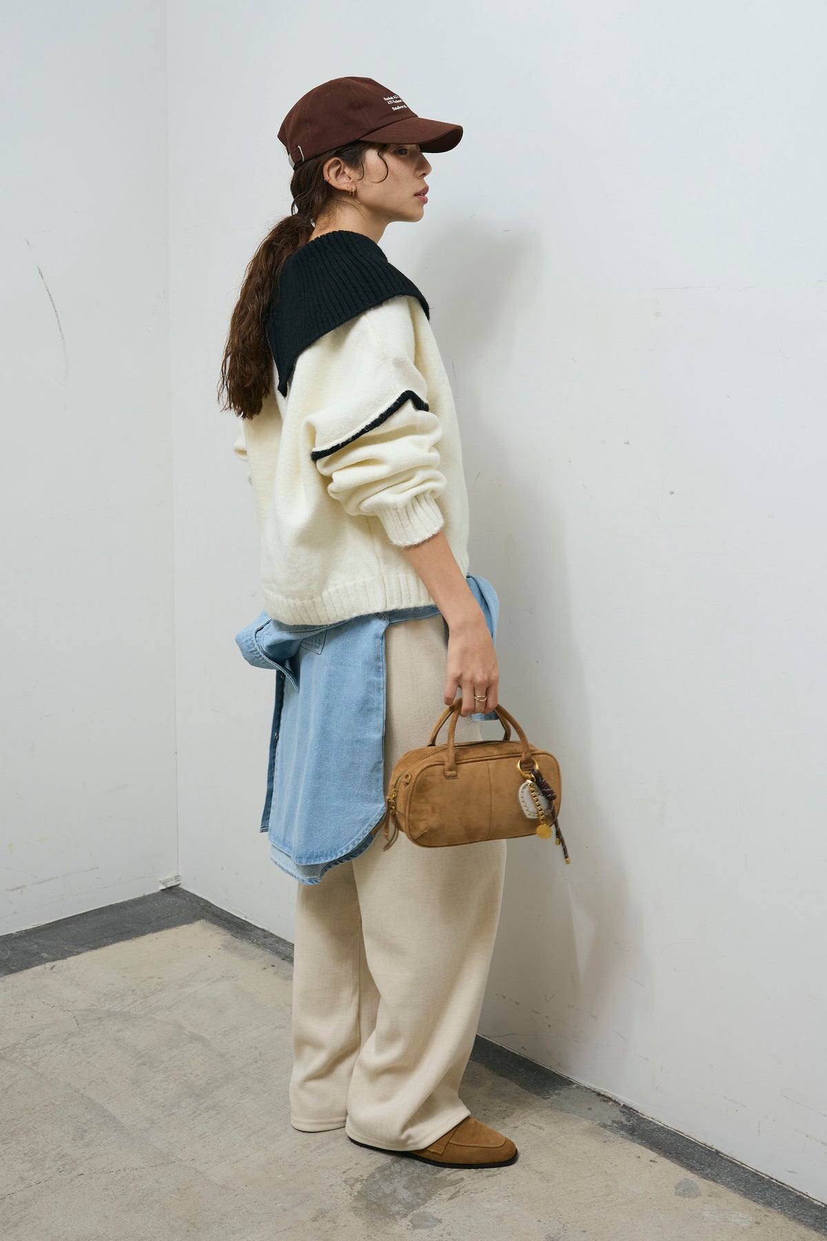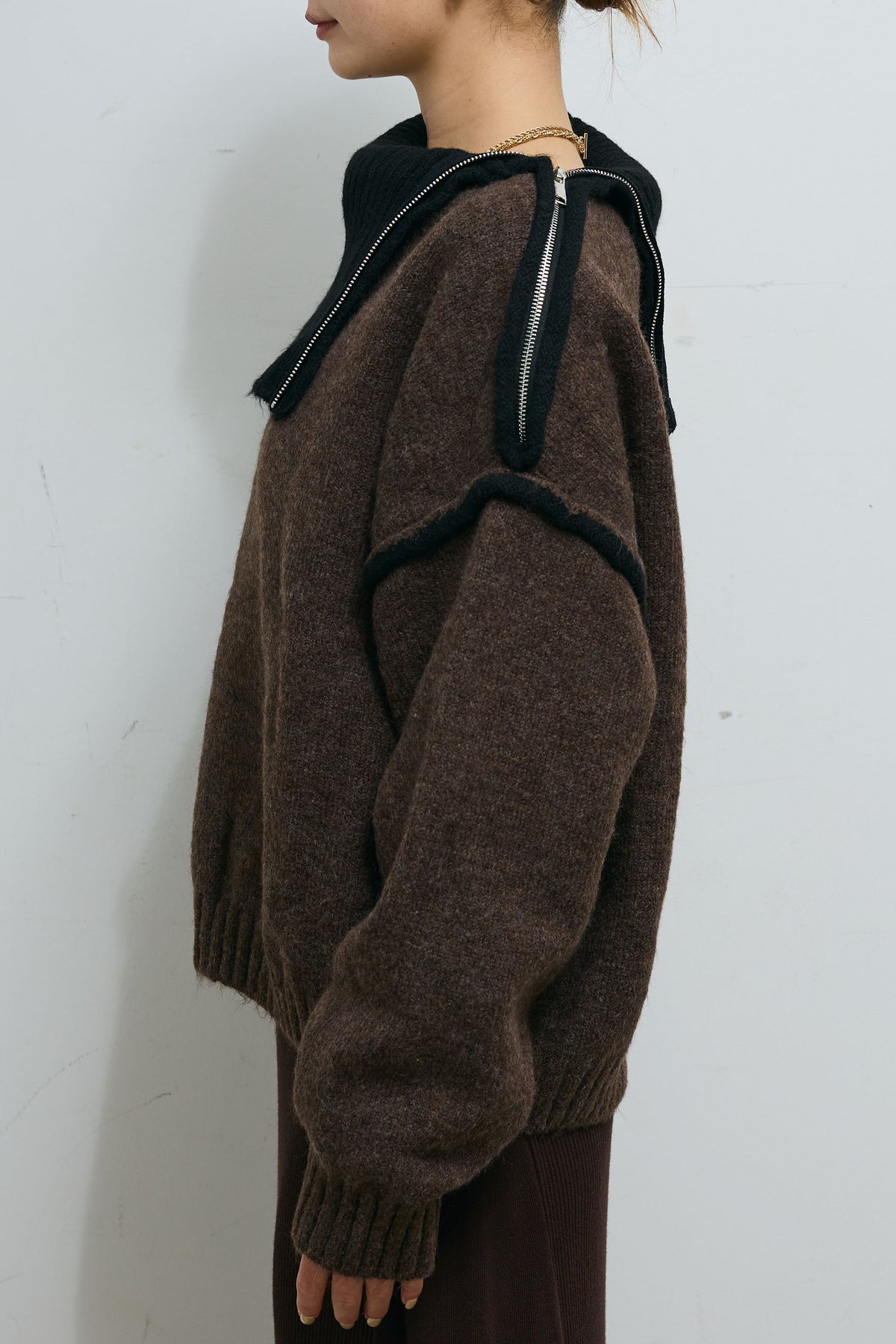[予約/SET]ハイネックジップデザインニットトップス+ダンボールニットパンツ(2set)