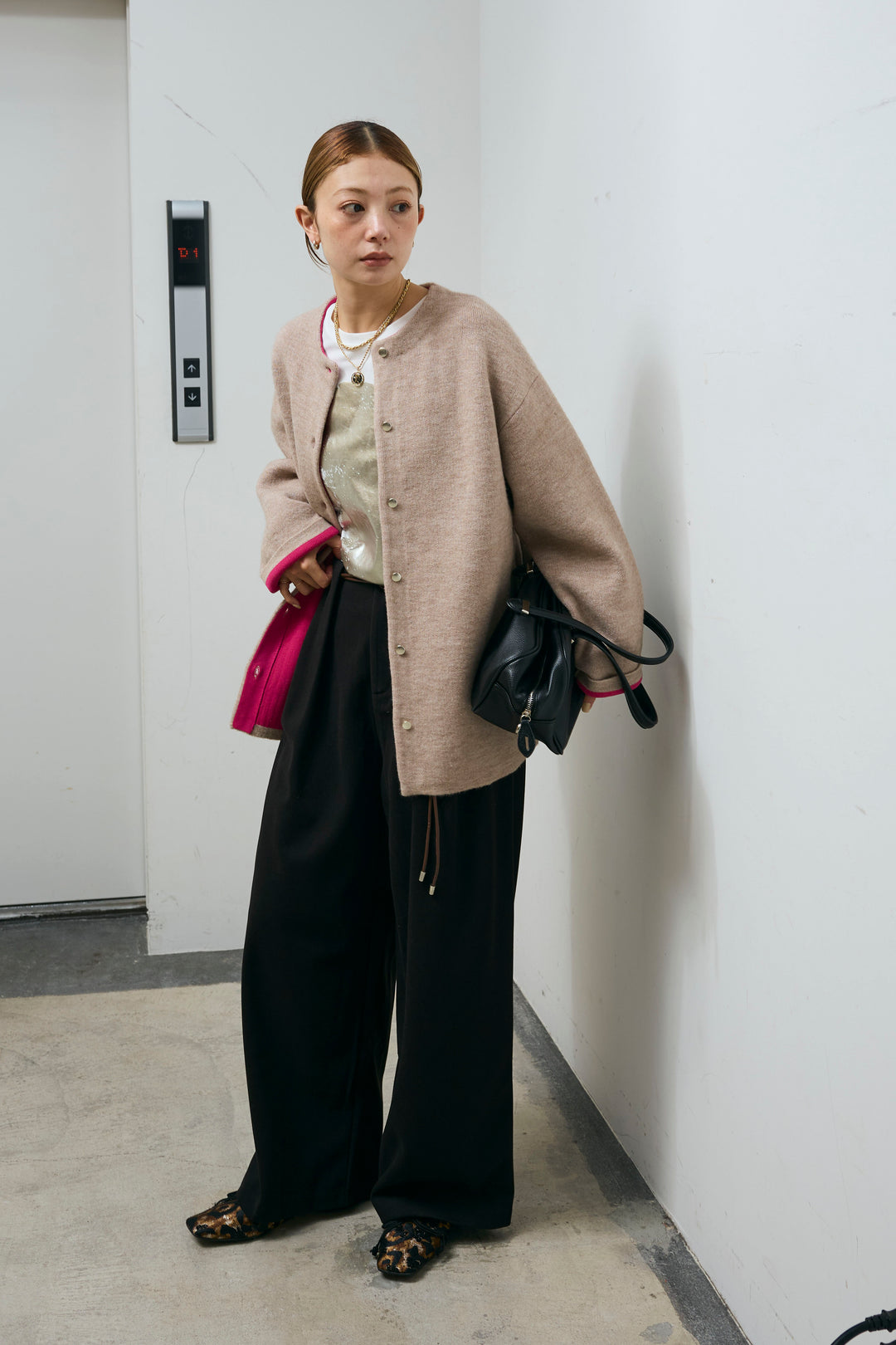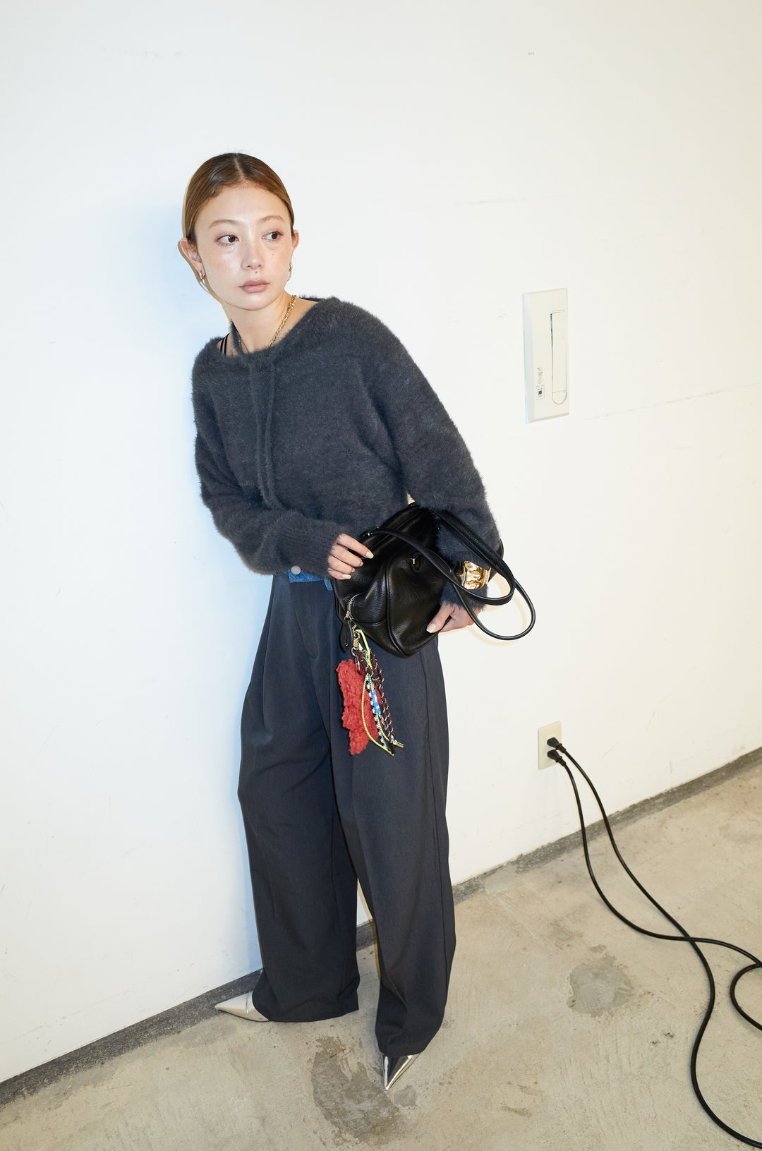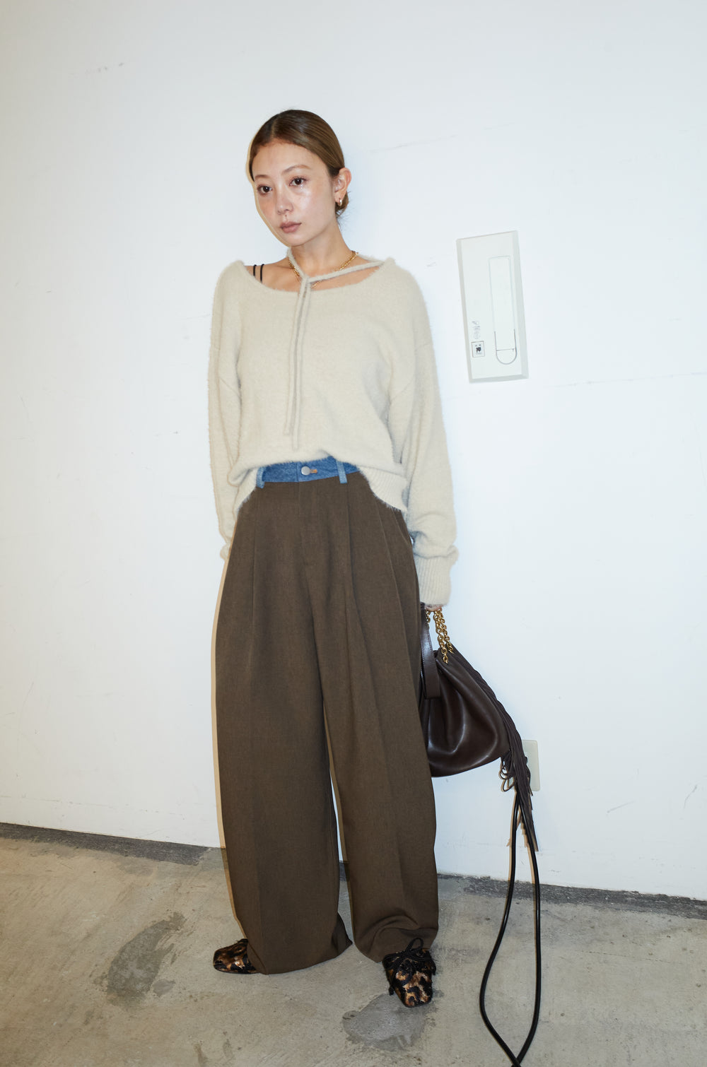 [予約/SET]ループ付きミニフェザーニット+ウエスト配色タックワイドパンツ(2set)