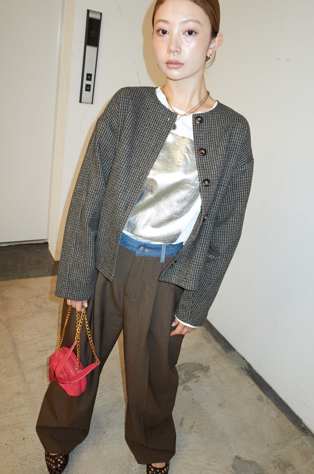 [予約/SET]ガンクラブチェックノーカラーJK+ウエスト配色タックワイドパンツ(2set)
