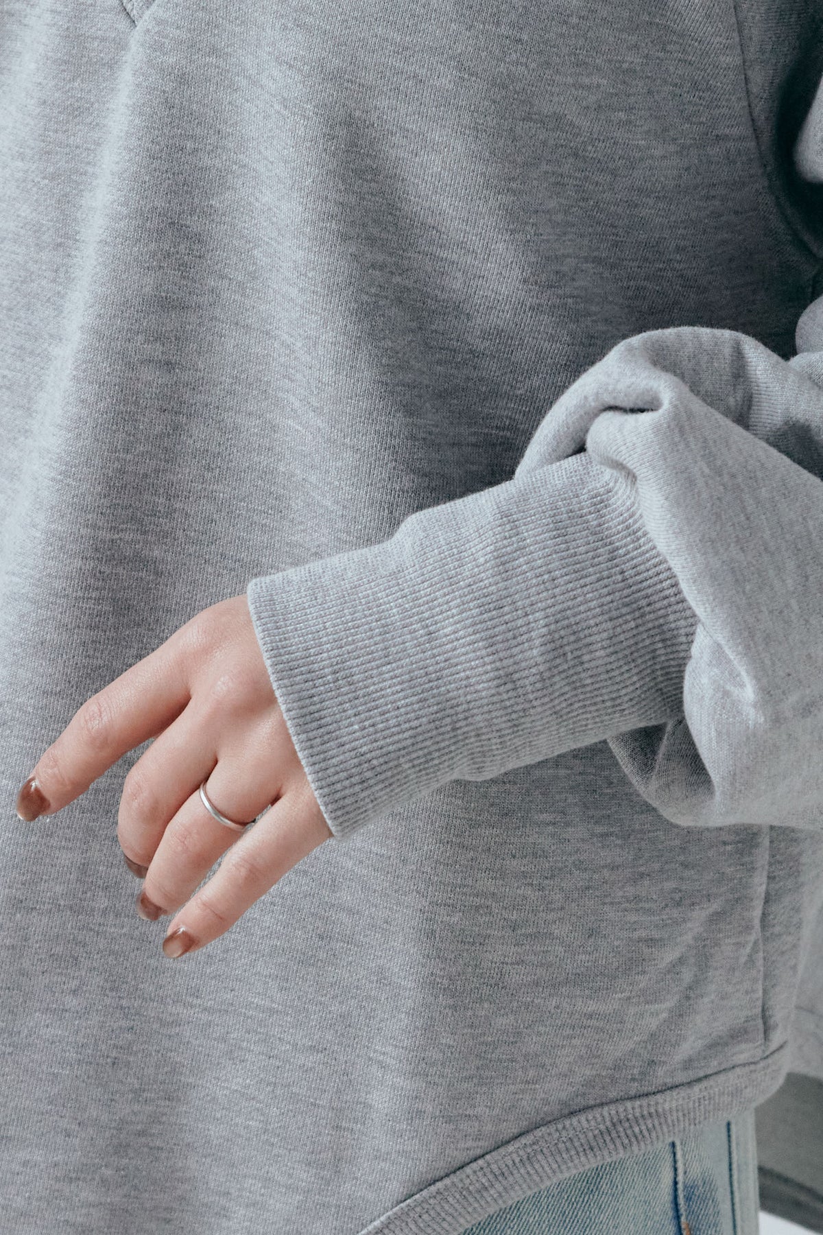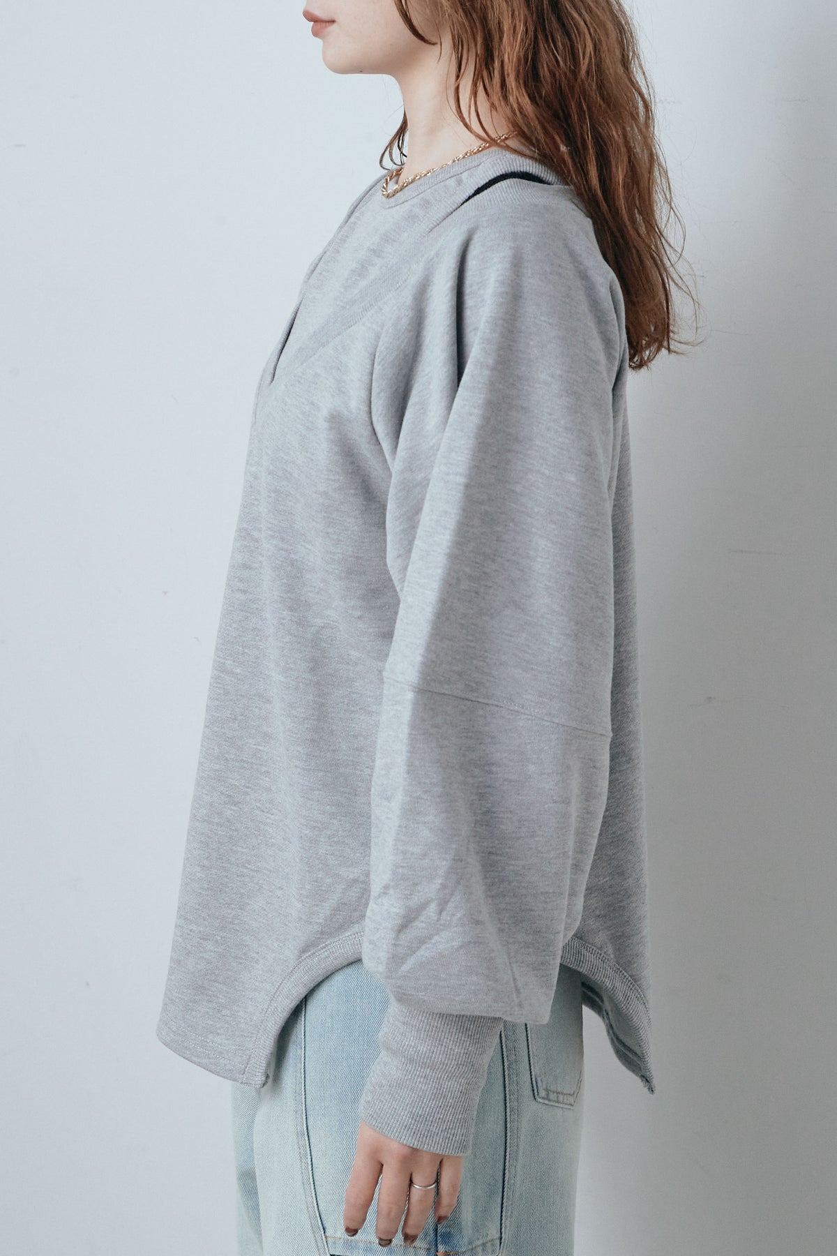 立体感のあるランタンスリーブとカットアウトデザインが目を引くスウェットトップス。程よく肌が覗くディテールが、抜け感のある印象をプラスします。柔らかなスウェット素材で着心地も良く、長時間の着用でもストレスを感じにくい仕上がり。ゆとりのあるシルエットながら、切り替えラインですっきり見えを叶えます。インナーとの重ね方次第で表情が変わり、スタイリングの幅が広がる一枚です。