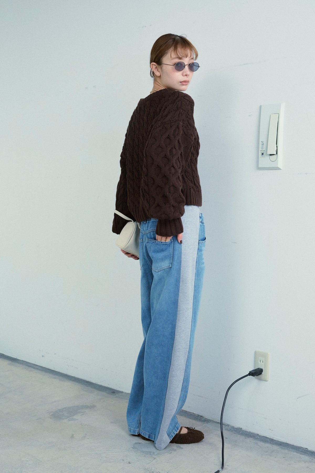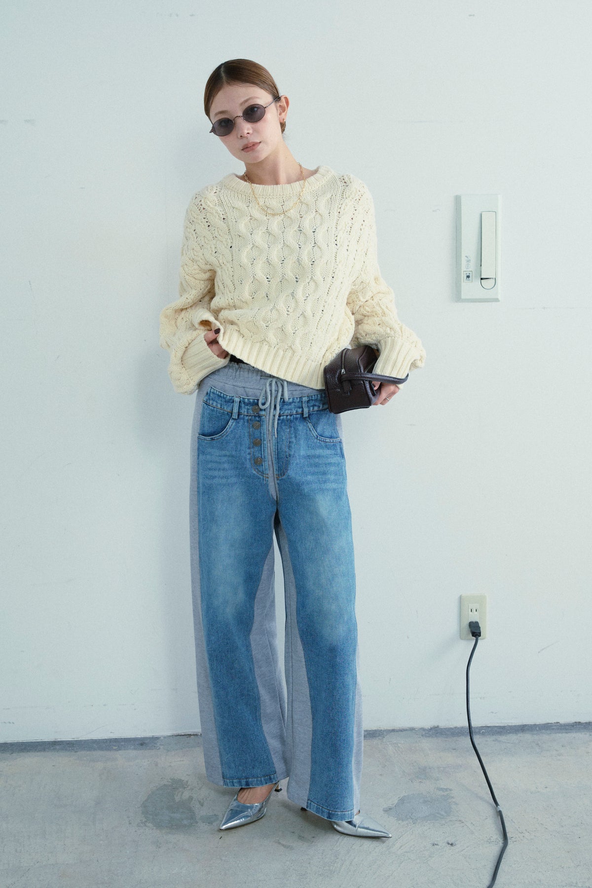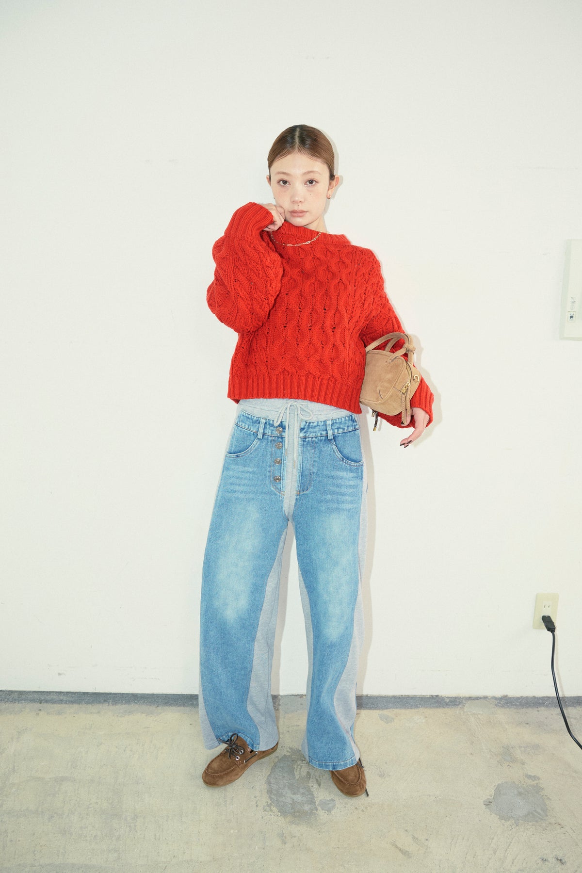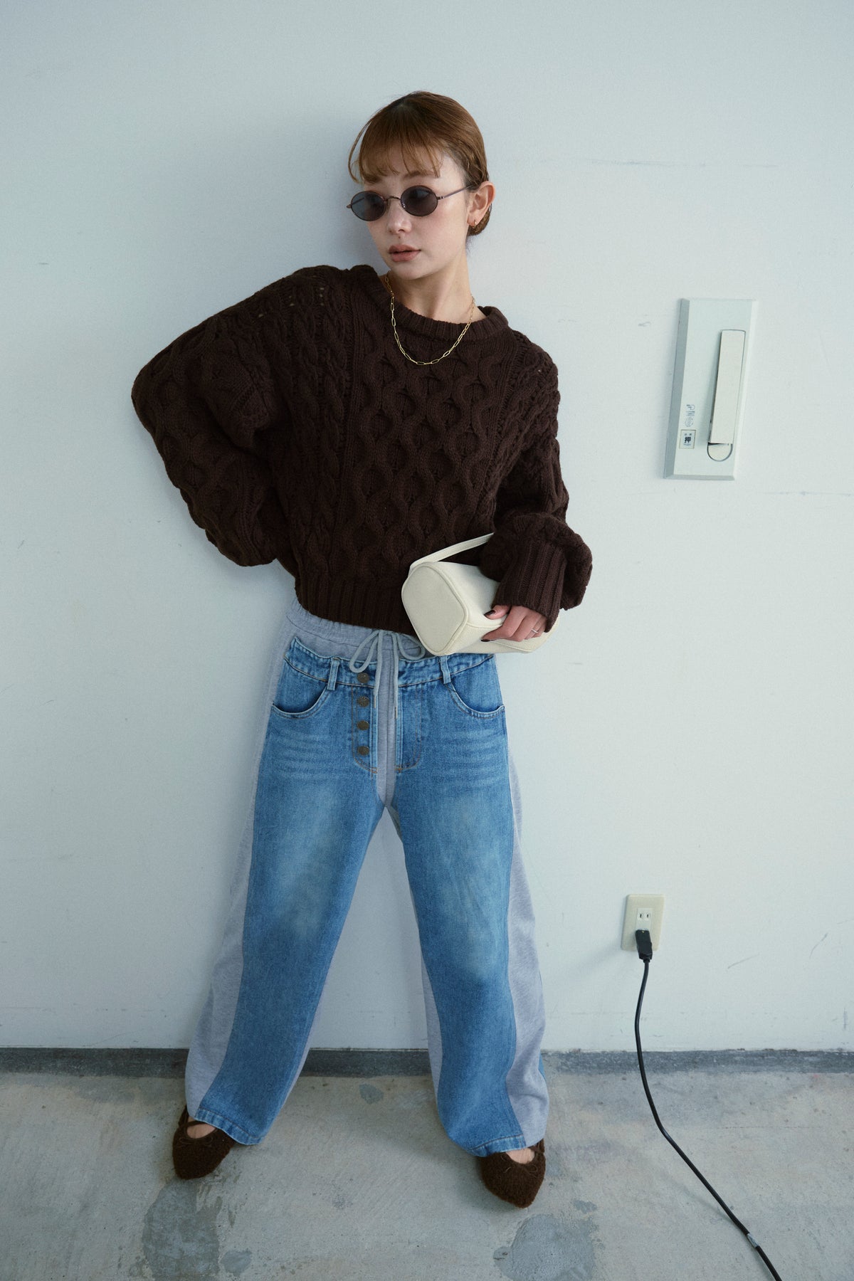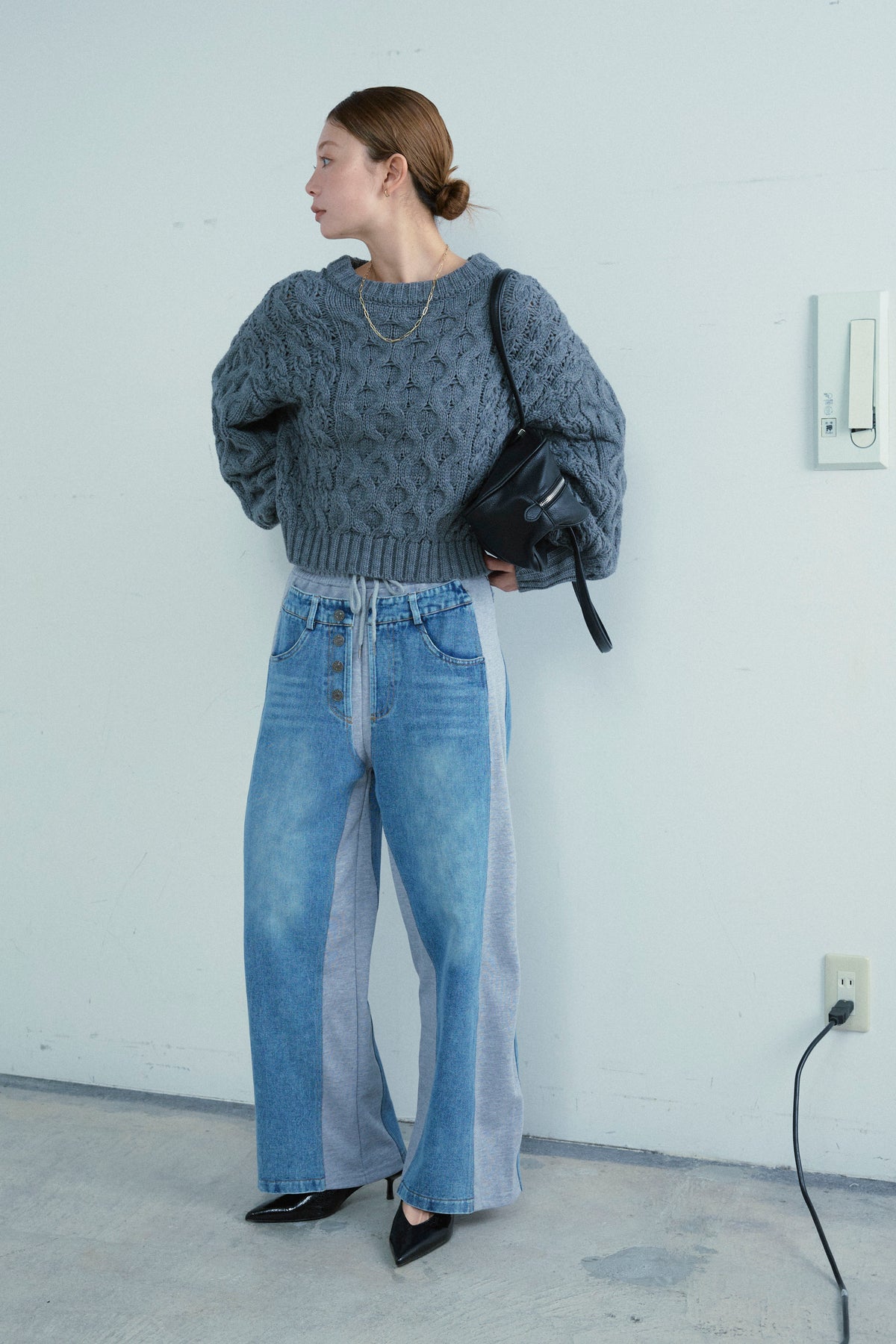 [予約/SET]バルキーケーブルPO+スウェット切り替えデニムパンツ(2set)