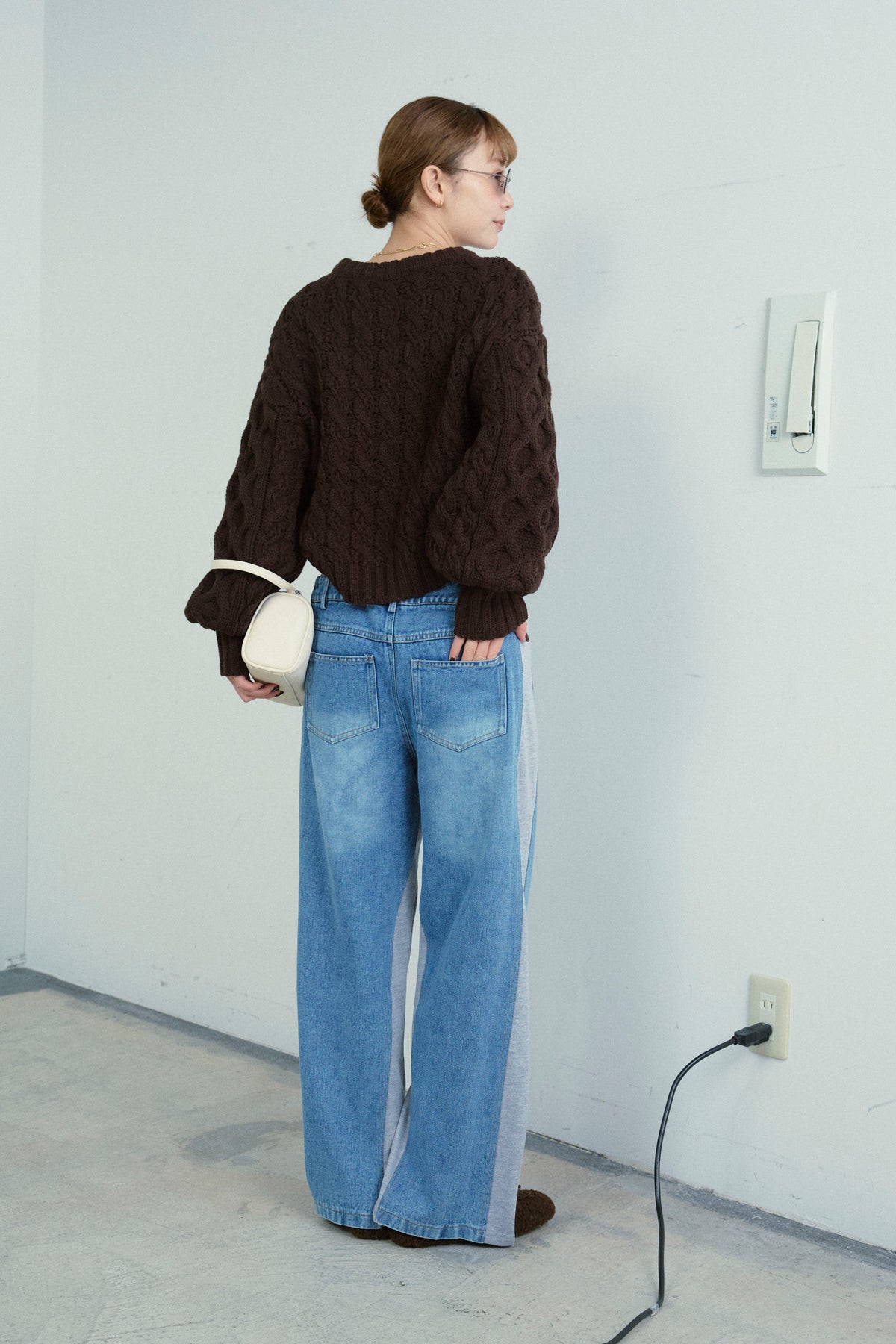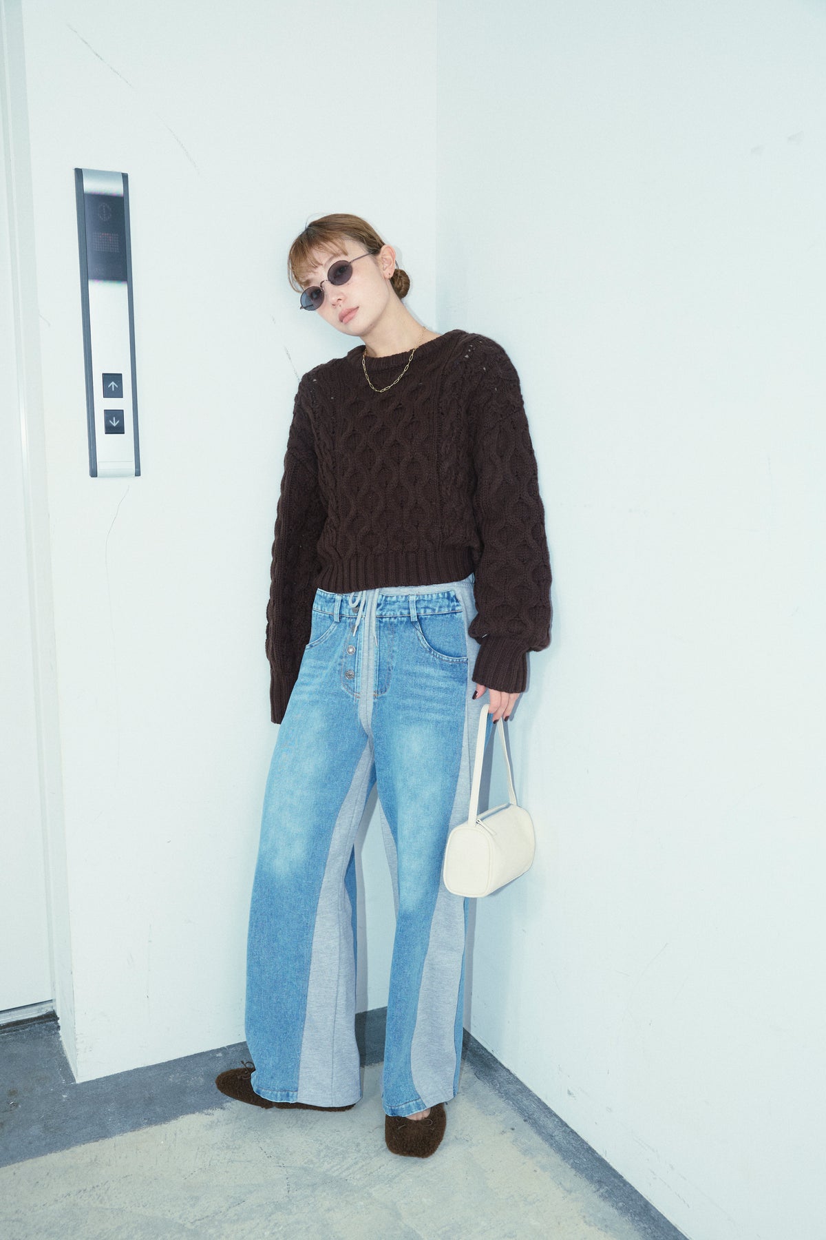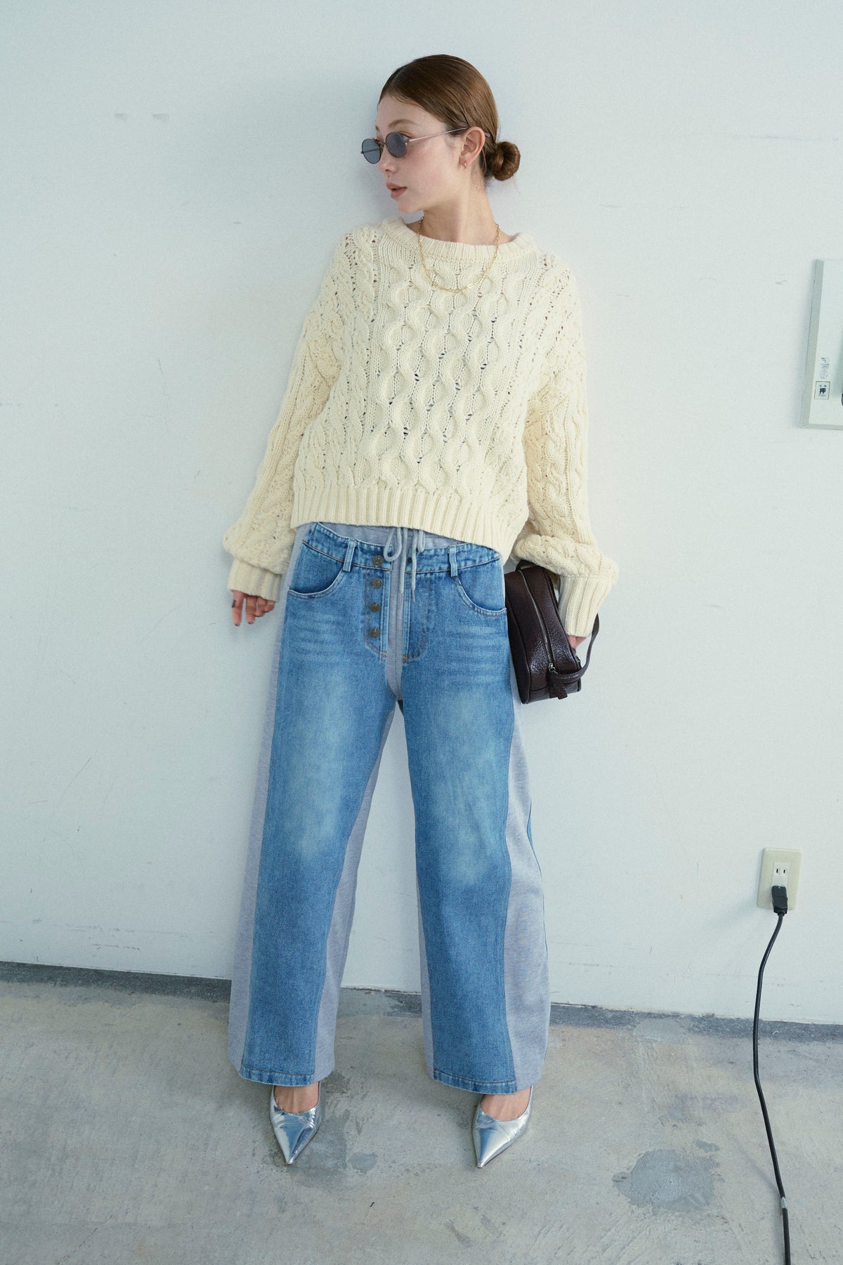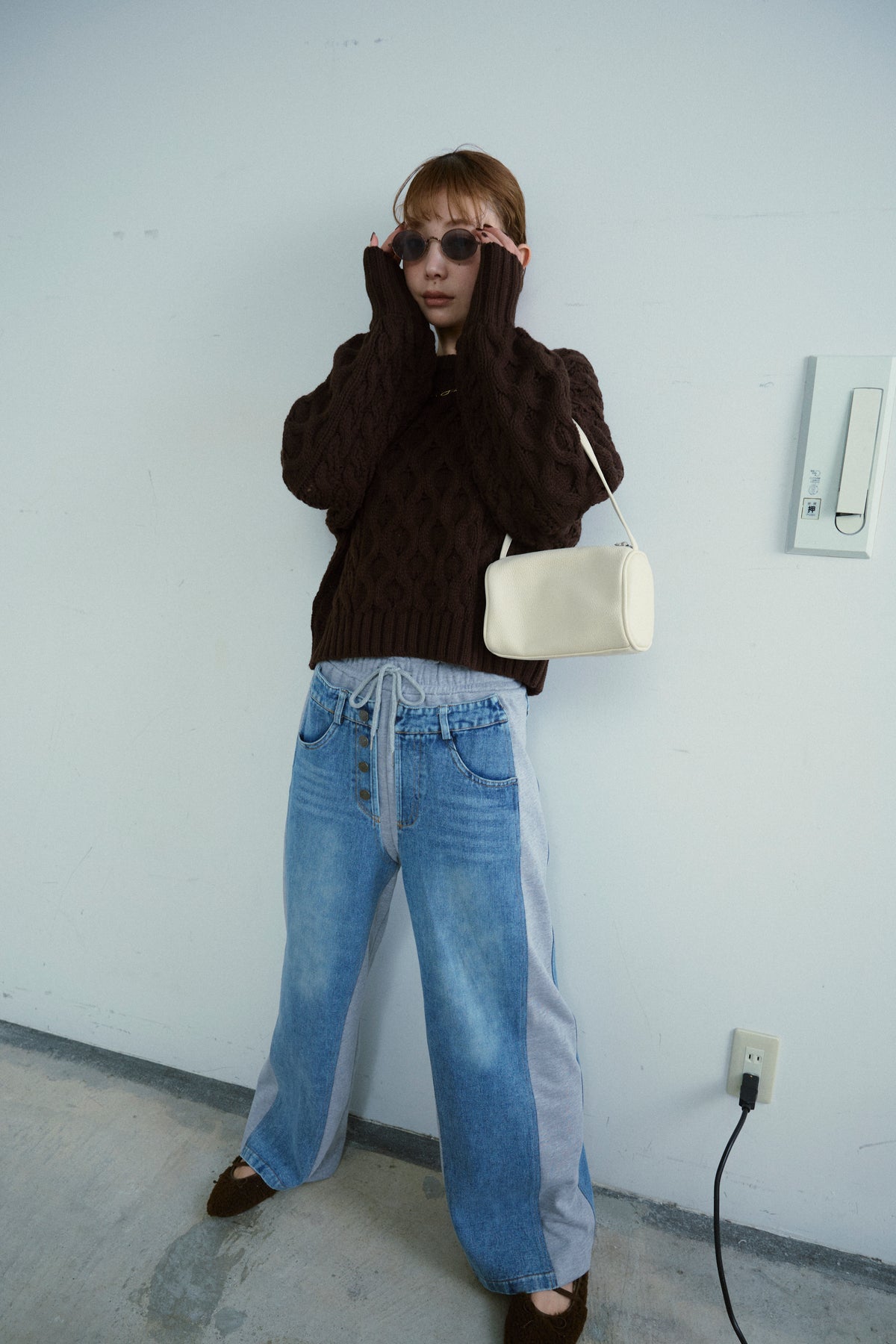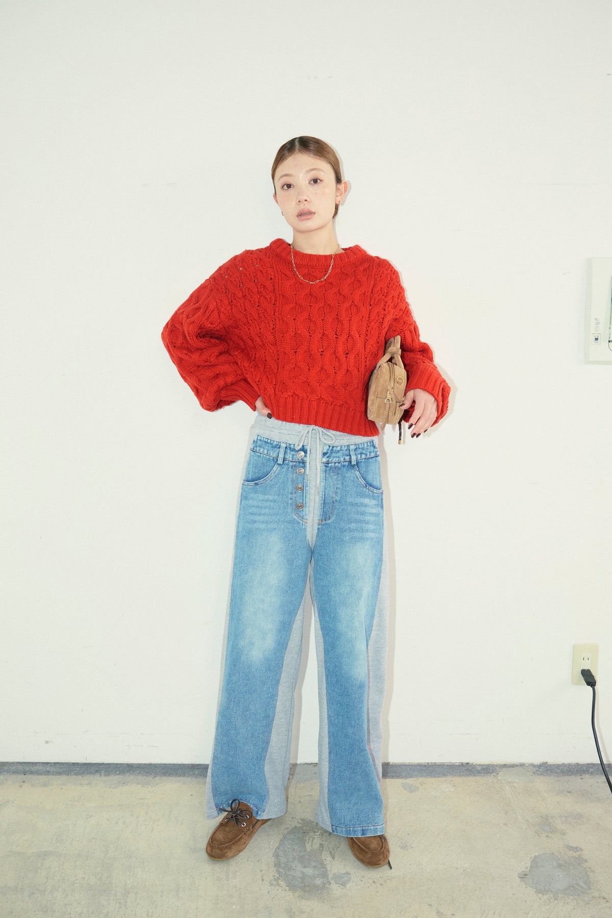 [予約/SET]バルキーケーブルPO+スウェット切り替えデニムパンツ(2set)
