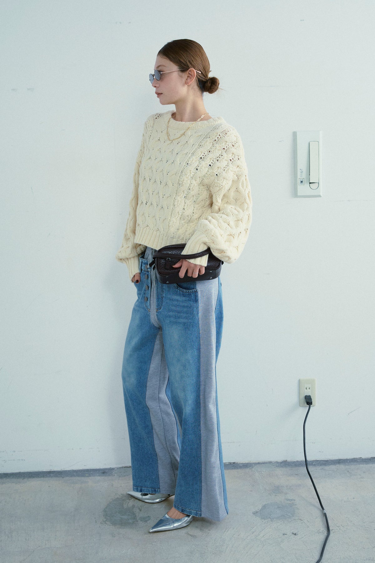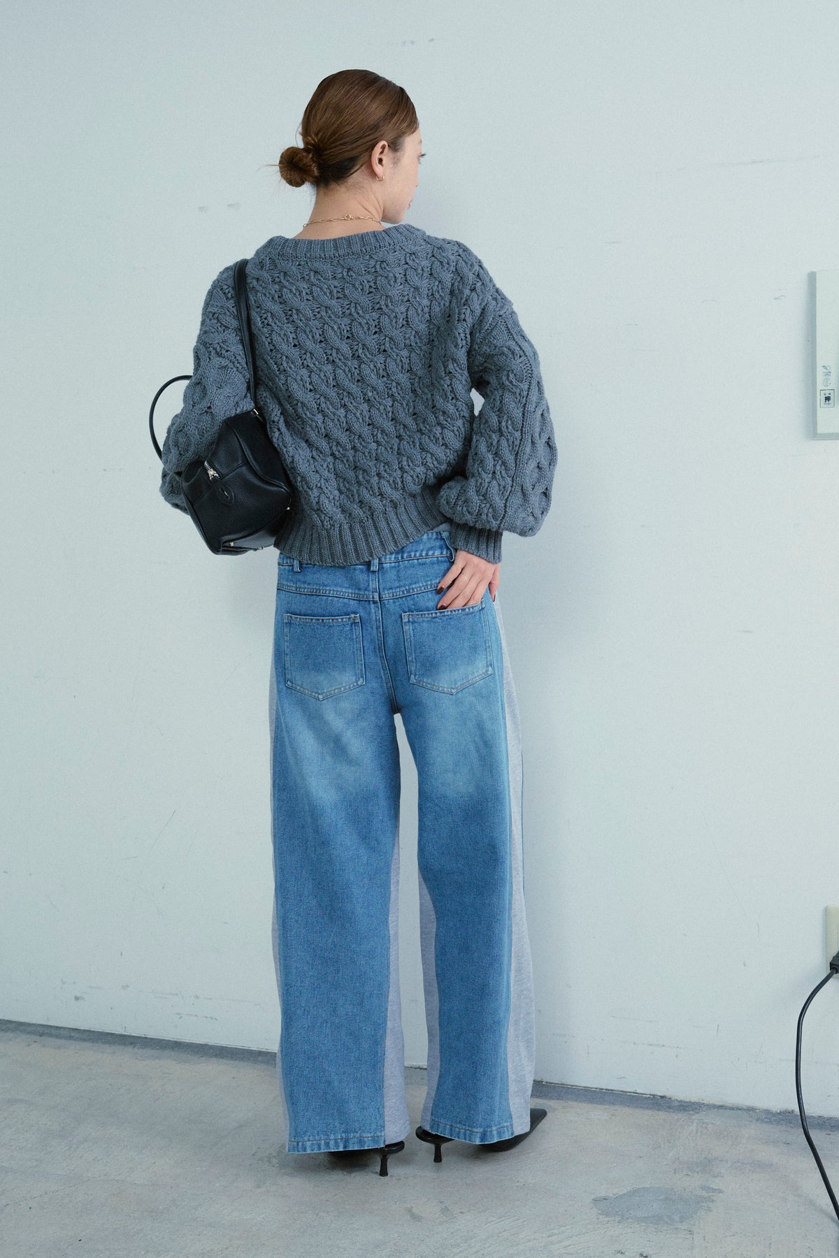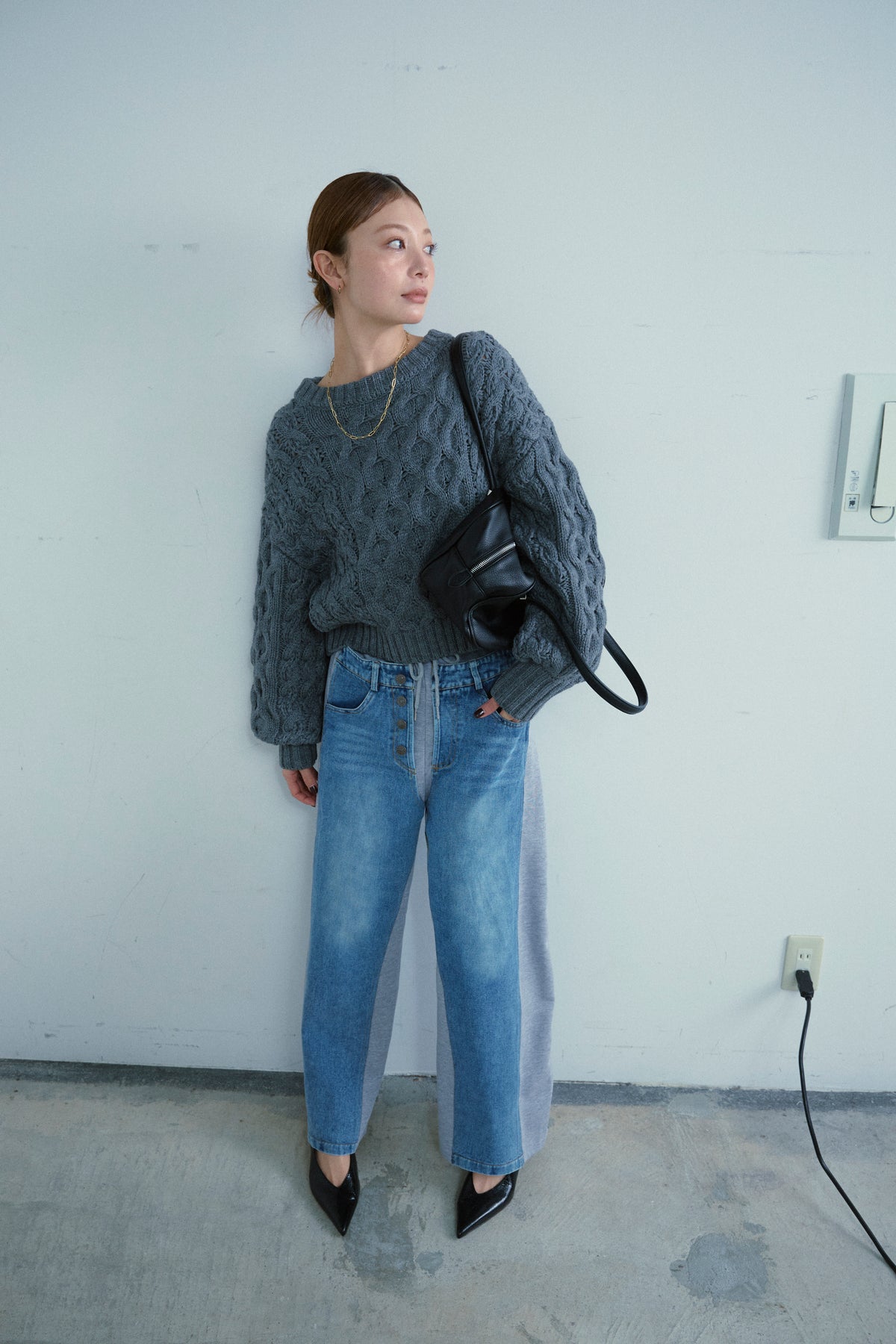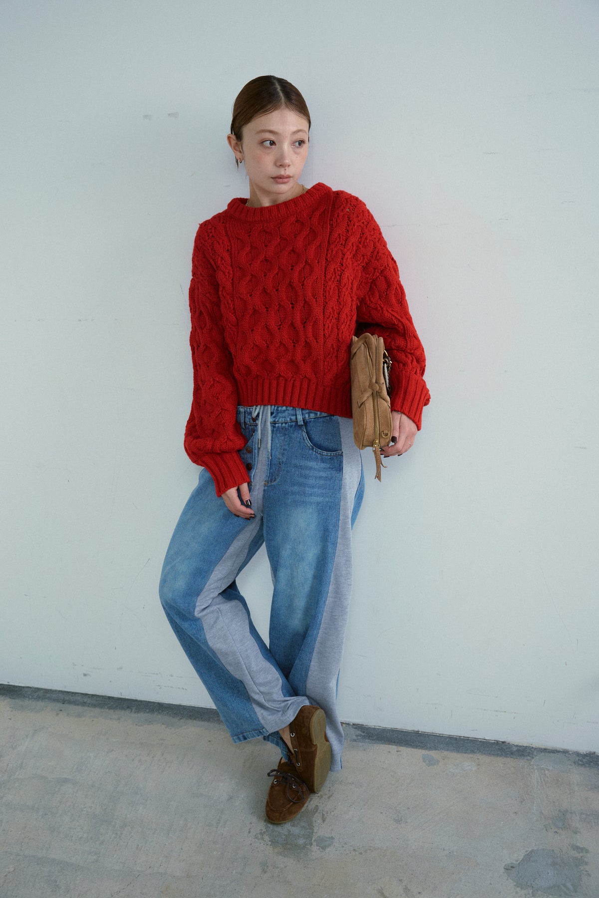 [予約/SET]バルキーケーブルPO+スウェット切り替えデニムパンツ(2set)