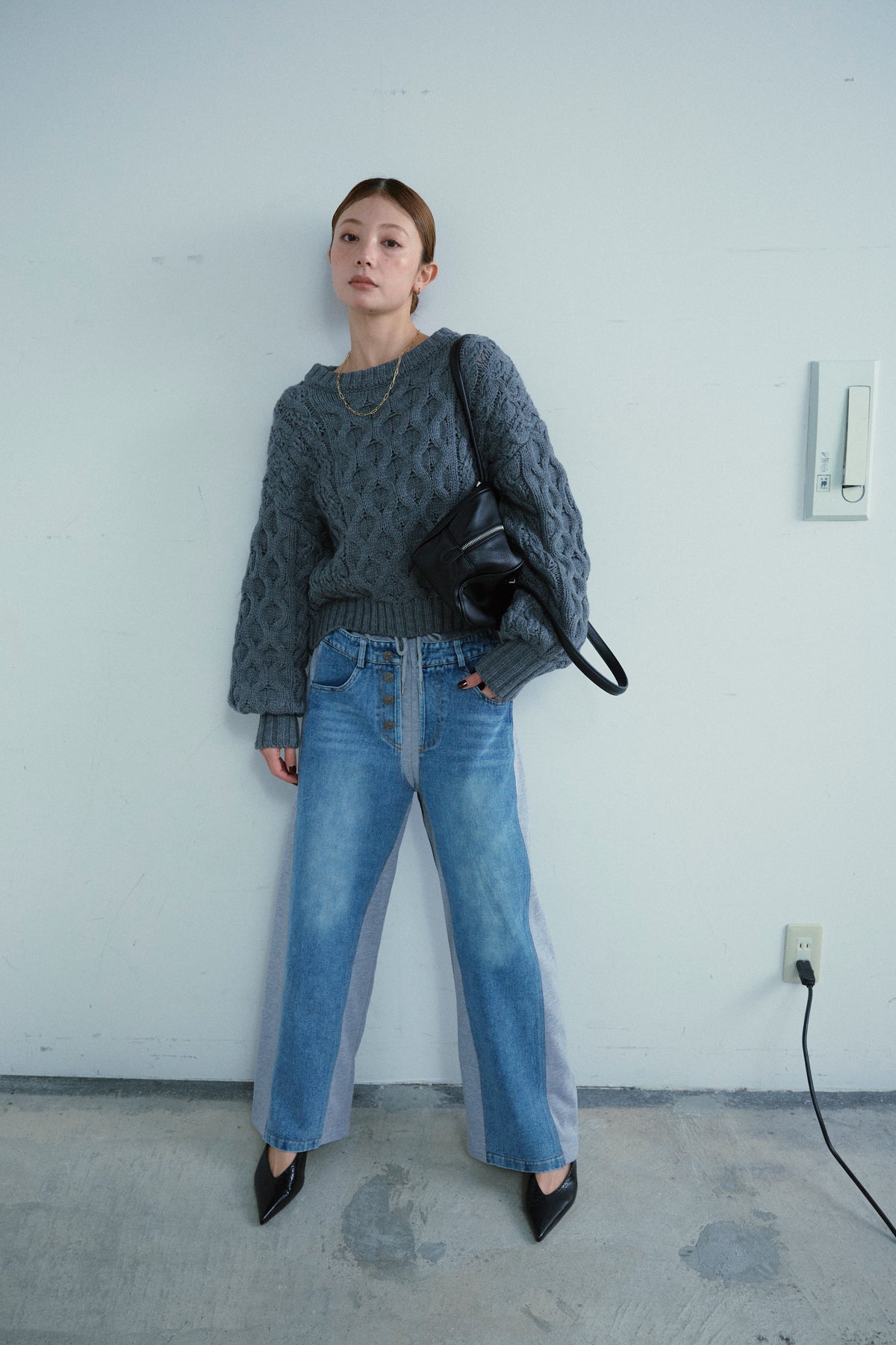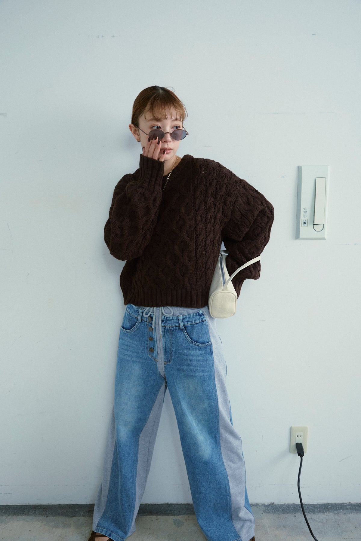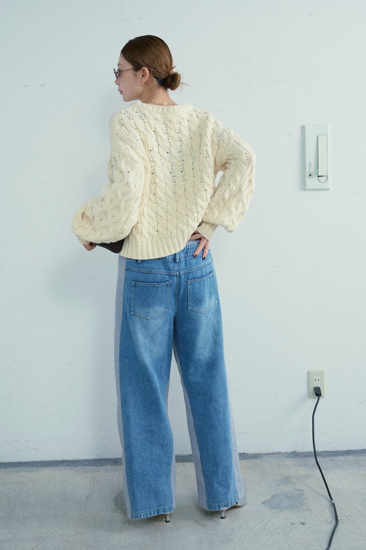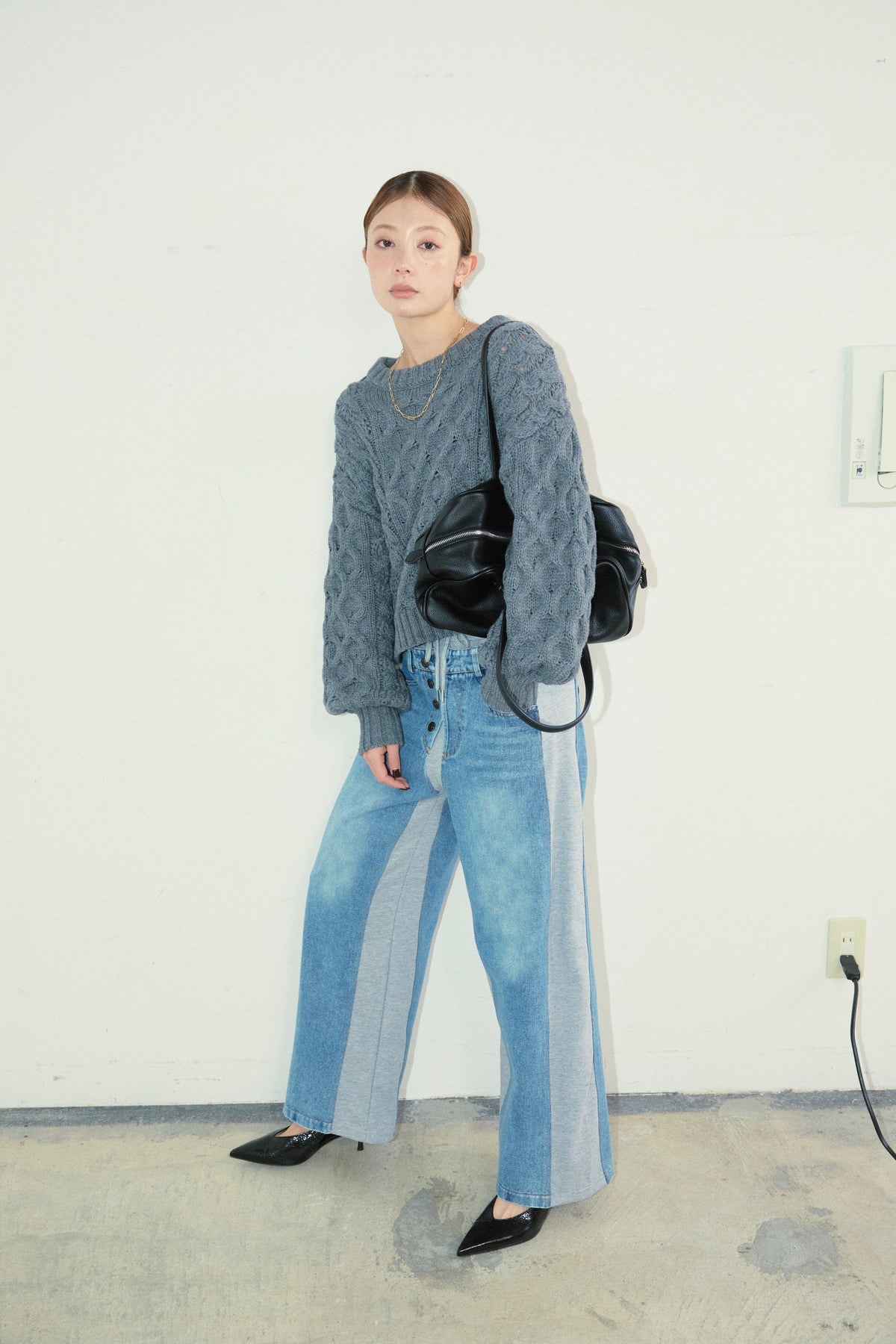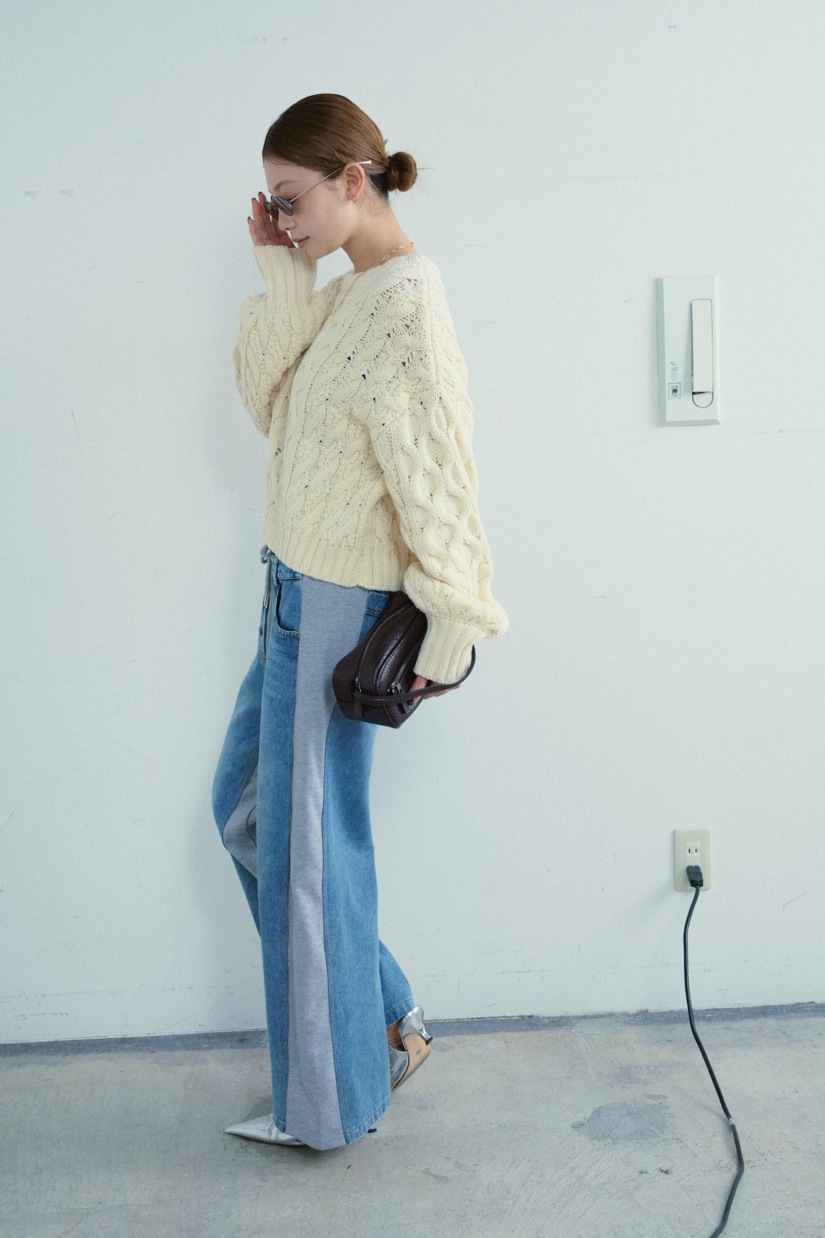 [予約/SET]バルキーケーブルPO+スウェット切り替えデニムパンツ(2set)