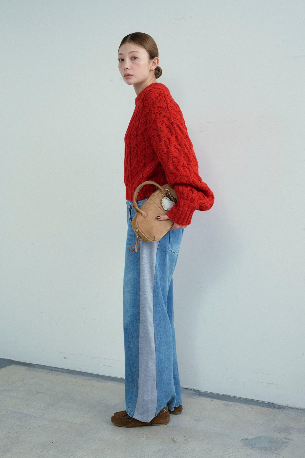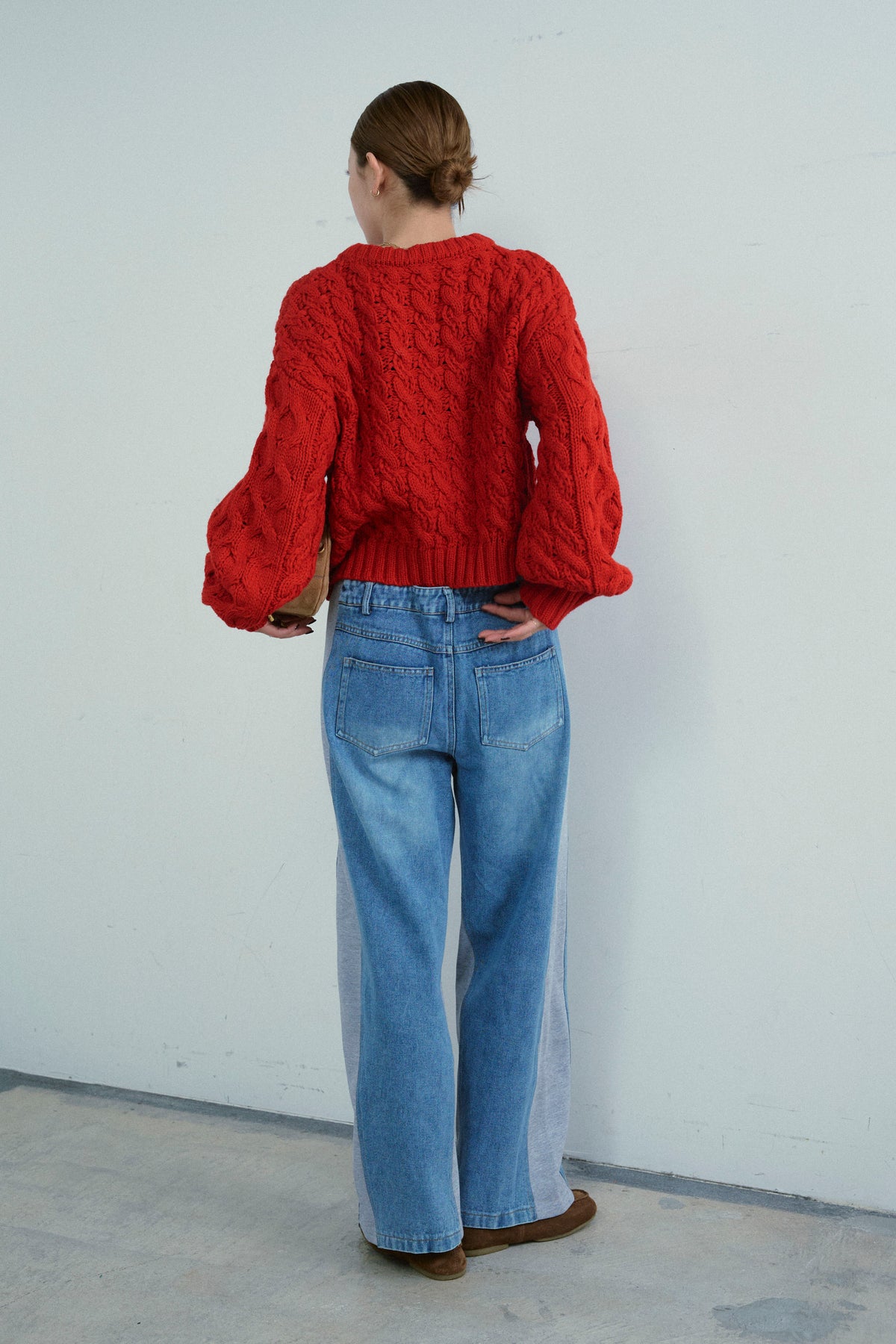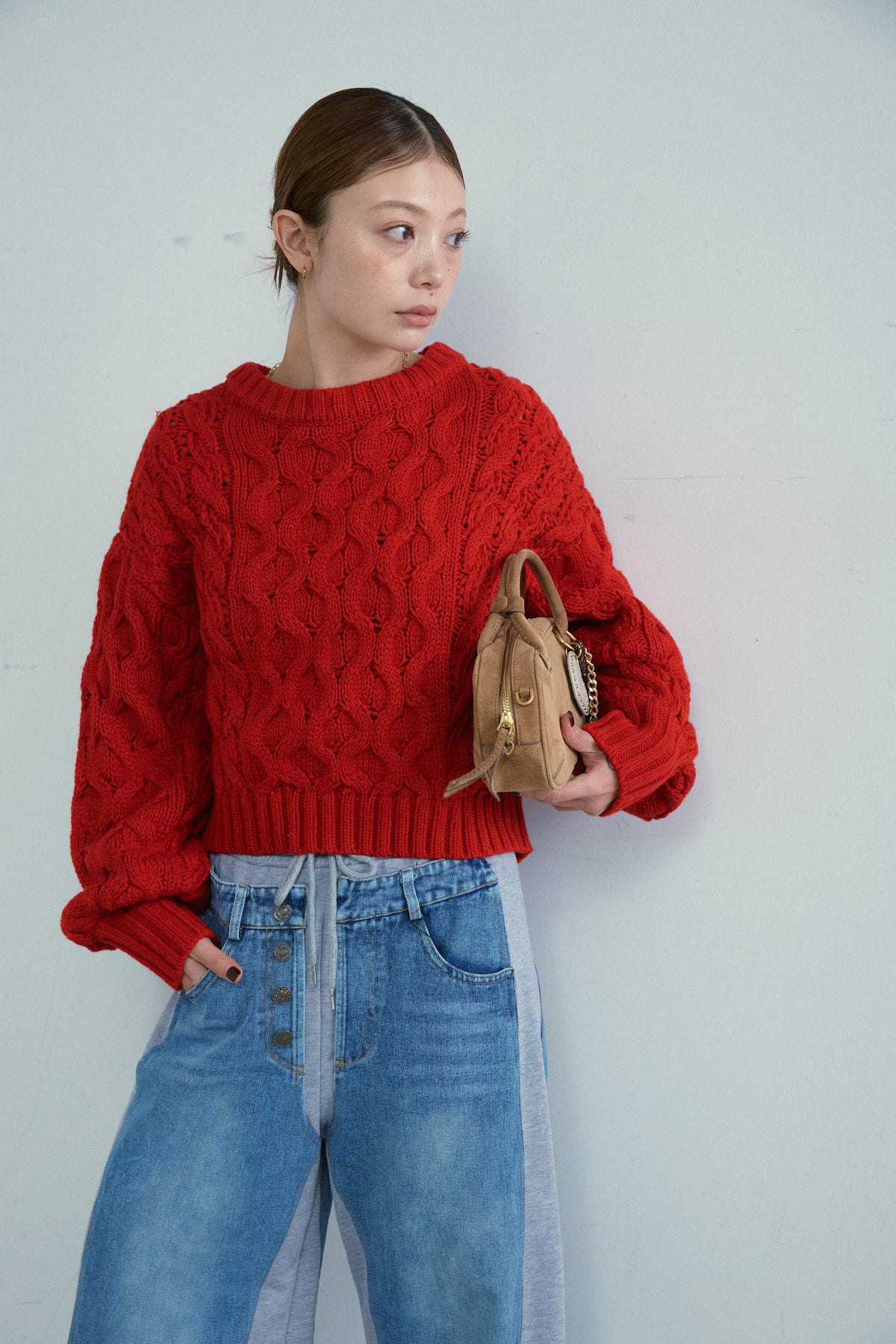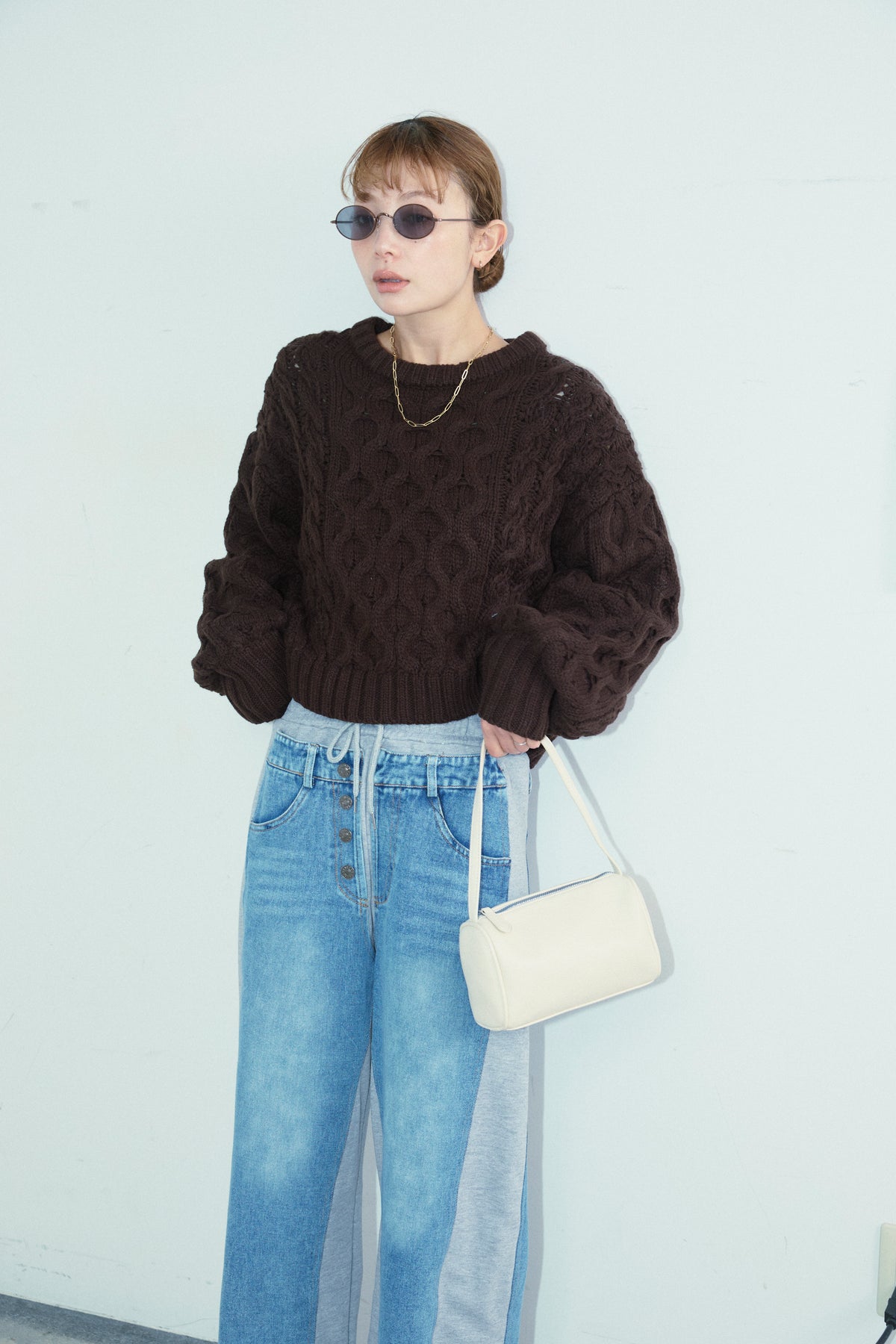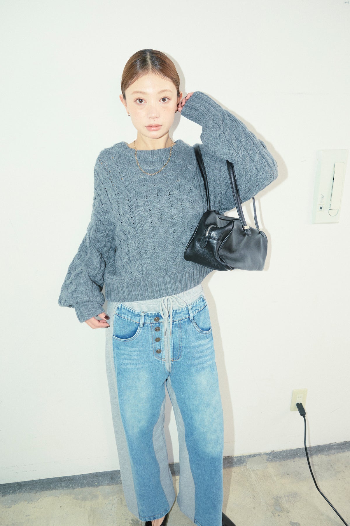 [予約/SET]バルキーケーブルPO+スウェット切り替えデニムパンツ(2set)