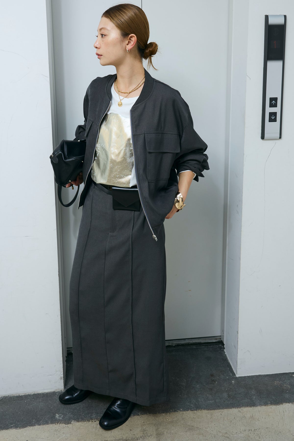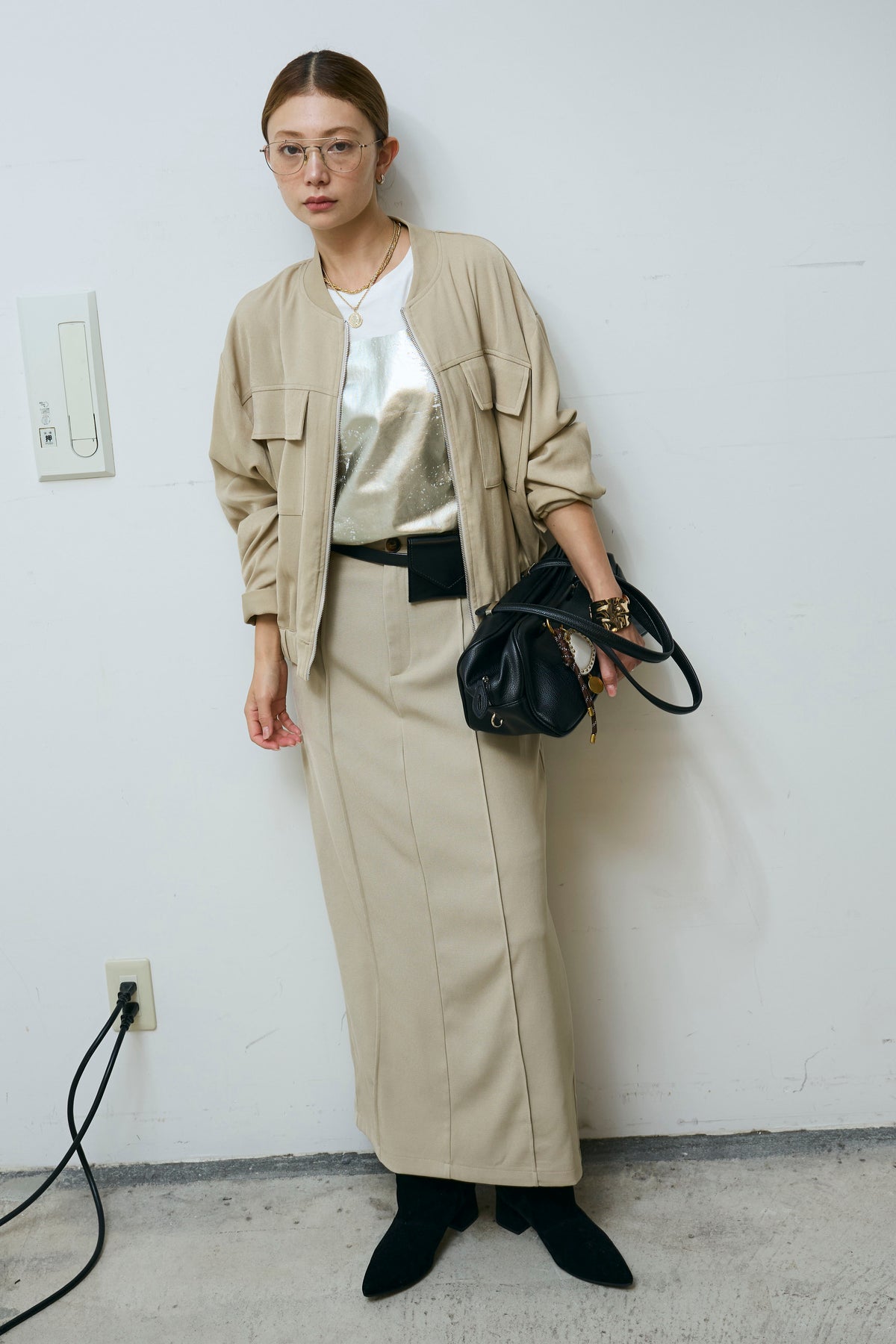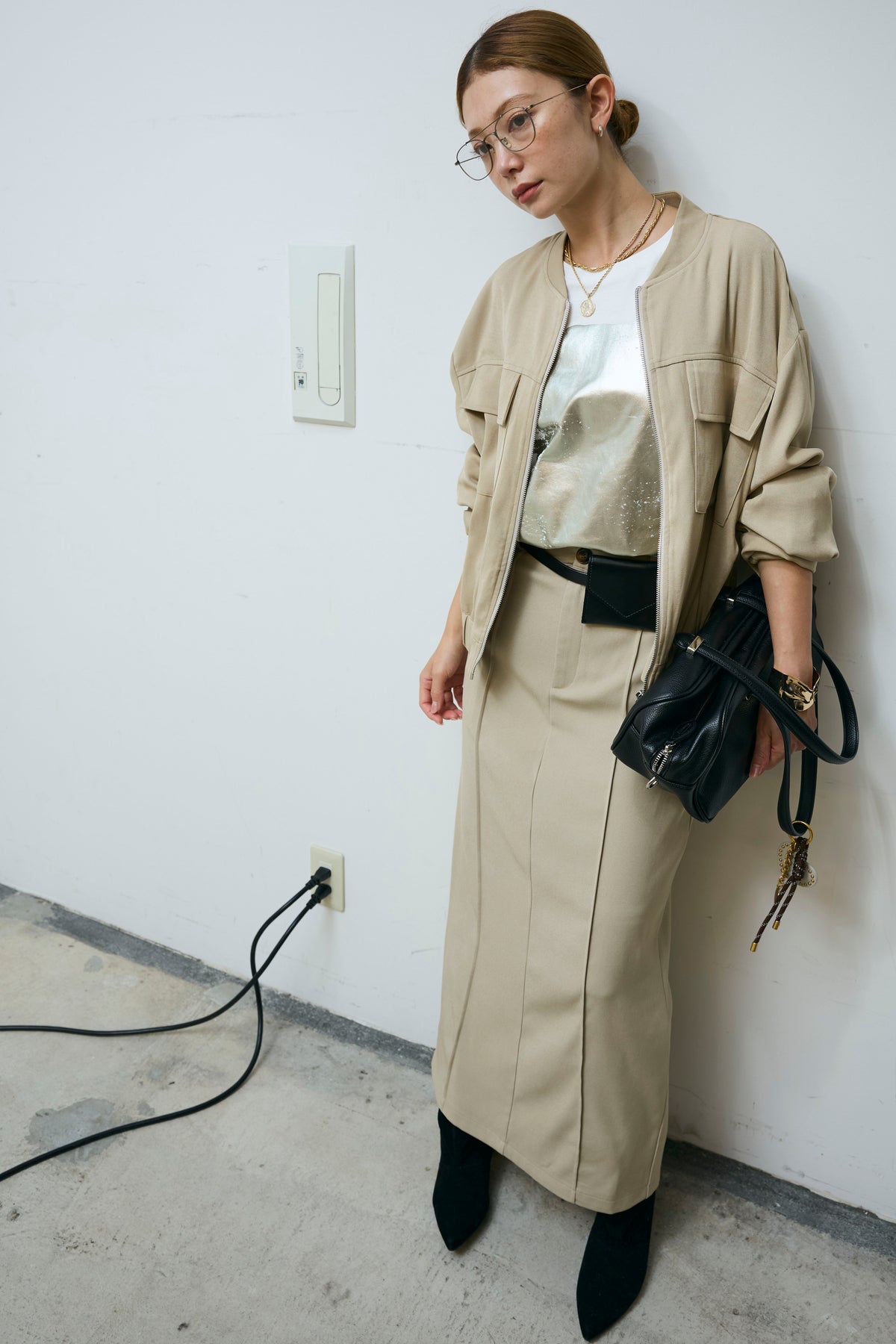 [予約/SET]ビッグポケットブルゾンJK+ピンタックストレートスカート(2set)