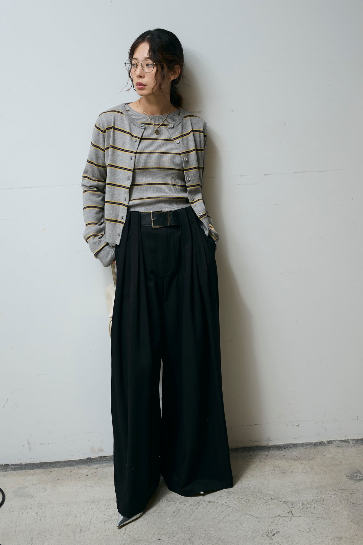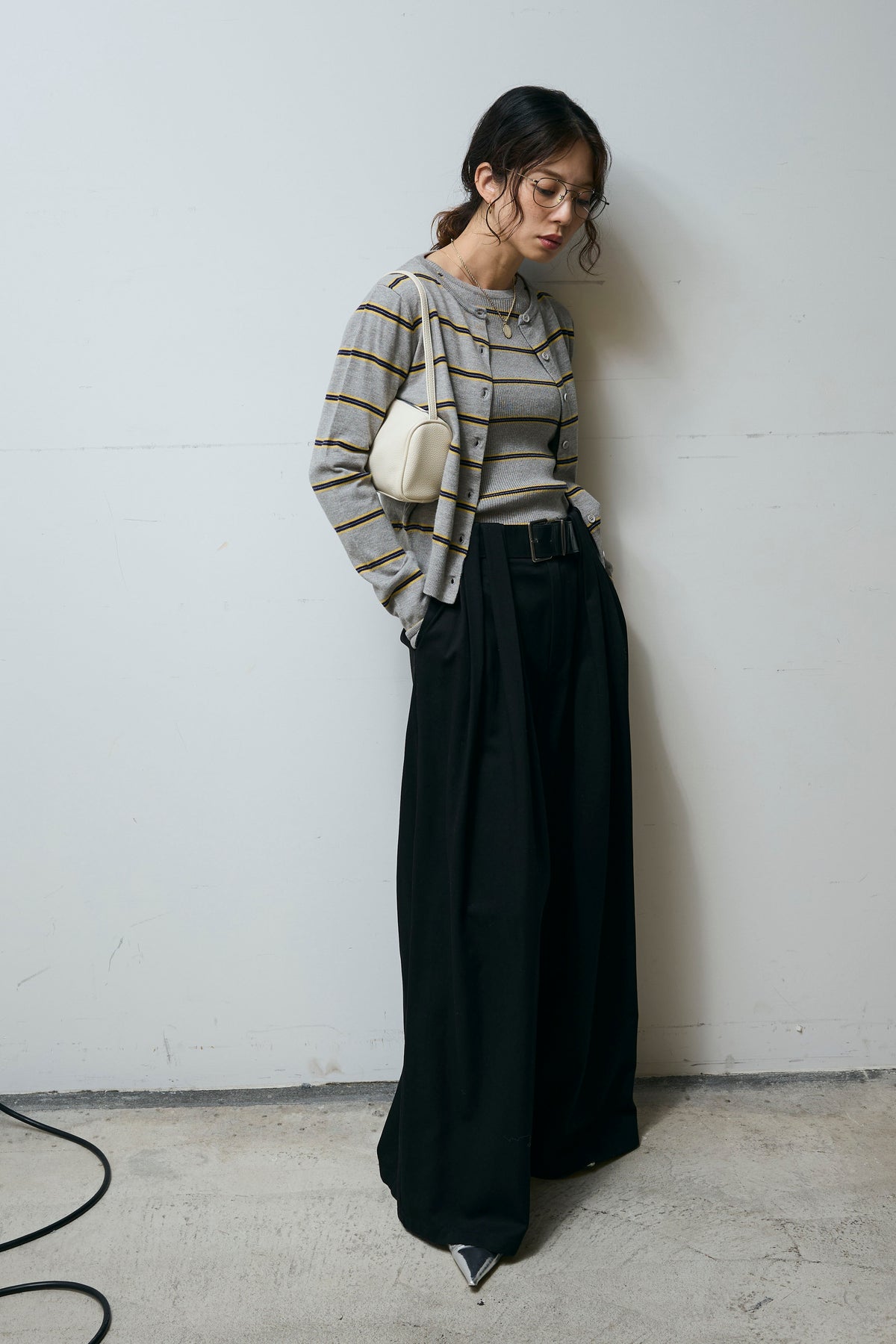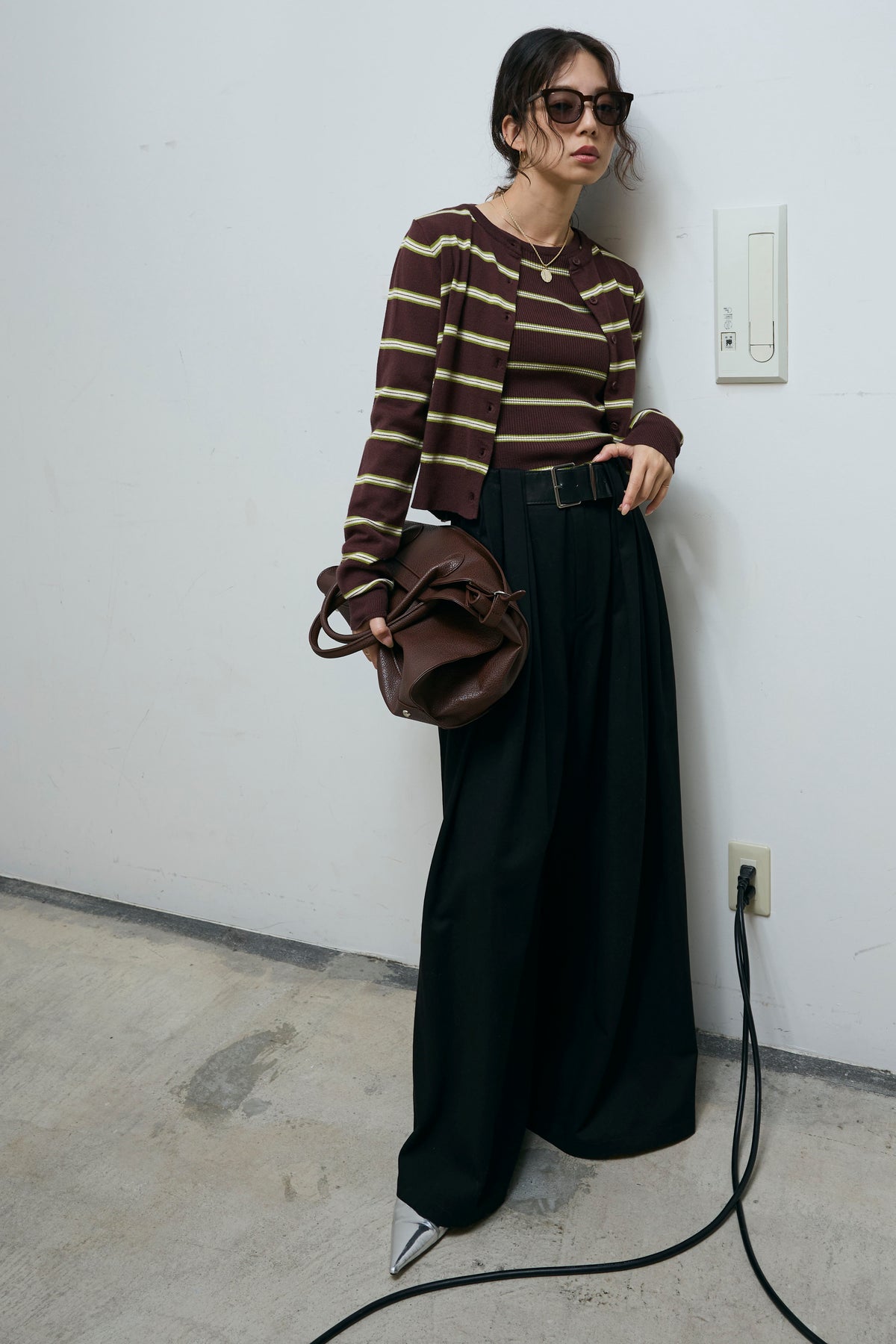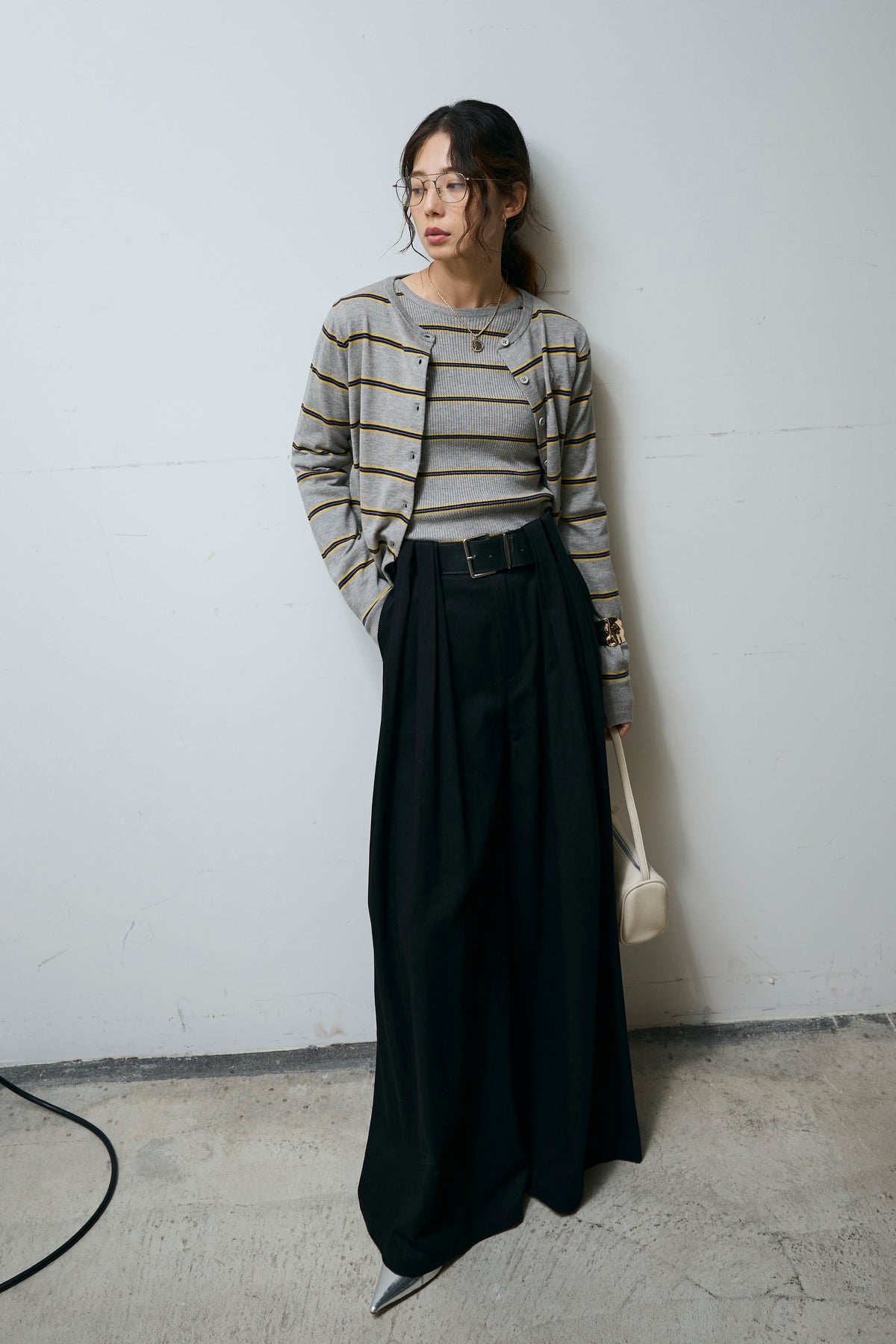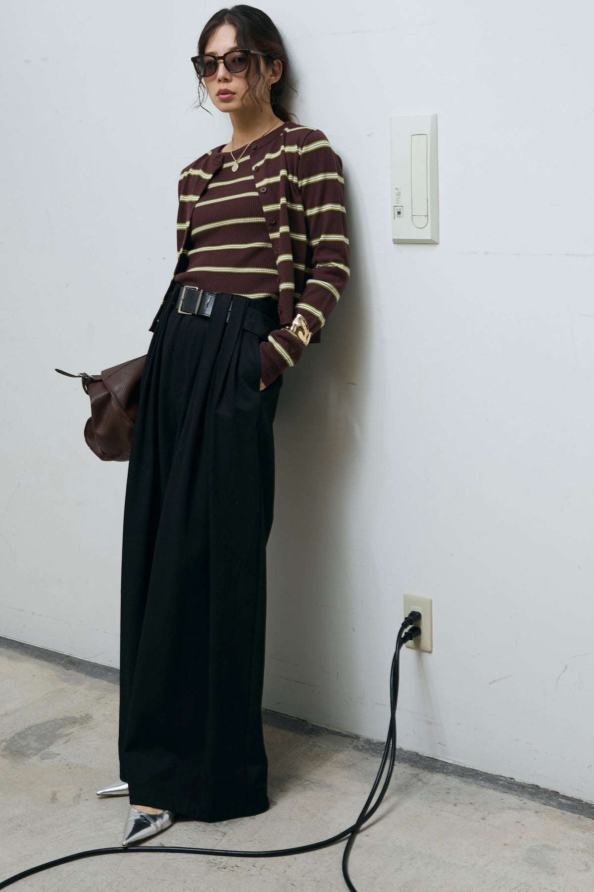 [予約/SET]ボーダーバックオープン2wayPO+ボーダーカーディガン+フェイクレザー太ベルト付きタックデザインパンツ(3set)