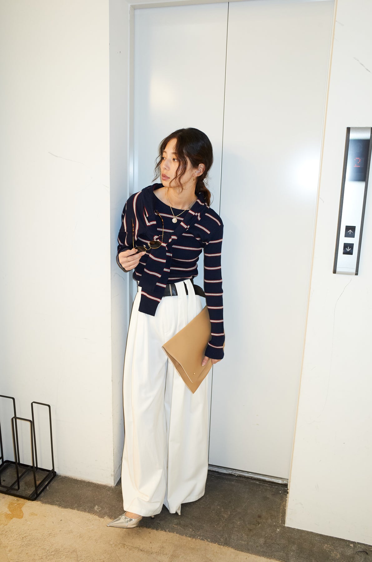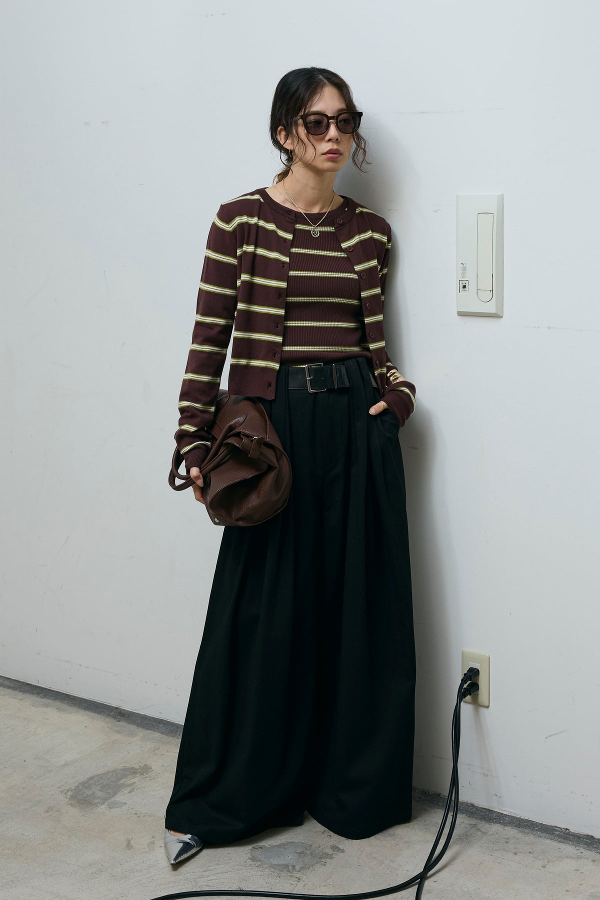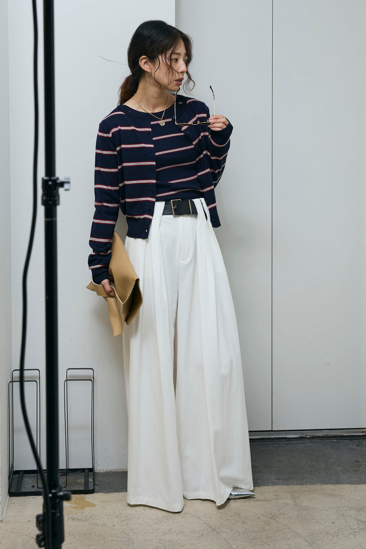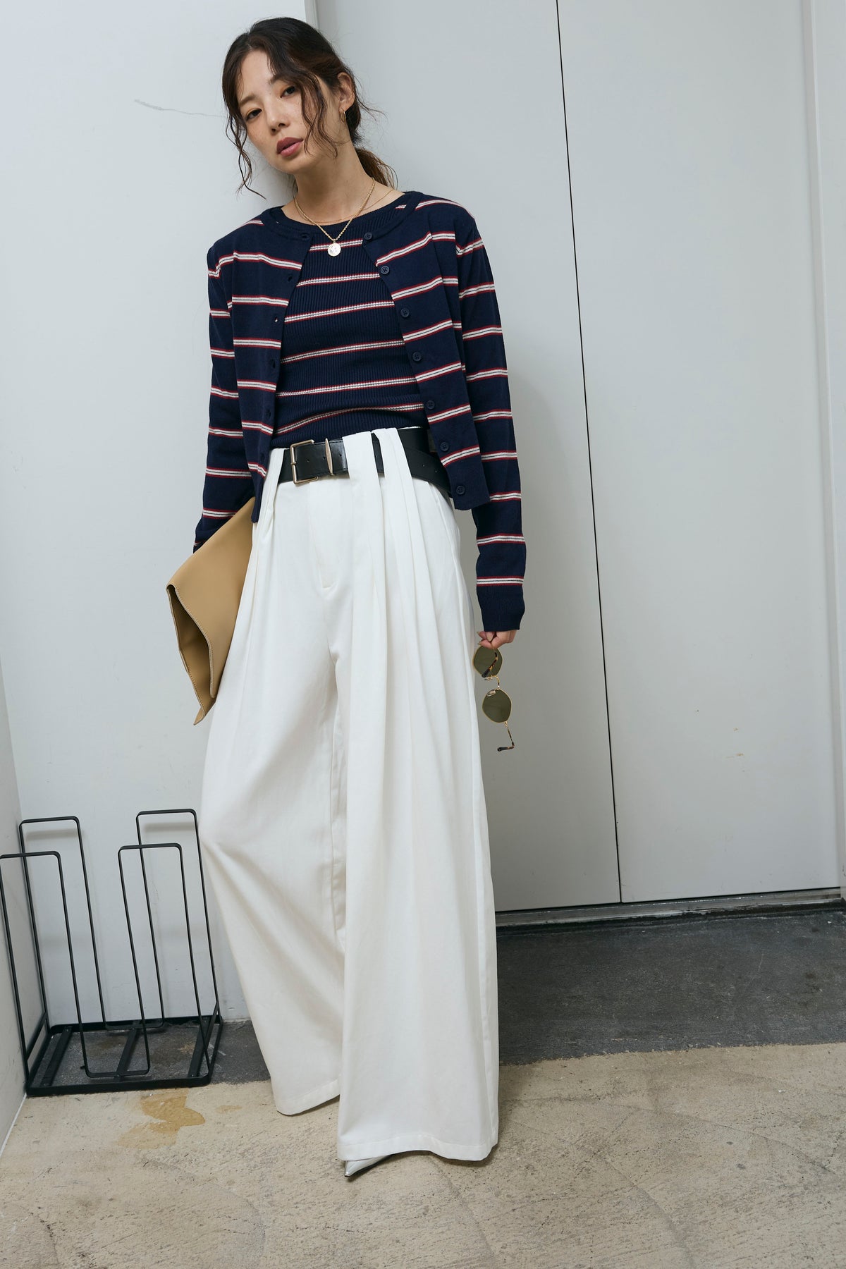 [予約/SET]ボーダーバックオープン2wayPO+ボーダーカーディガン+フェイクレザー太ベルト付きタックデザインパンツ(3set)
