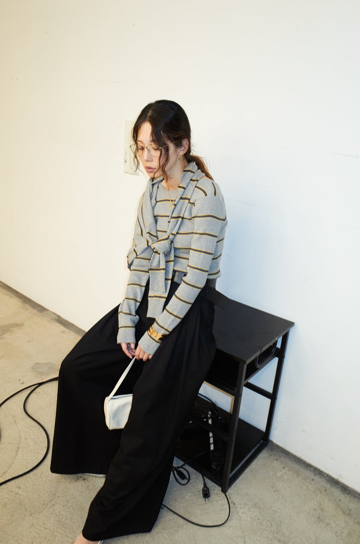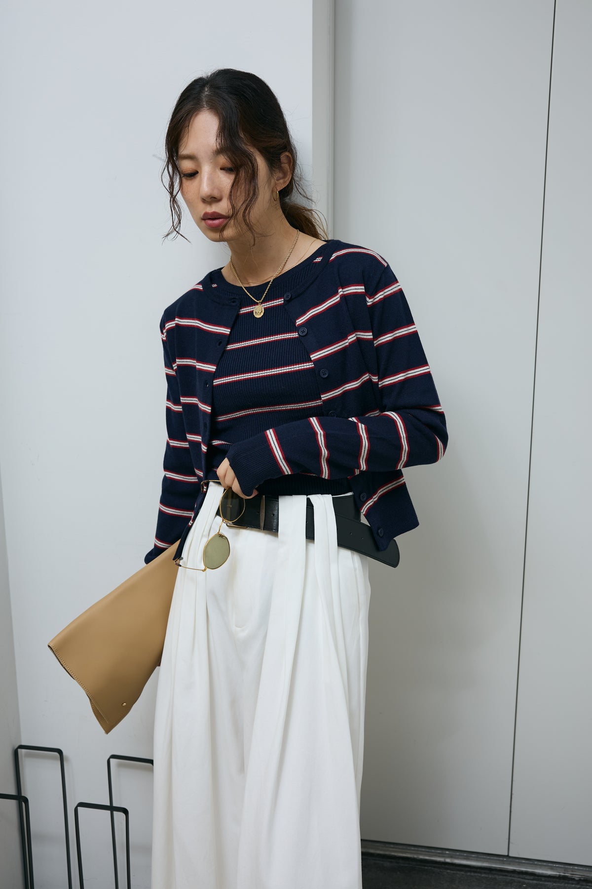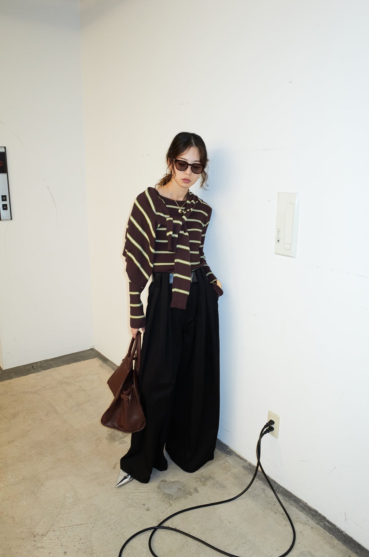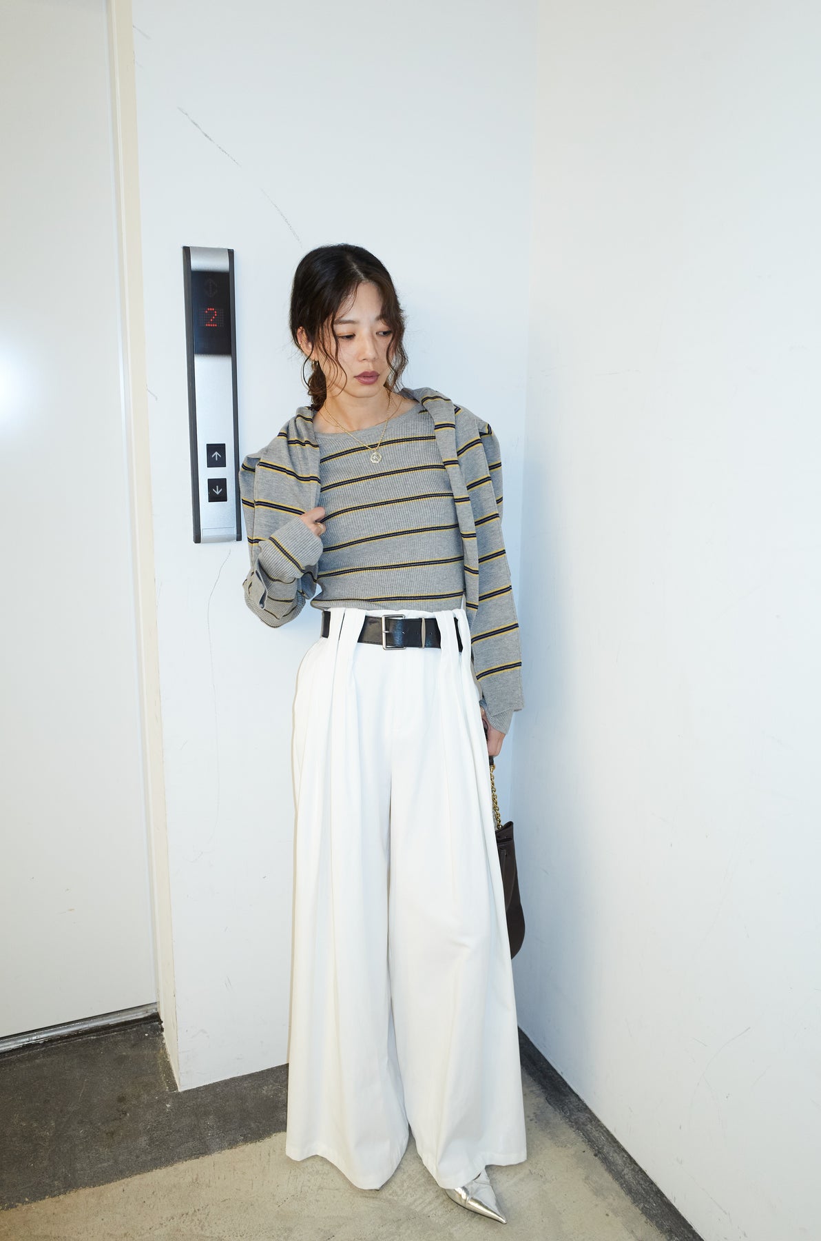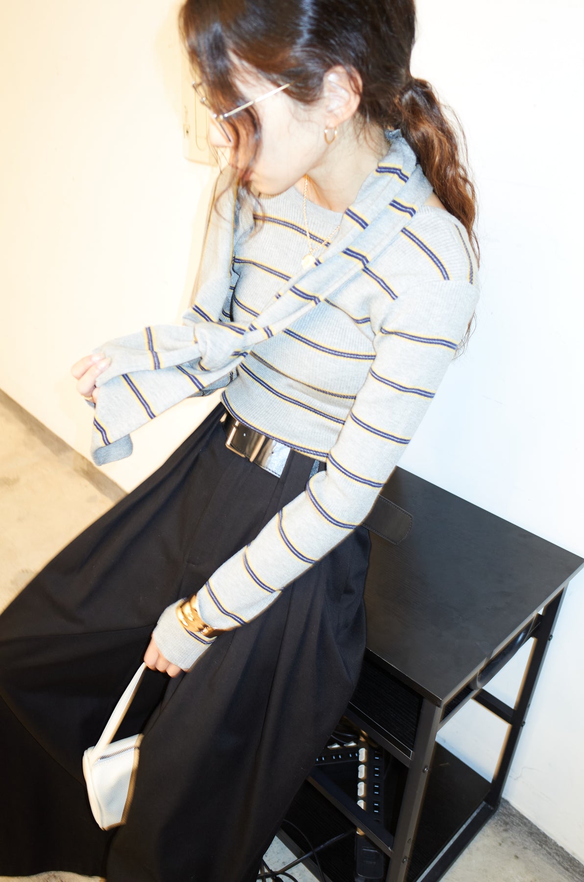 [予約/SET]ボーダーバックオープン2wayPO+ボーダーカーディガン+フェイクレザー太ベルト付きタックデザインパンツ(3set)