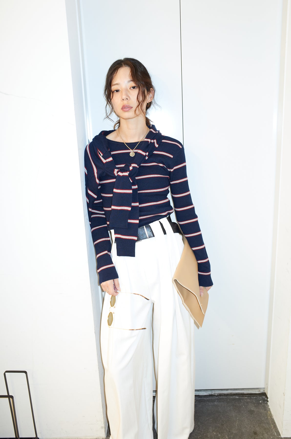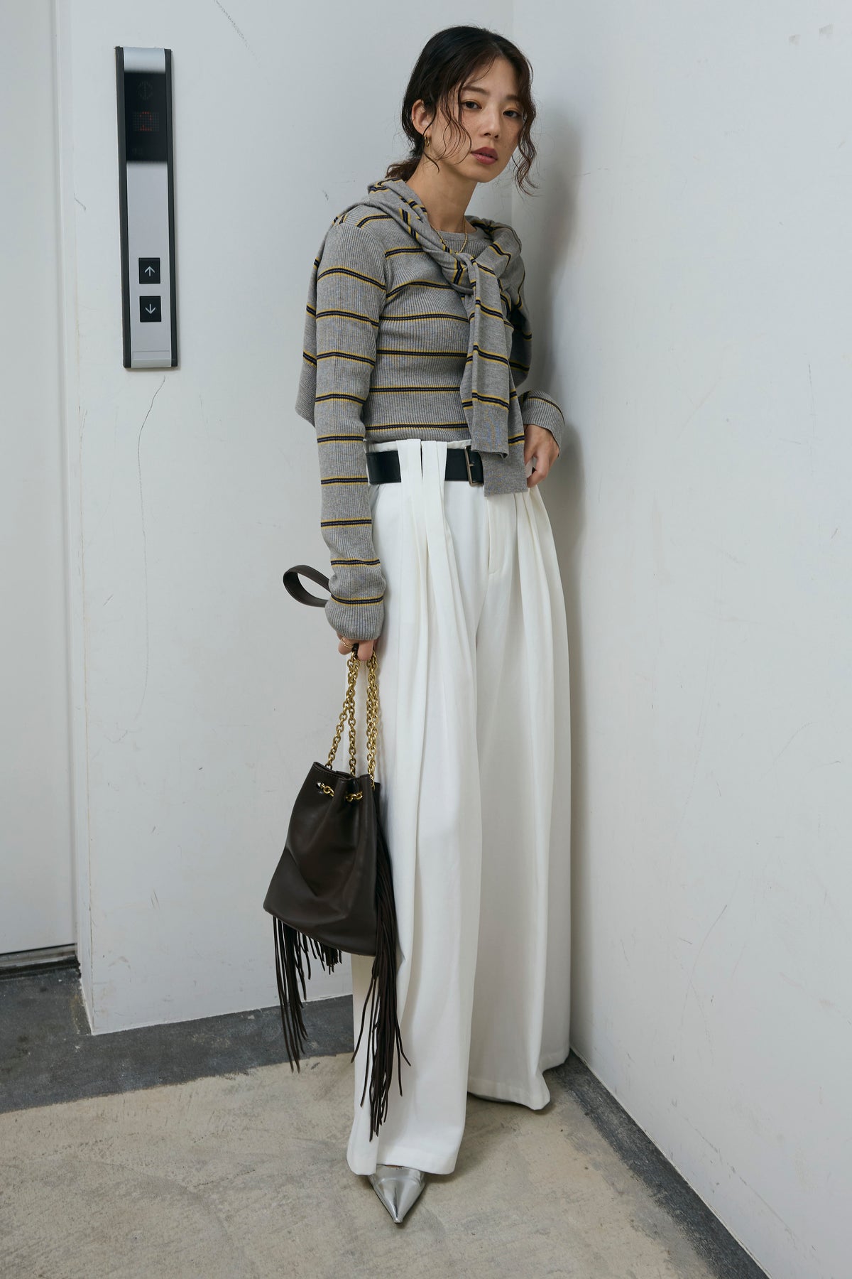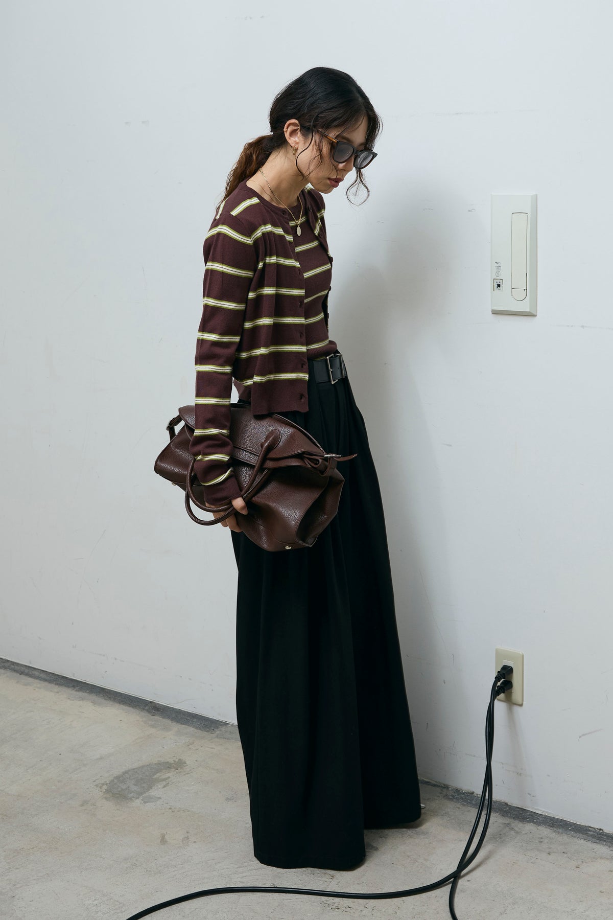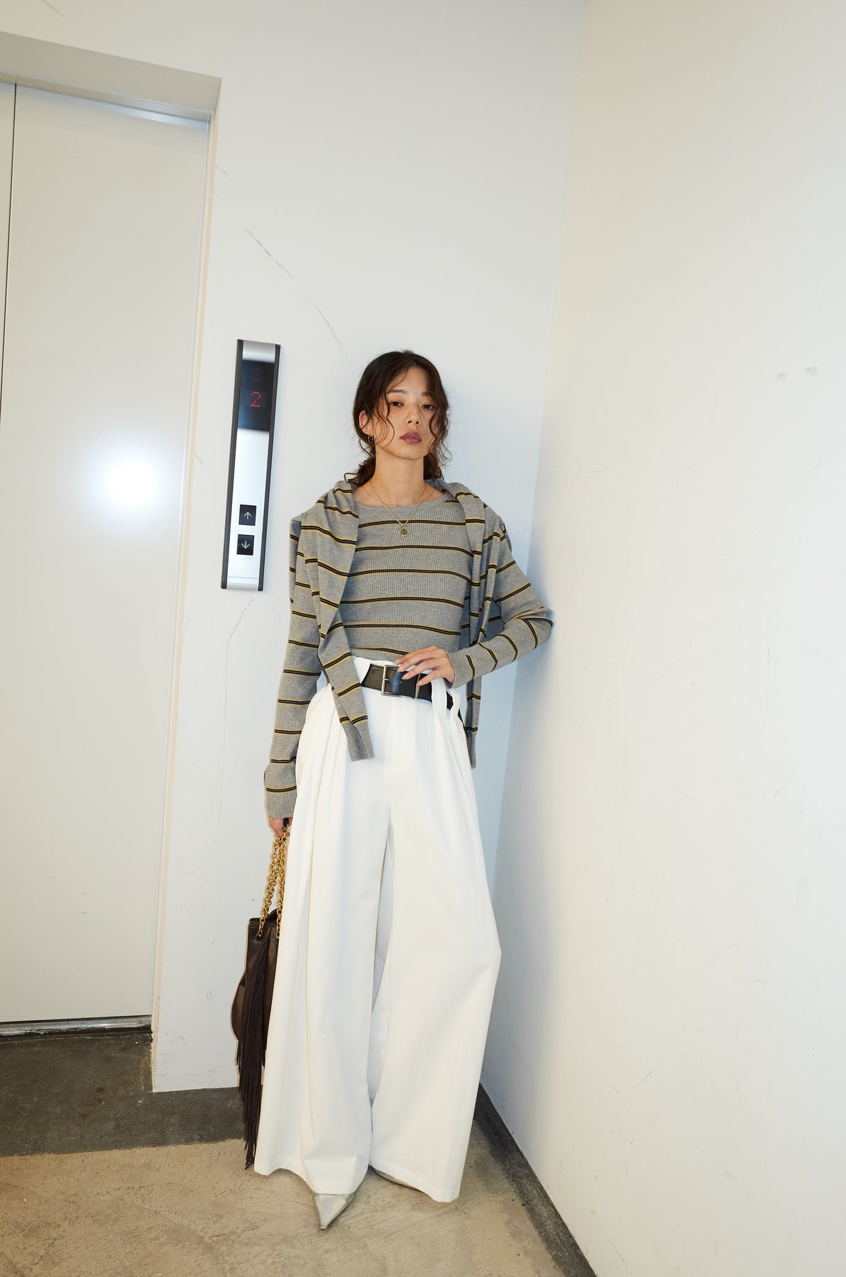 [予約/SET]ボーダーバックオープン2wayPO+ボーダーカーディガン+フェイクレザー太ベルト付きタックデザインパンツ(3set)