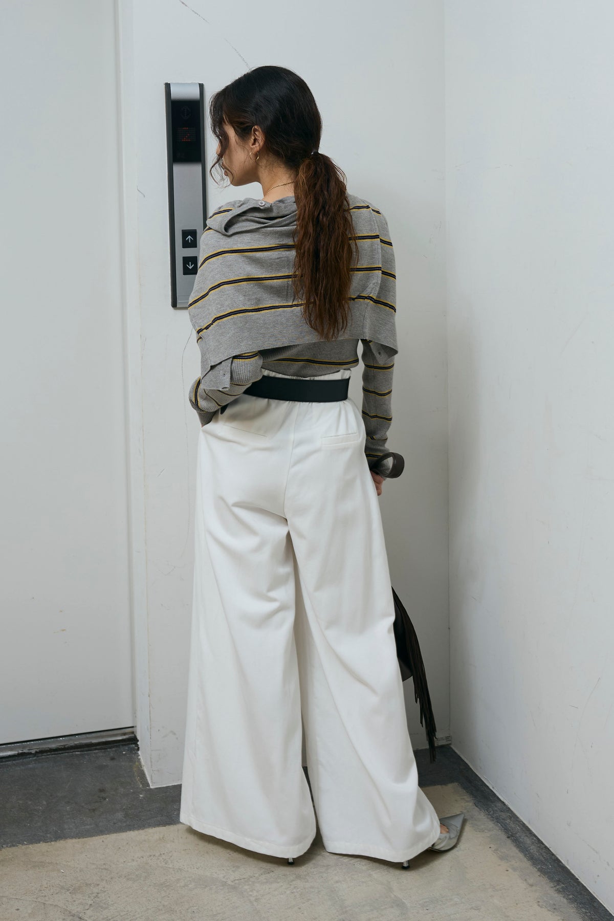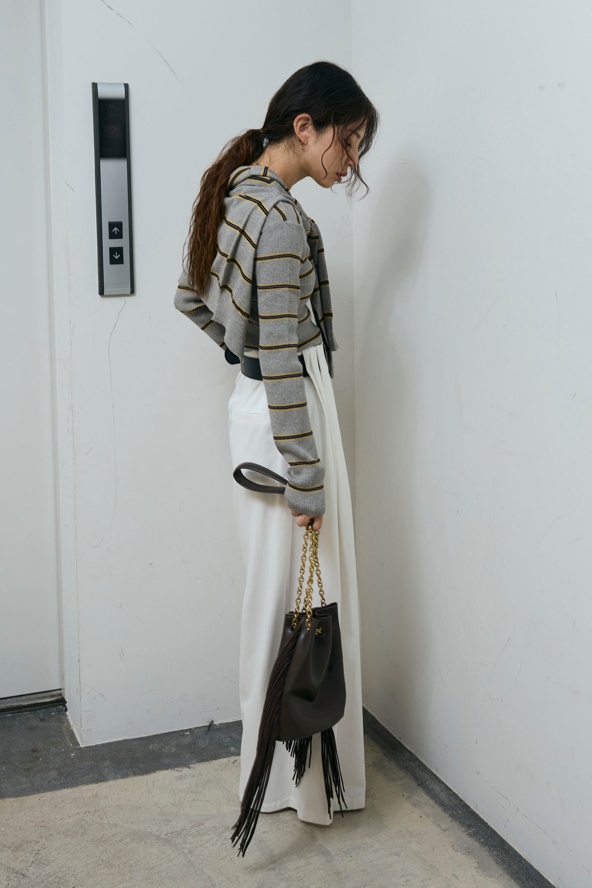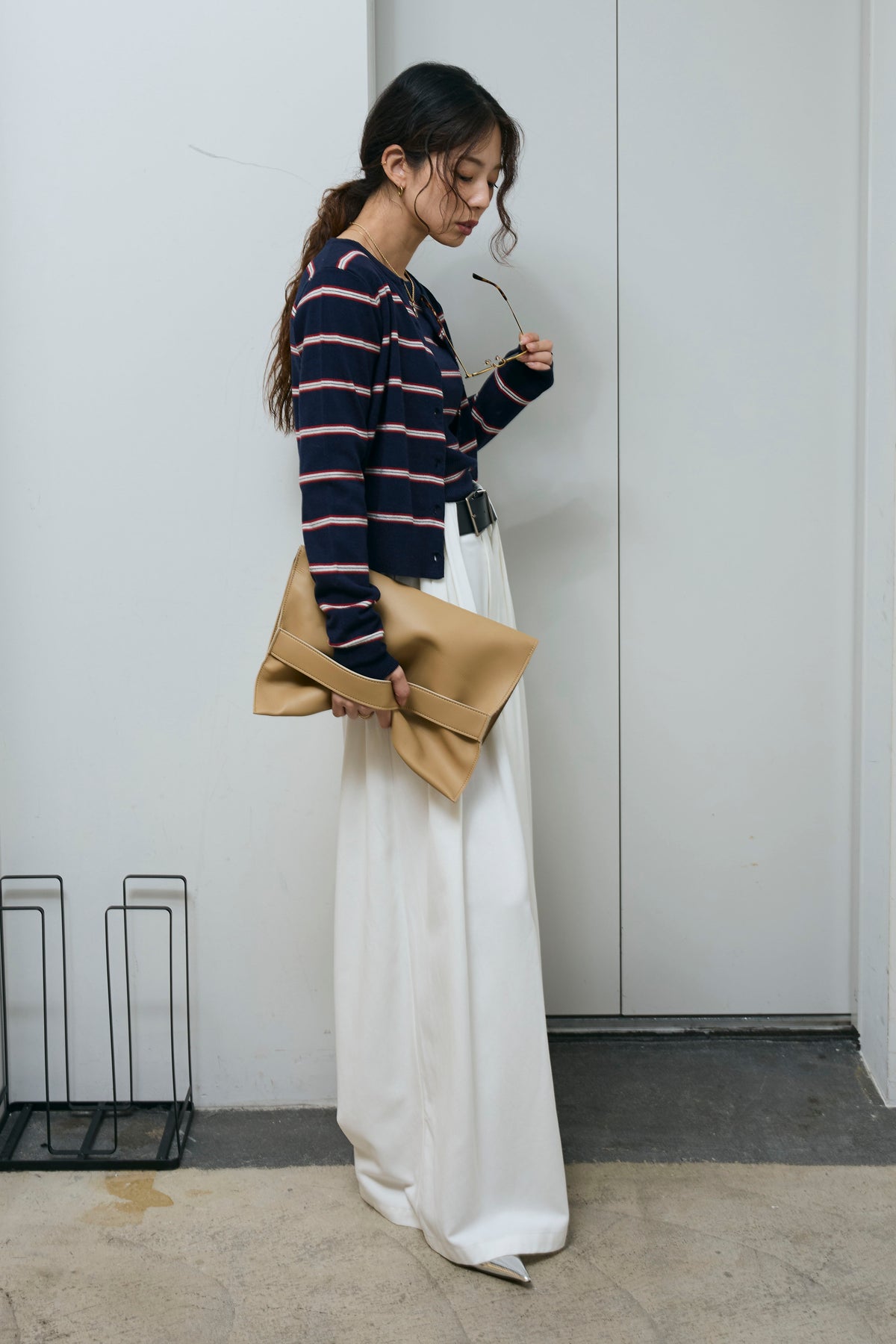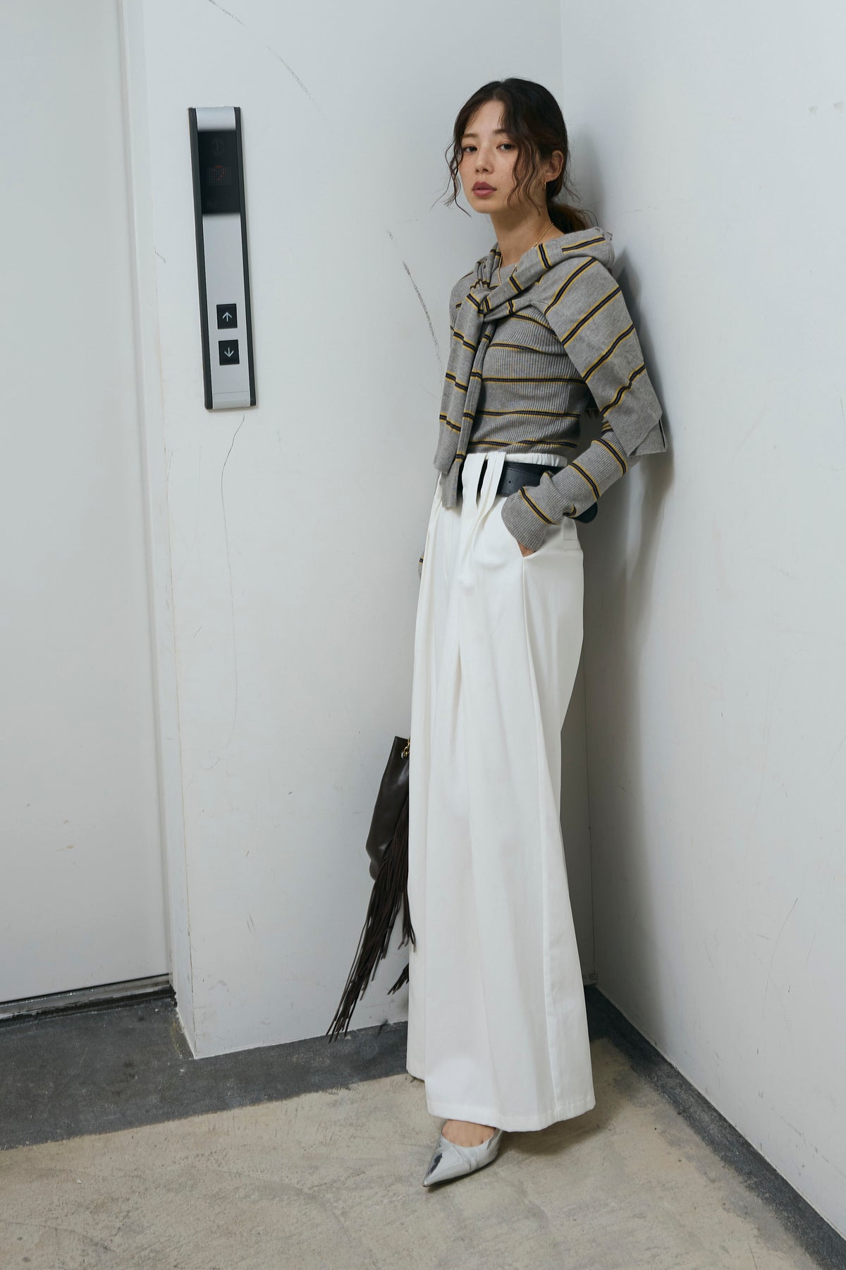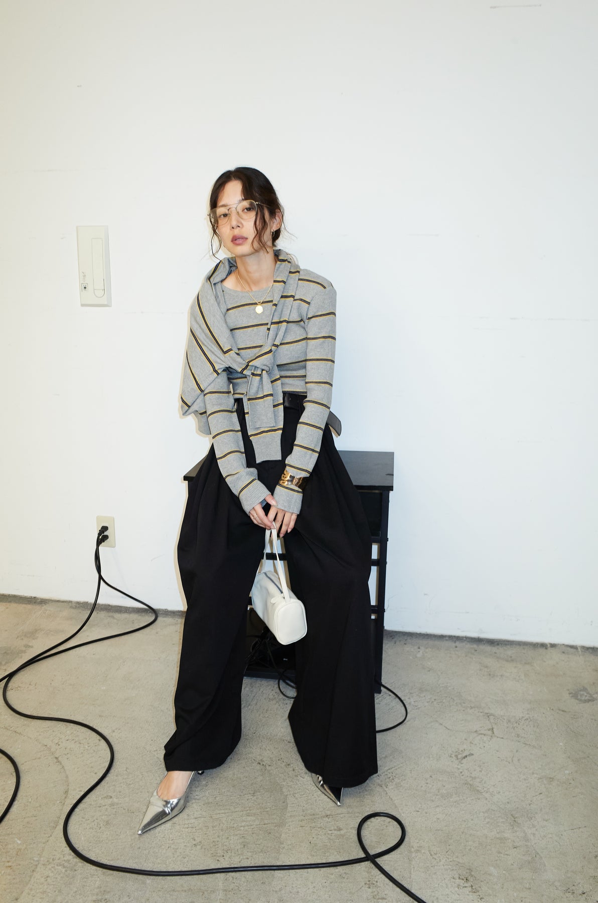 [予約/SET]ボーダーバックオープン2wayPO+ボーダーカーディガン+フェイクレザー太ベルト付きタックデザインパンツ(3set)