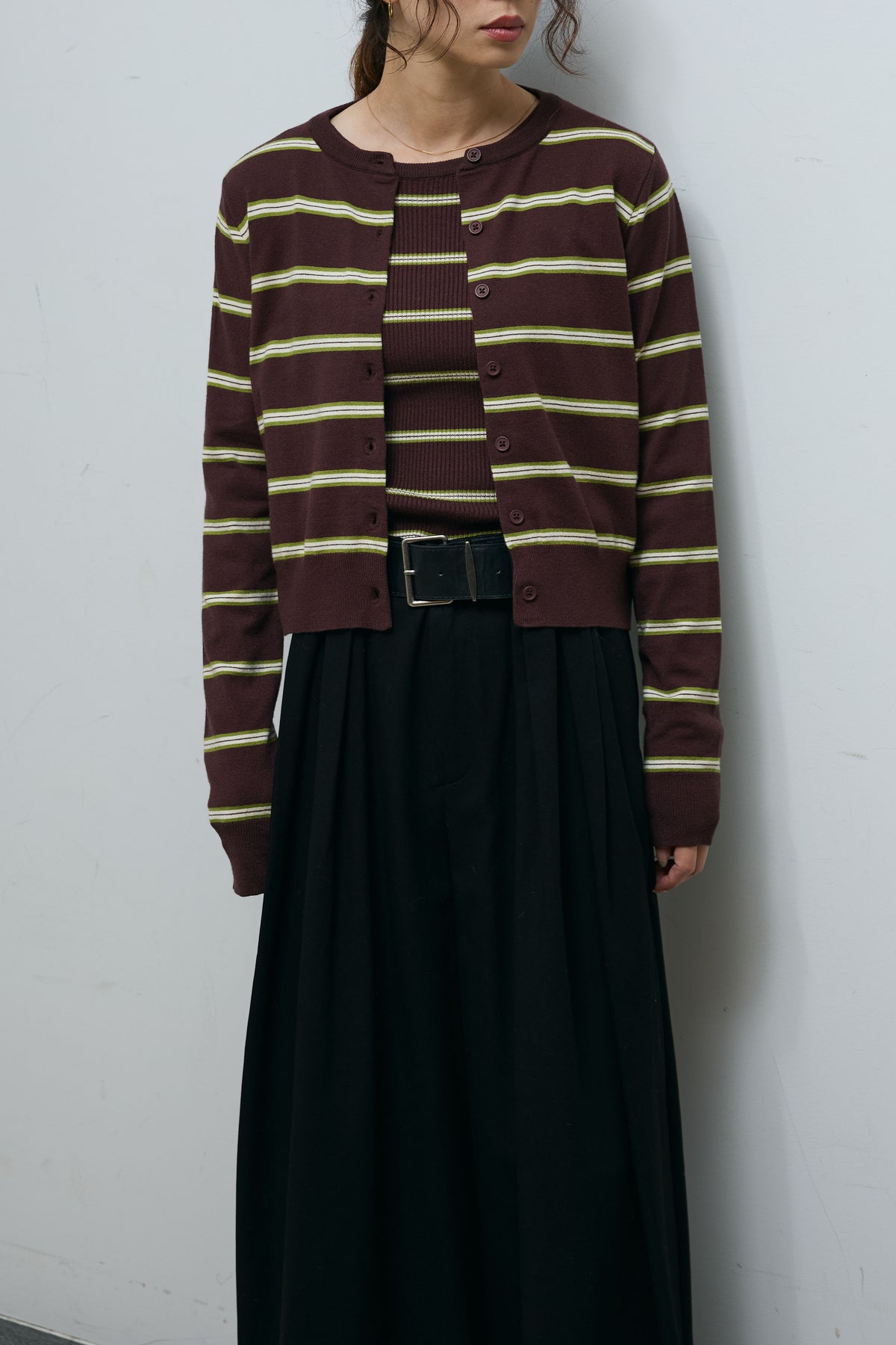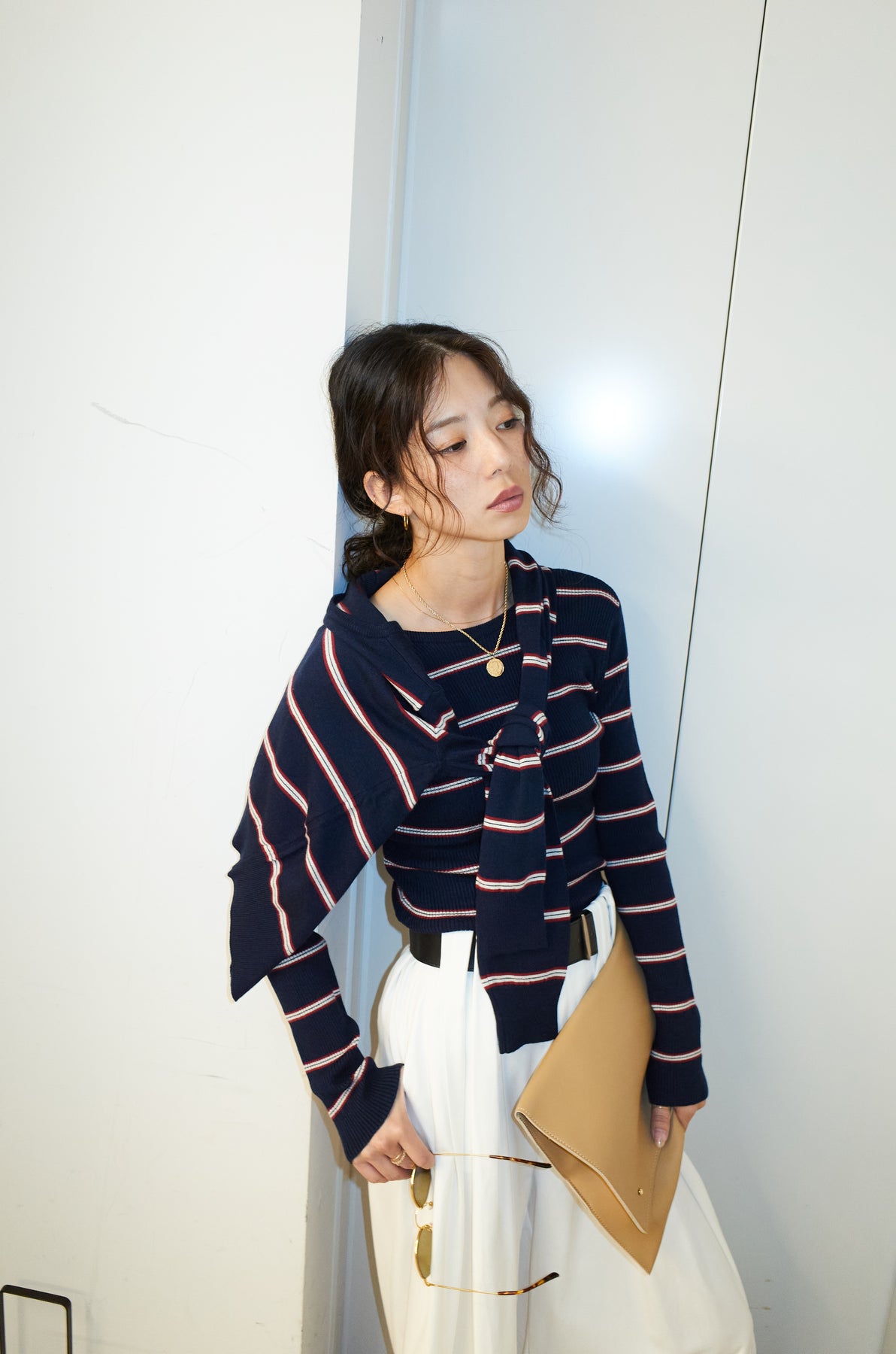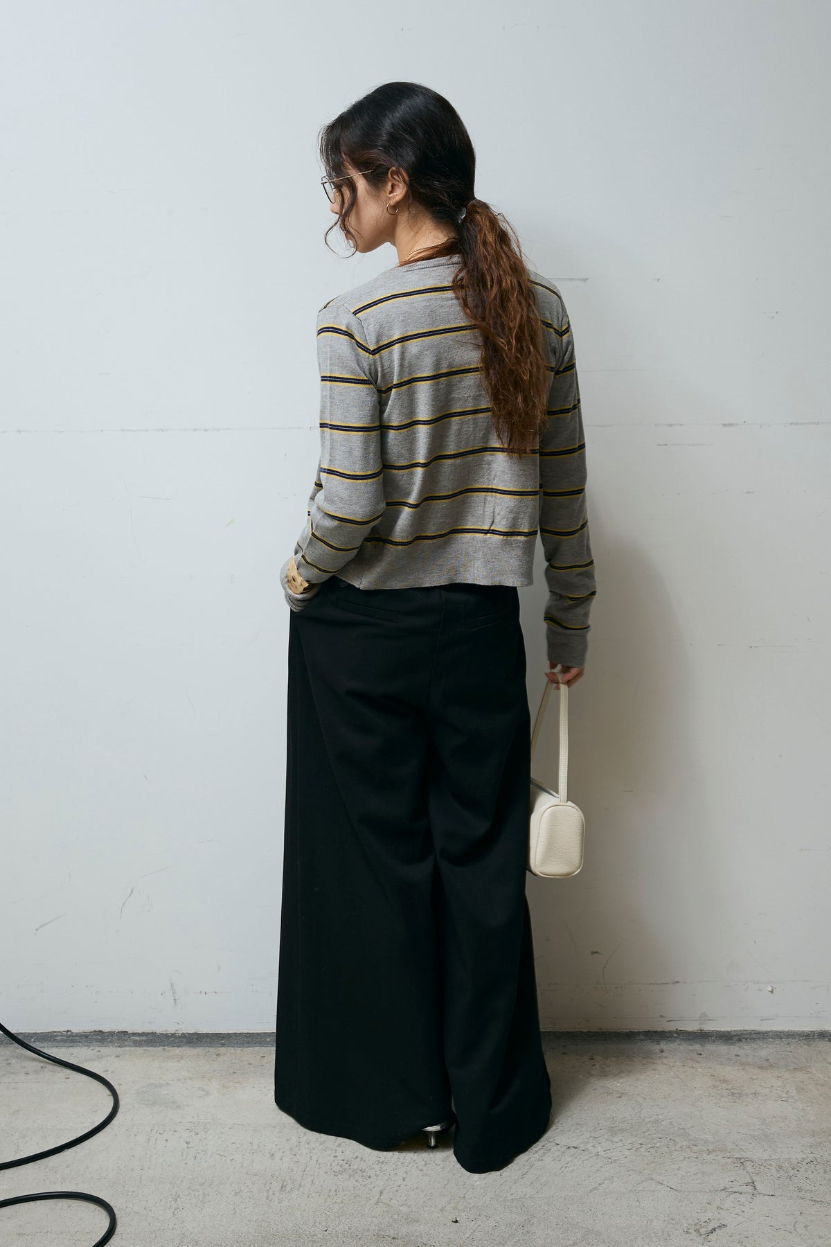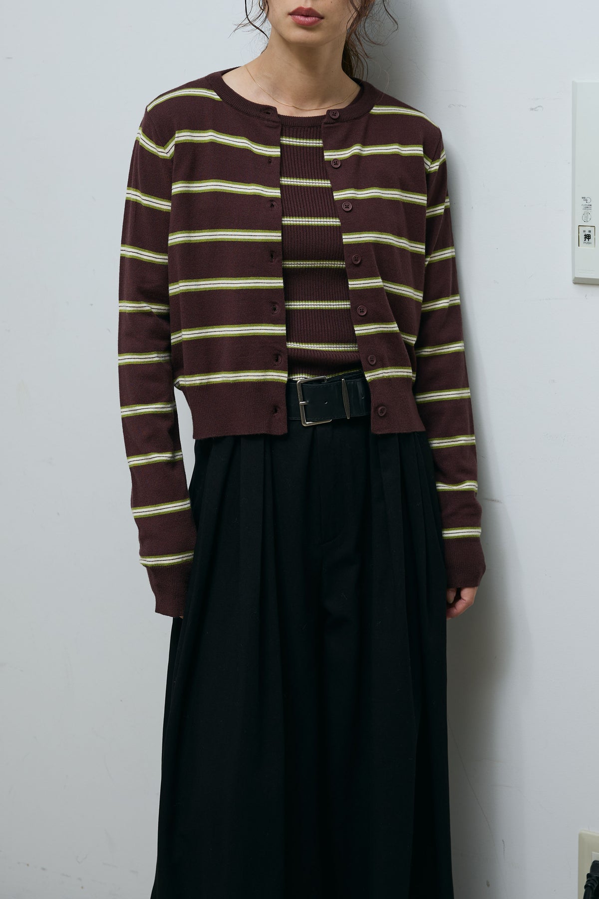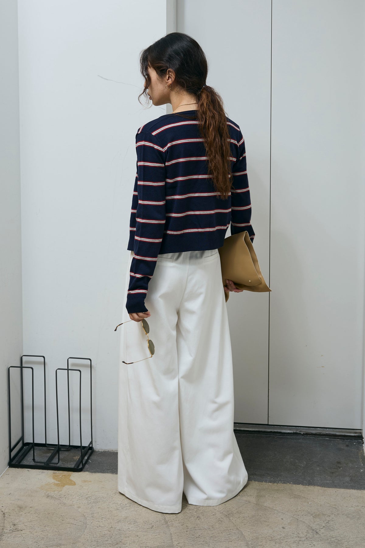 [予約/SET]ボーダーバックオープン2wayPO+ボーダーカーディガン+フェイクレザー太ベルト付きタックデザインパンツ(3set)