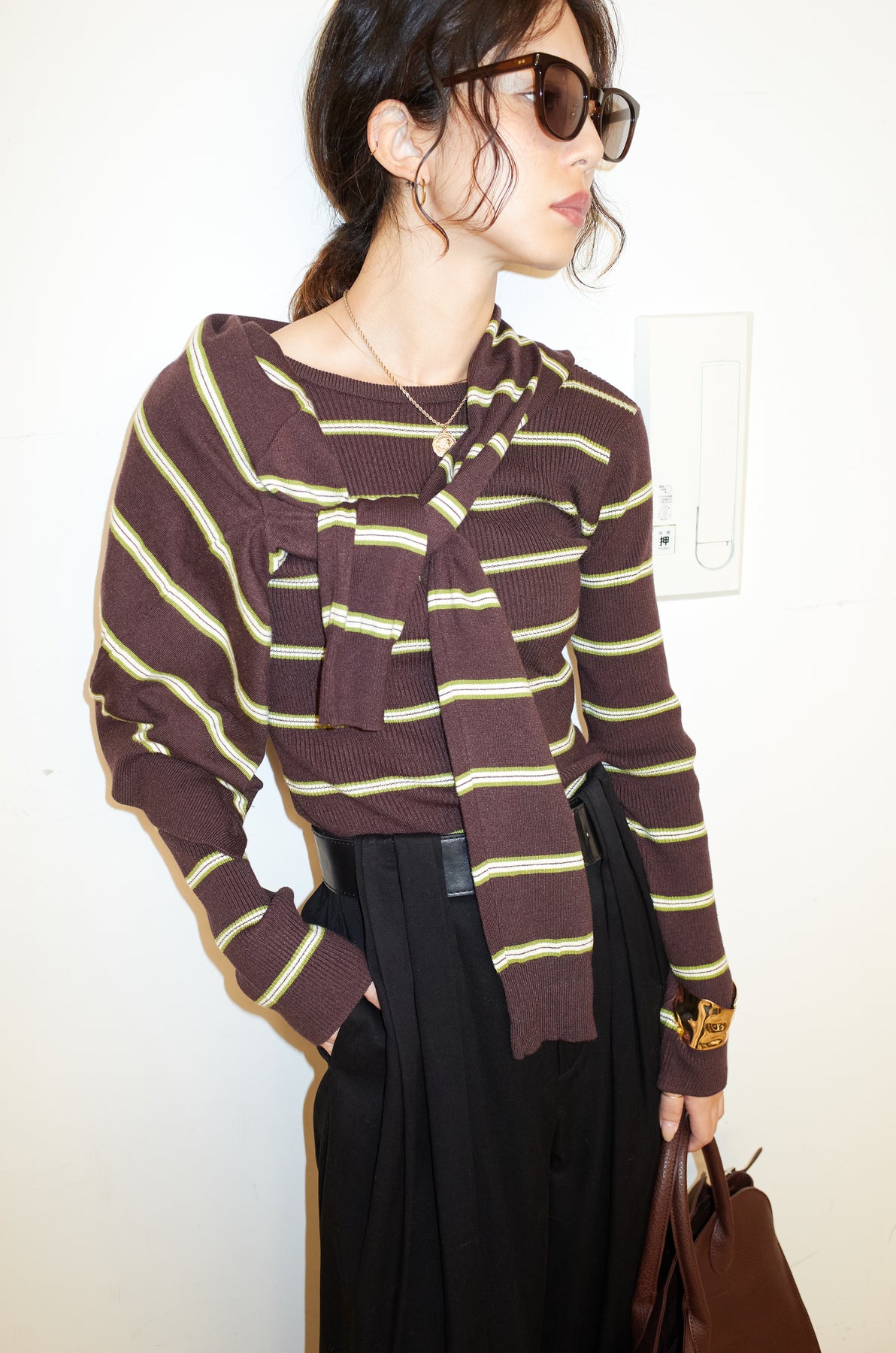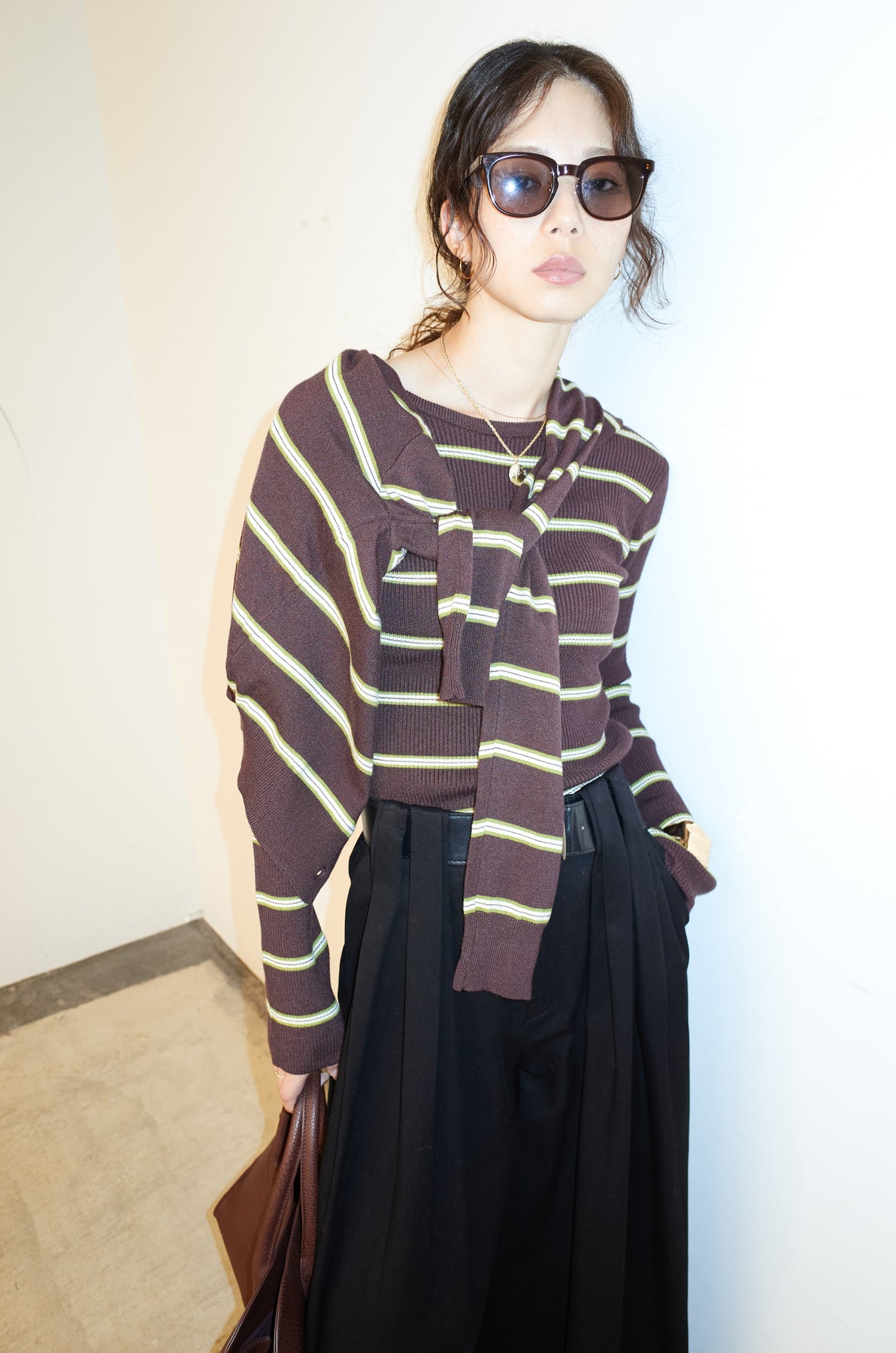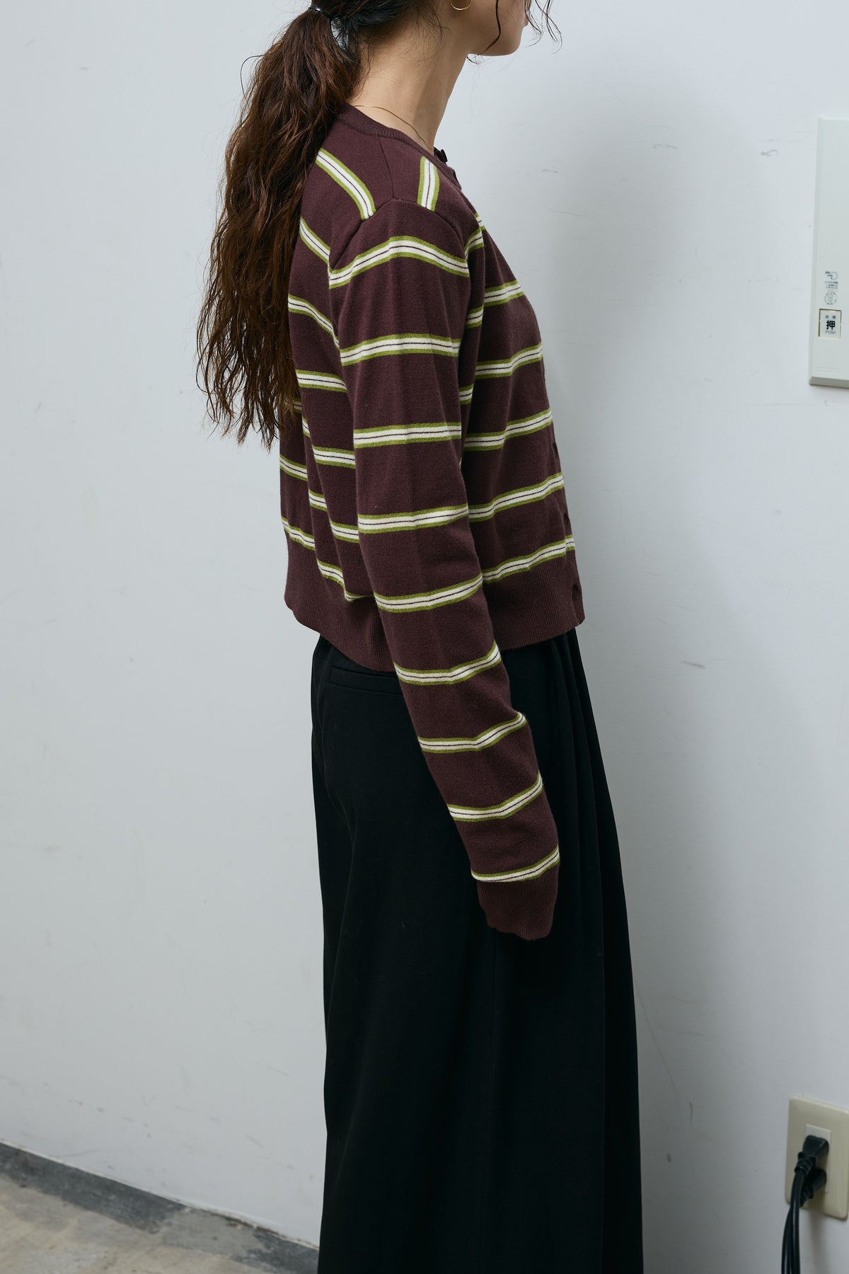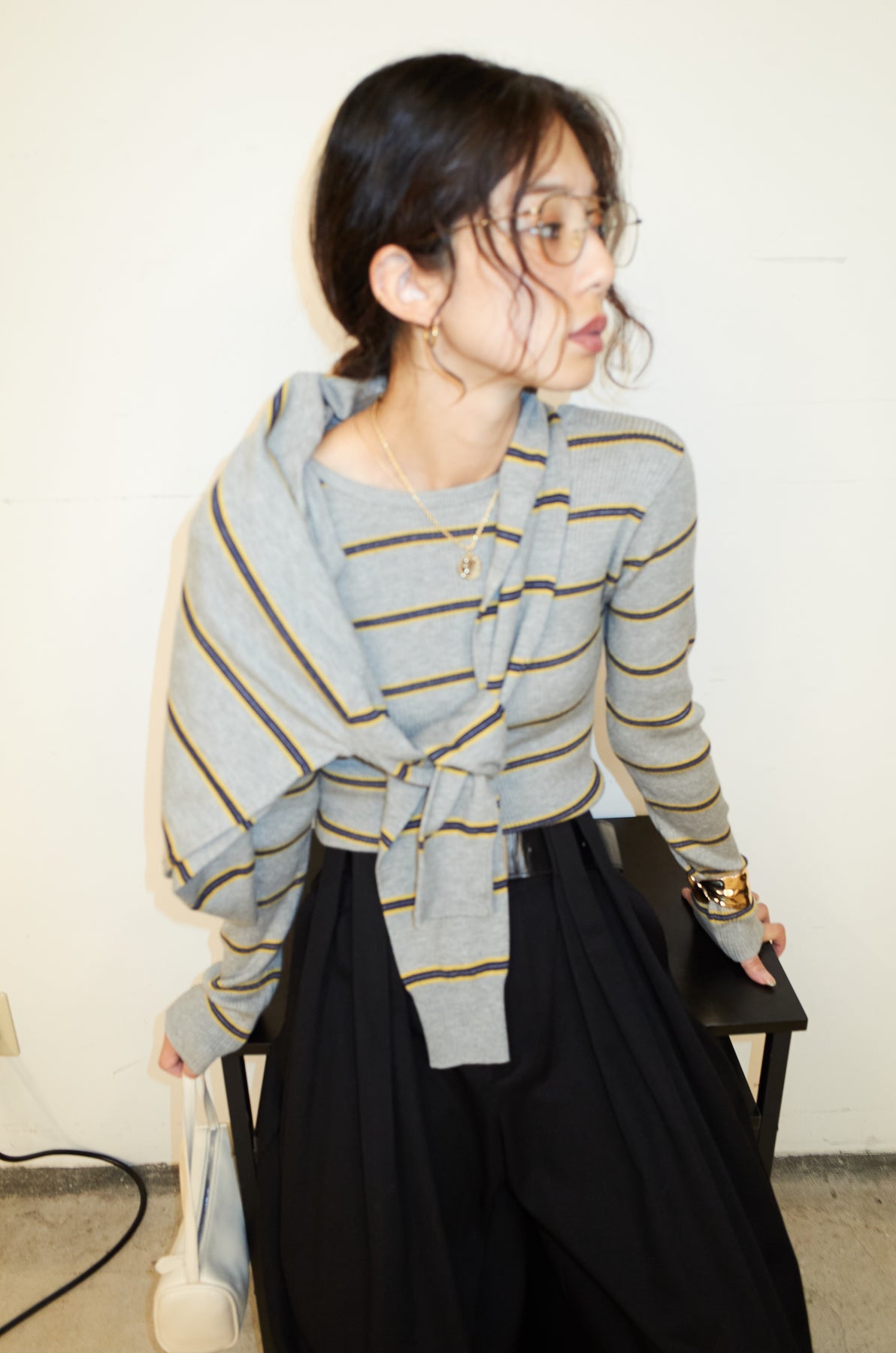 [予約/SET]ボーダーバックオープン2wayPO+ボーダーカーディガン+フェイクレザー太ベルト付きタックデザインパンツ(3set)