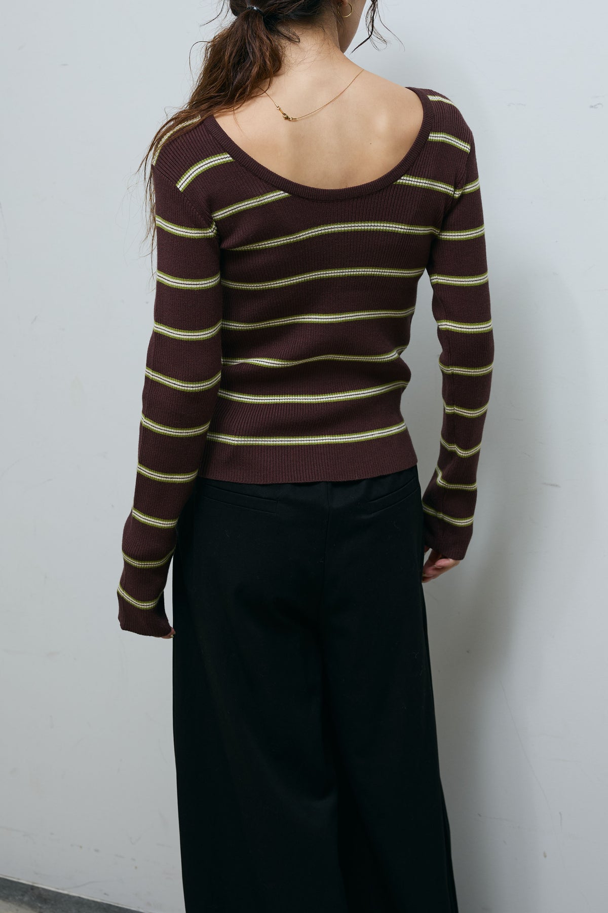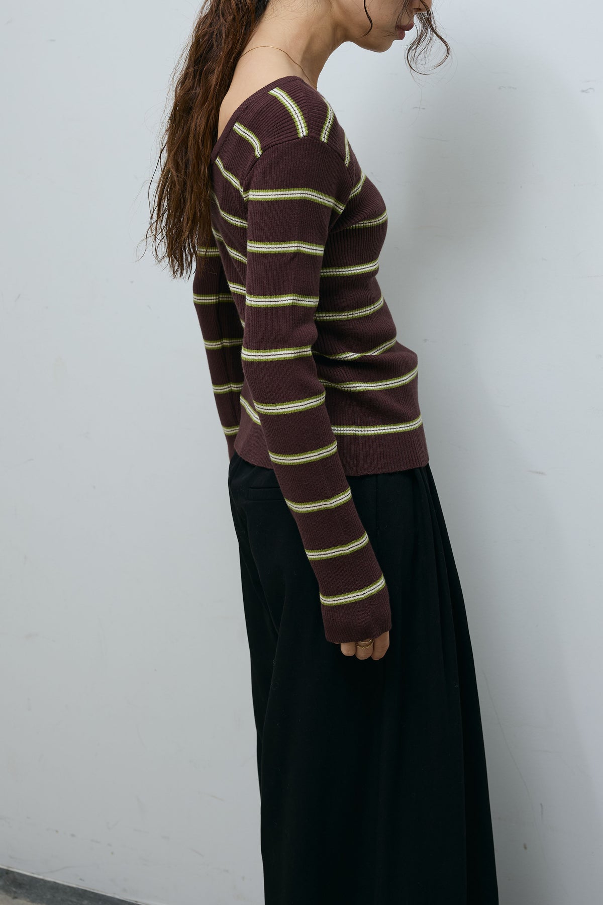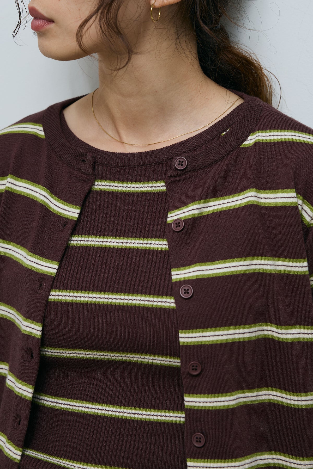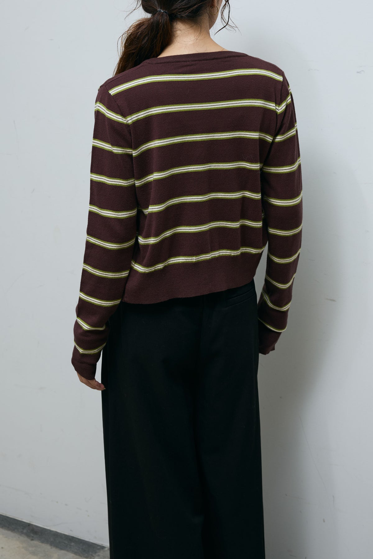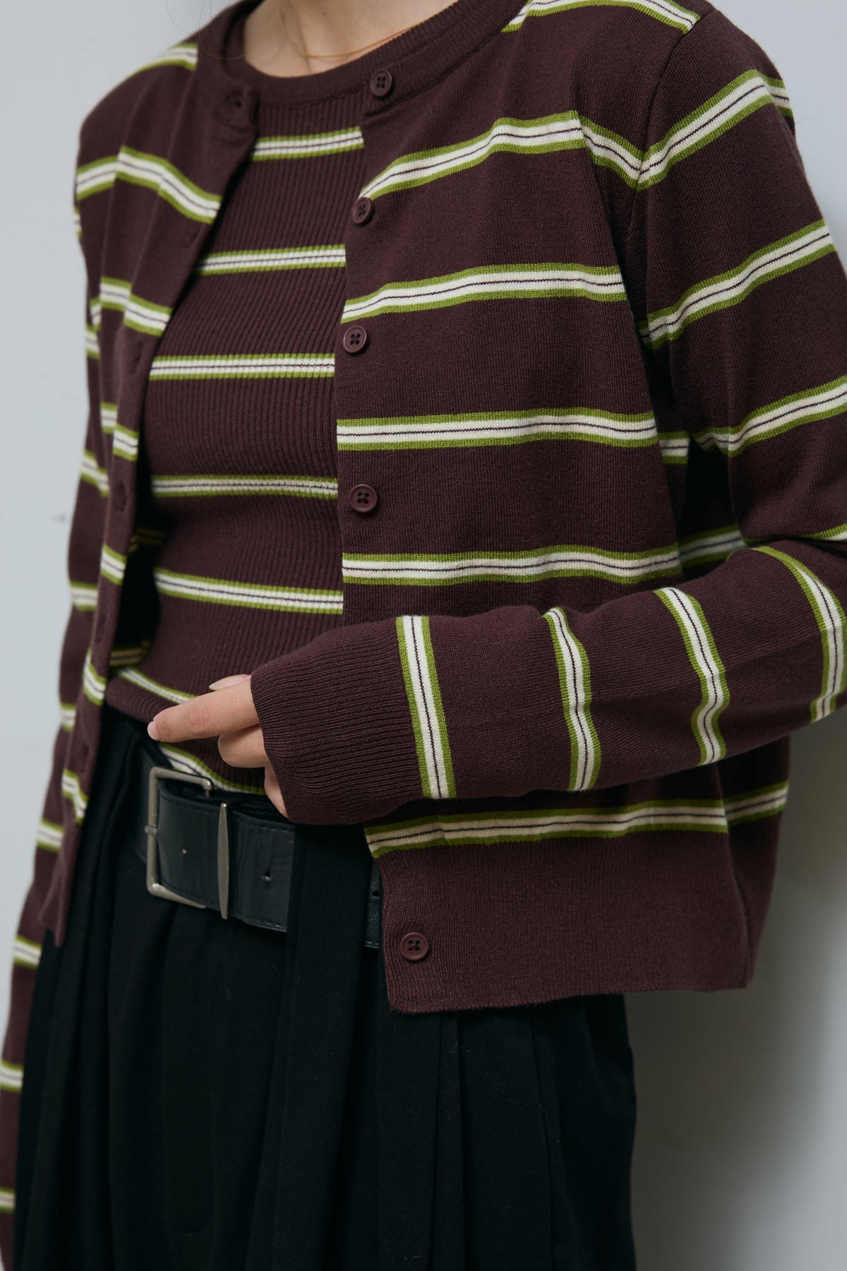 [予約/SET]ボーダーバックオープン2wayPO+ボーダーカーディガン+フェイクレザー太ベルト付きタックデザインパンツ(3set)