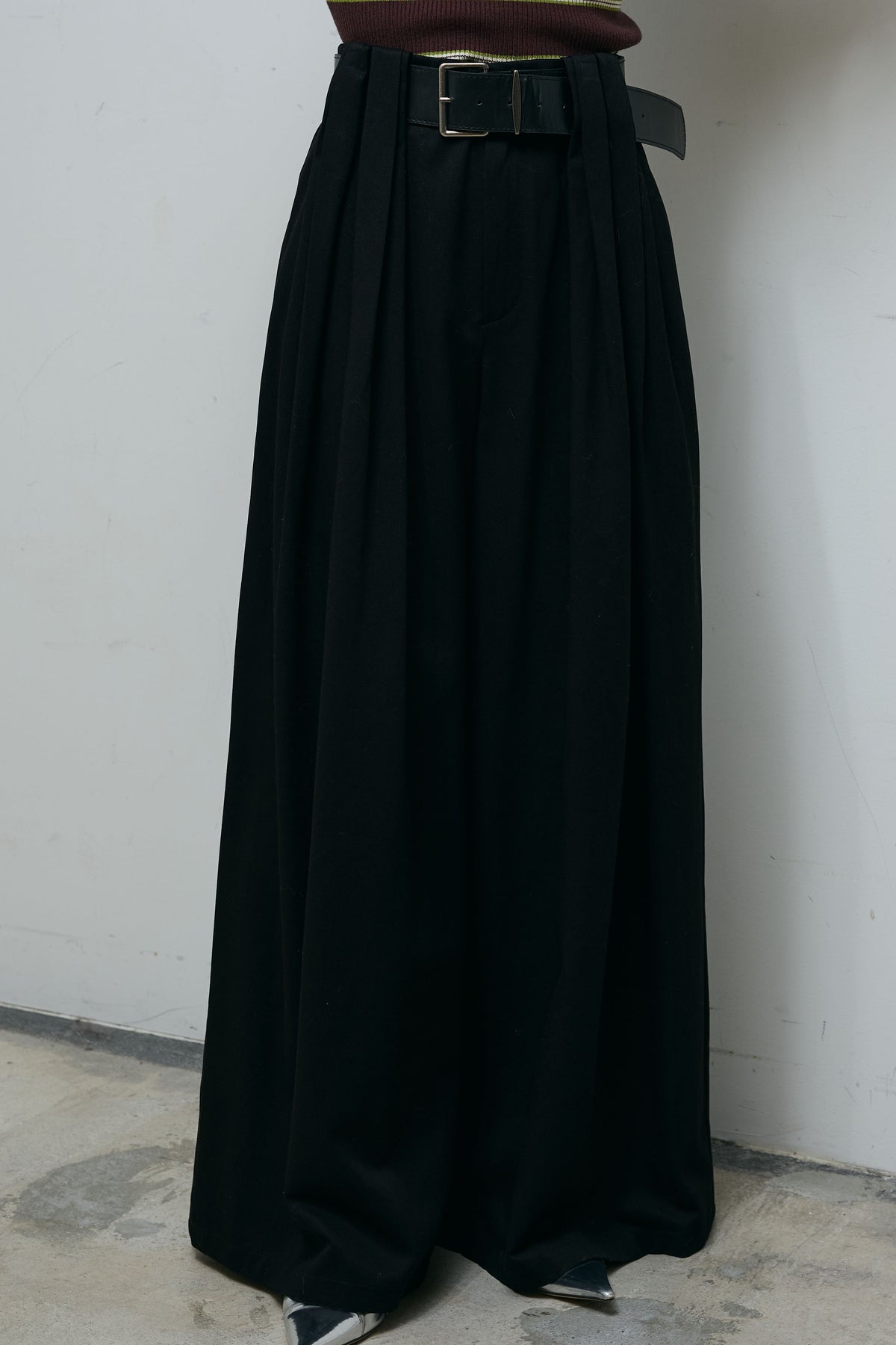 [予約]フェイクレザー太ベルト付きタックデザインパンツ