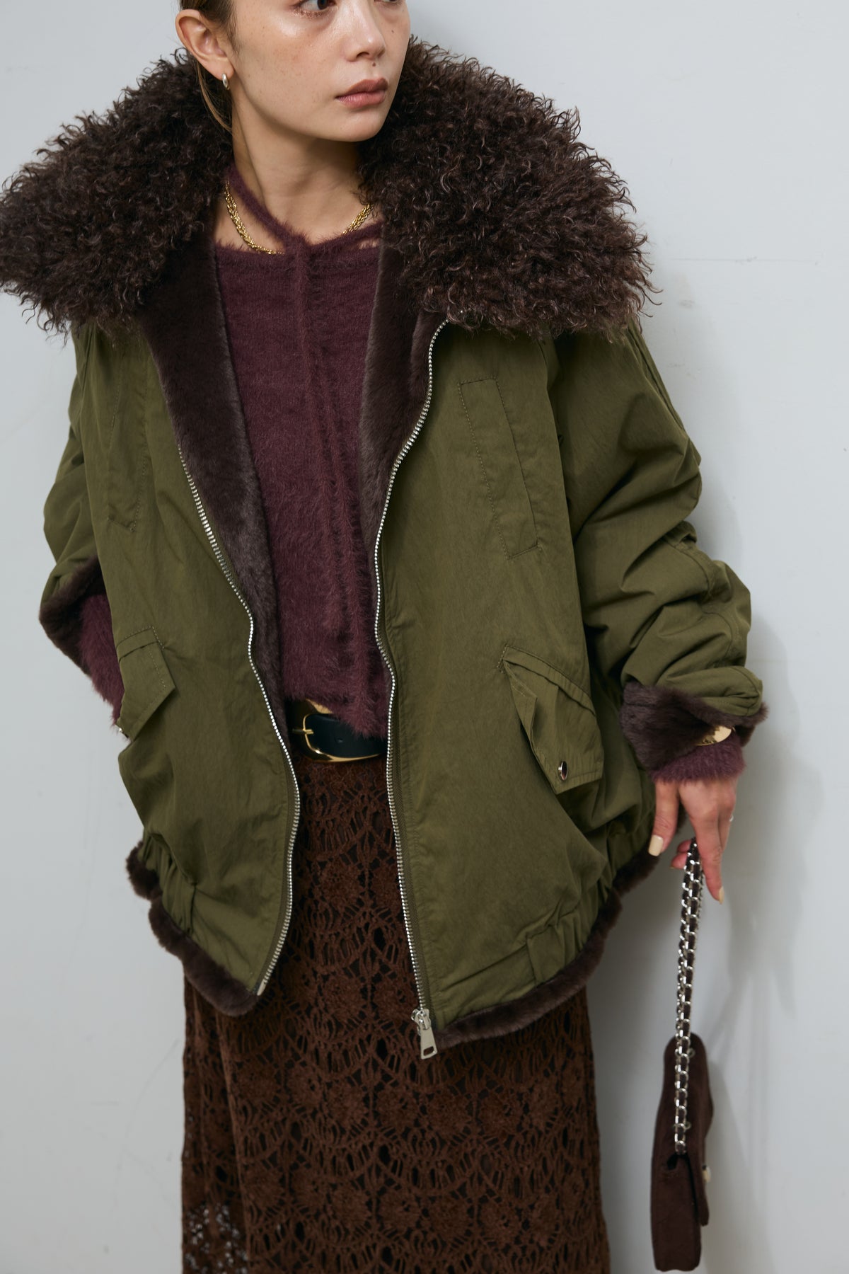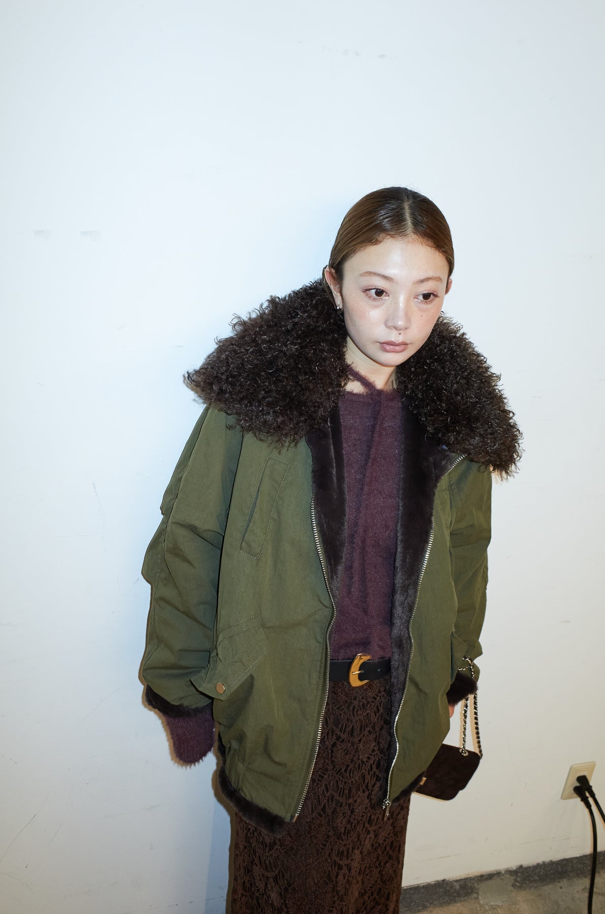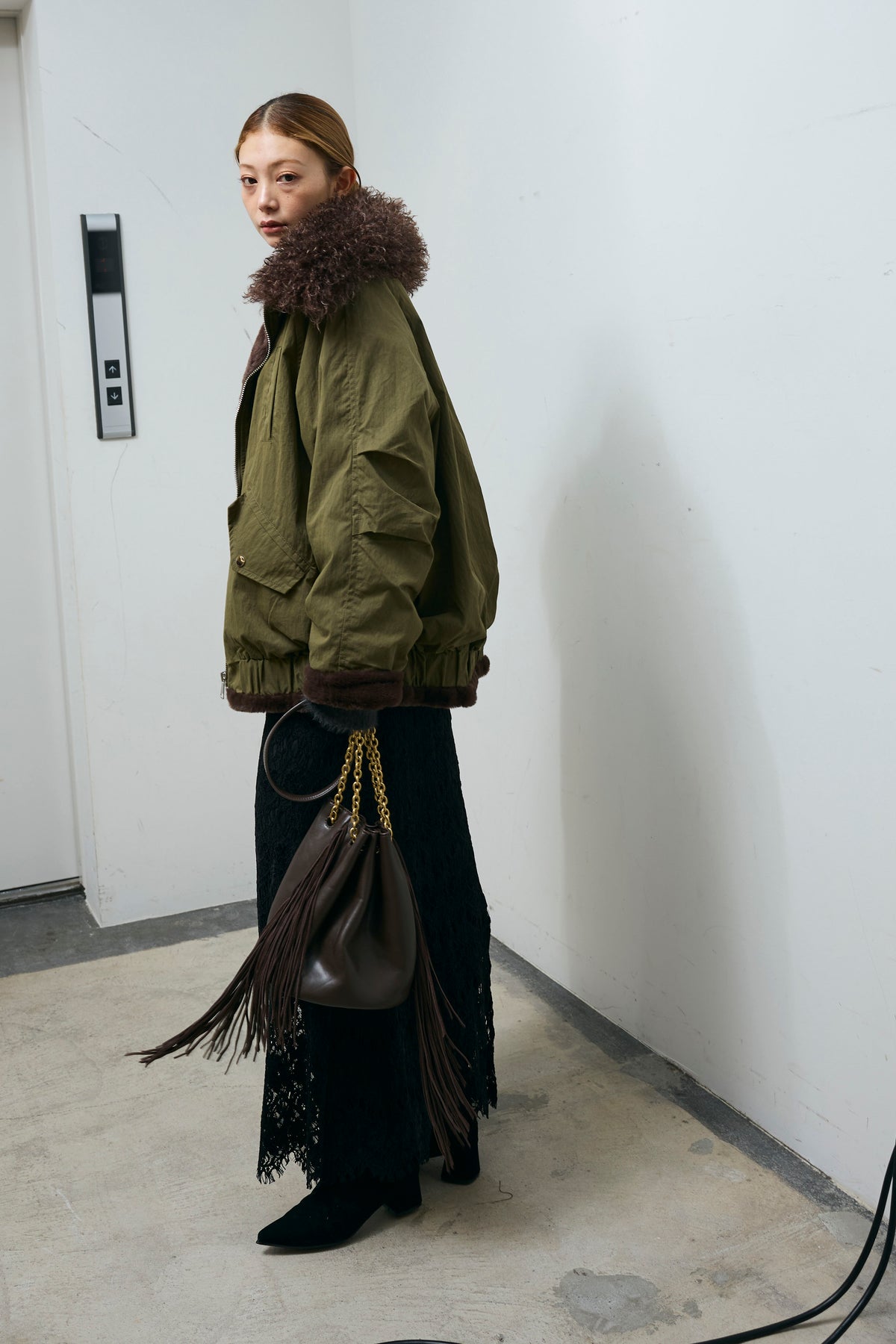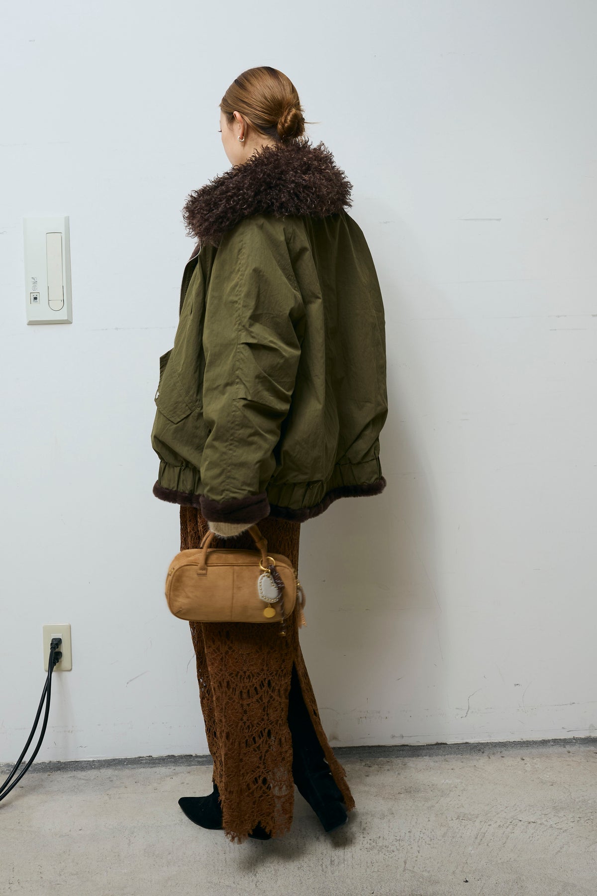 [予約/SET]ボア襟ジップブルゾン+レース刺繍ロングスカート(2set)