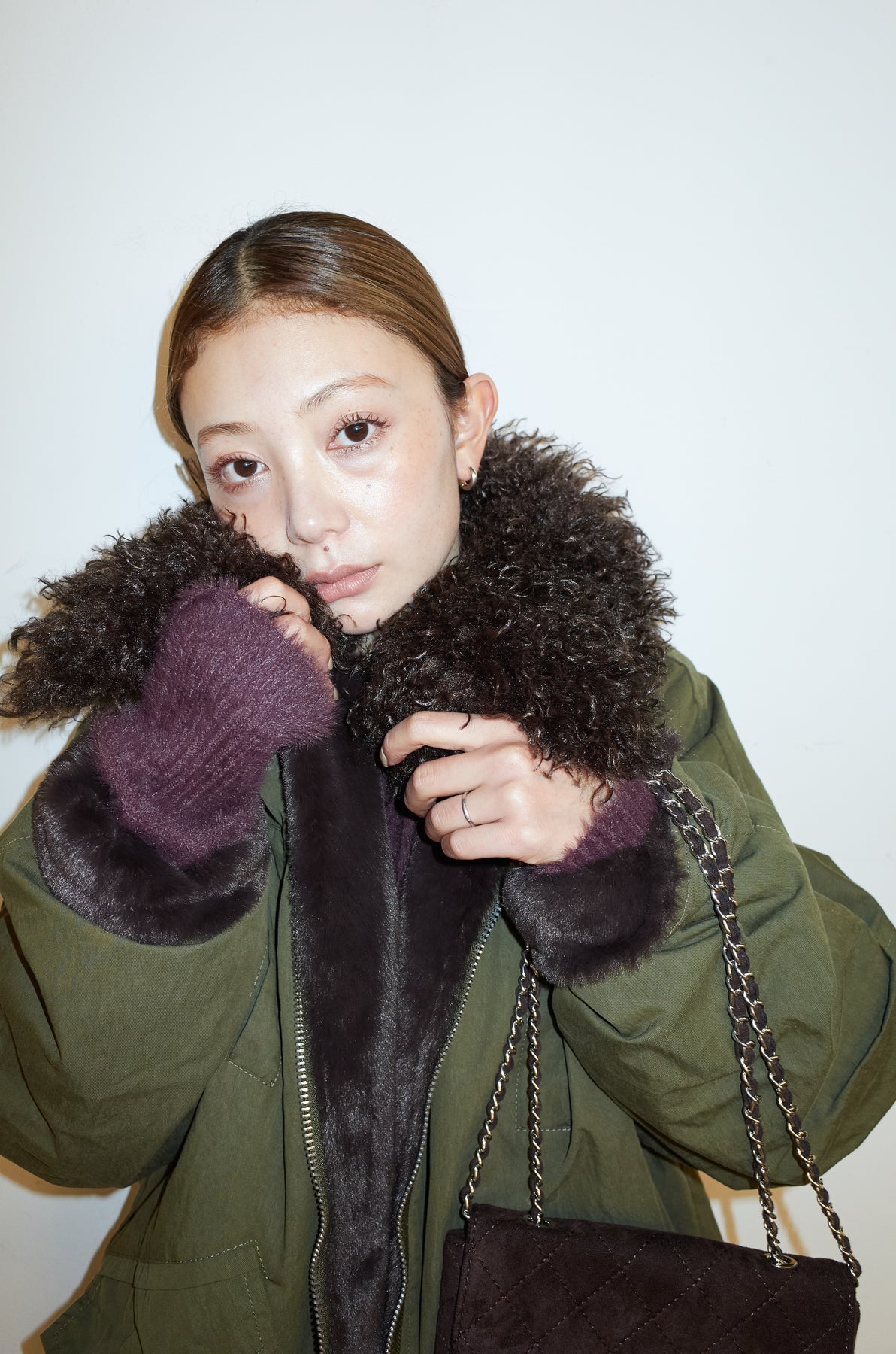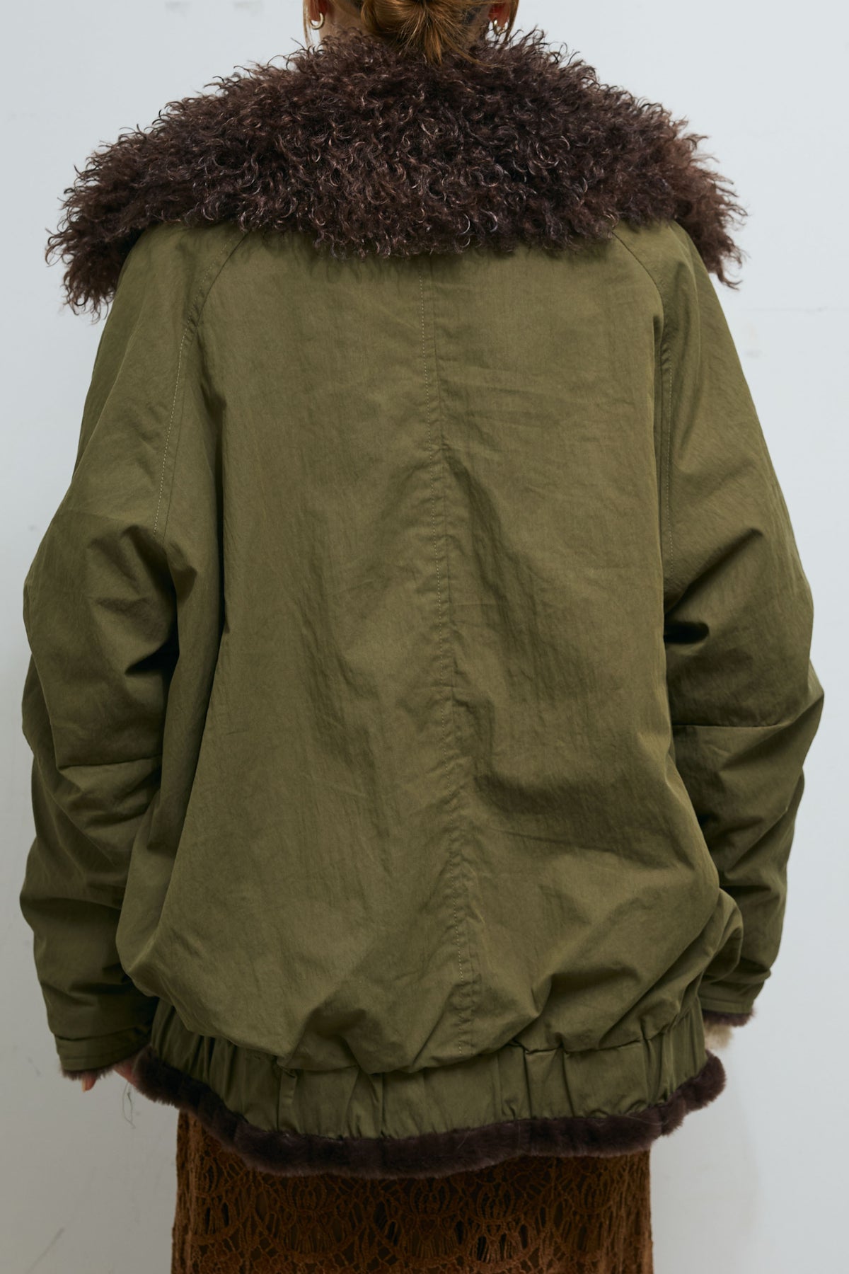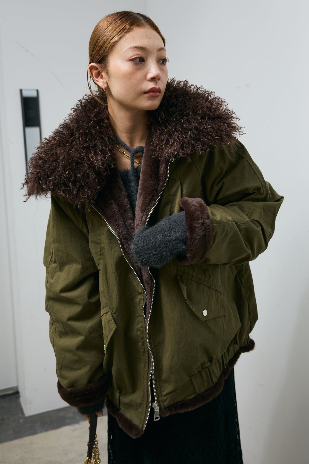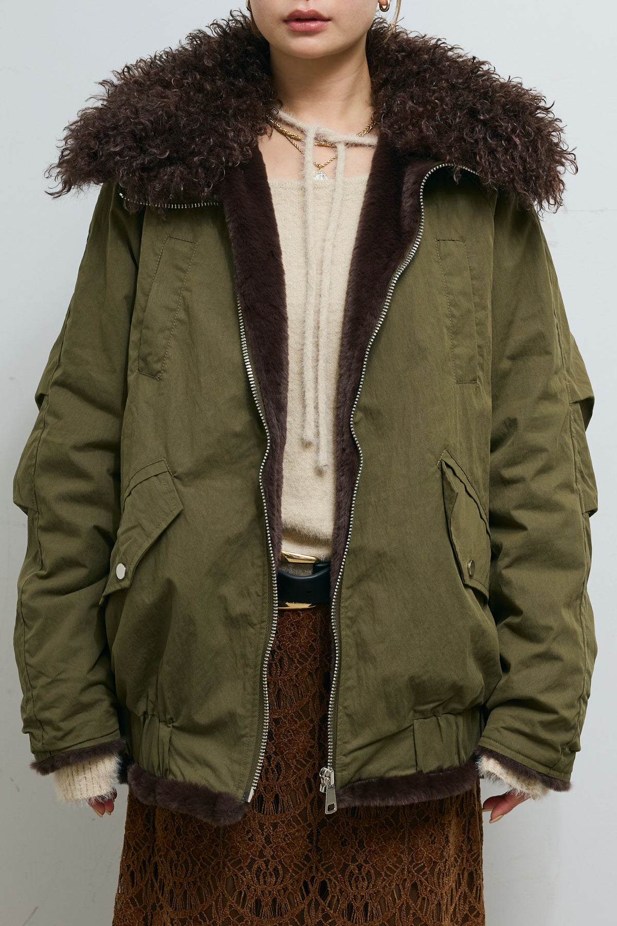 [予約/SET]ボア襟ジップブルゾン+レース刺繍ロングスカート(2set)