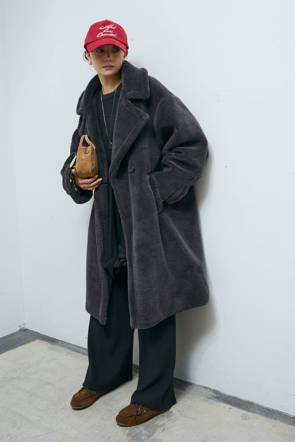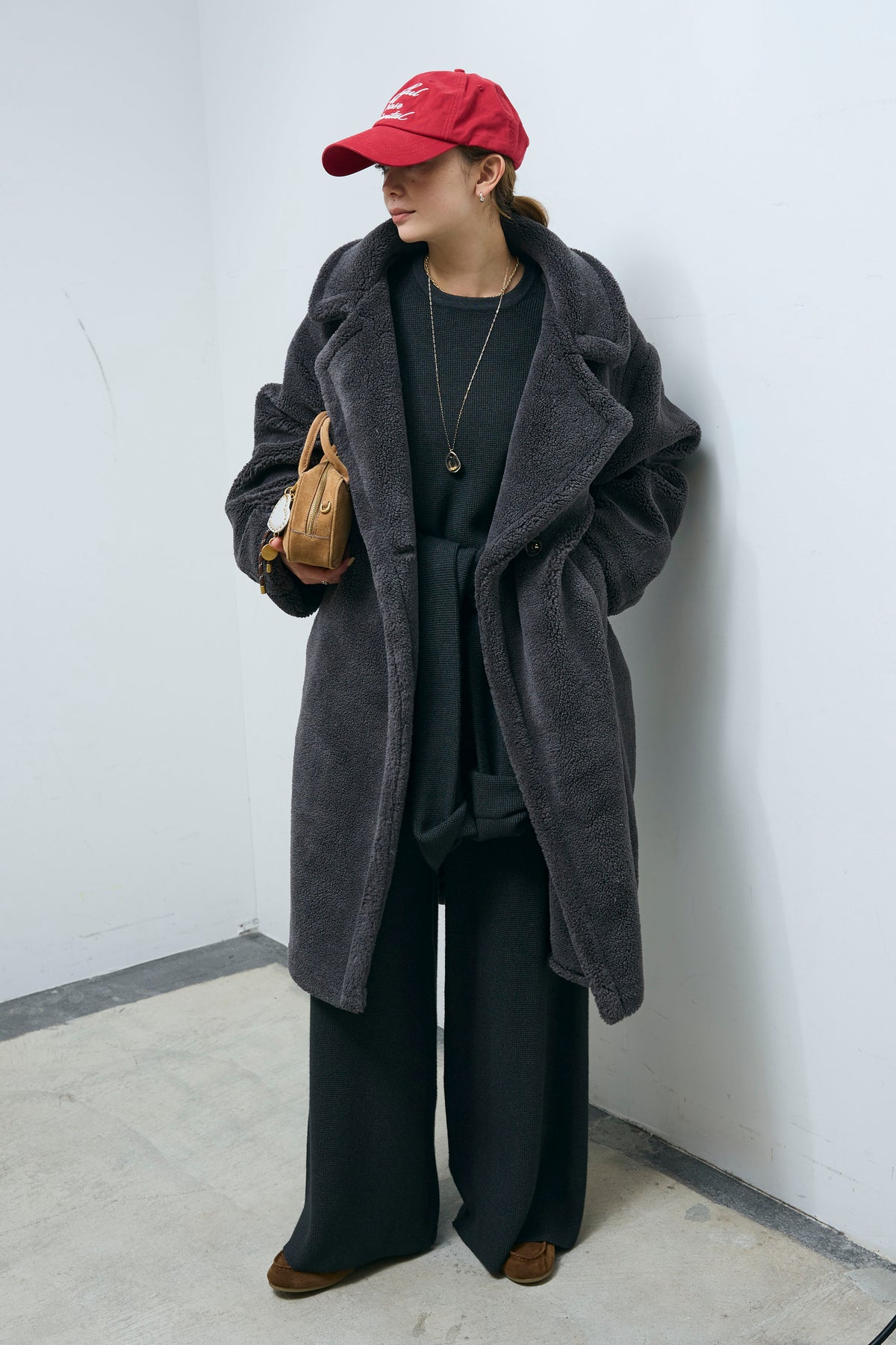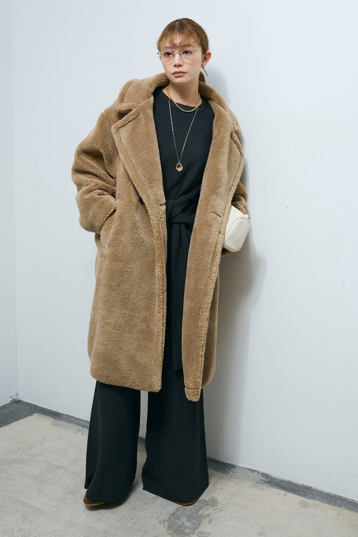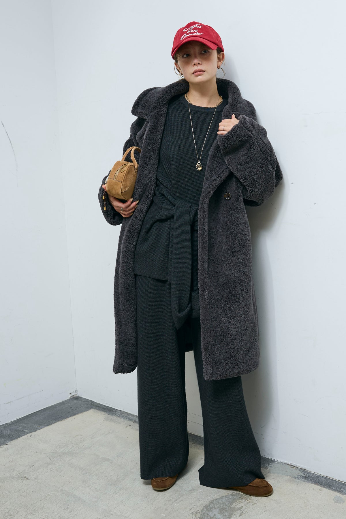 [予約/SET]ウエストレイヤードニットセットアップ+テディロングコート(2set)
