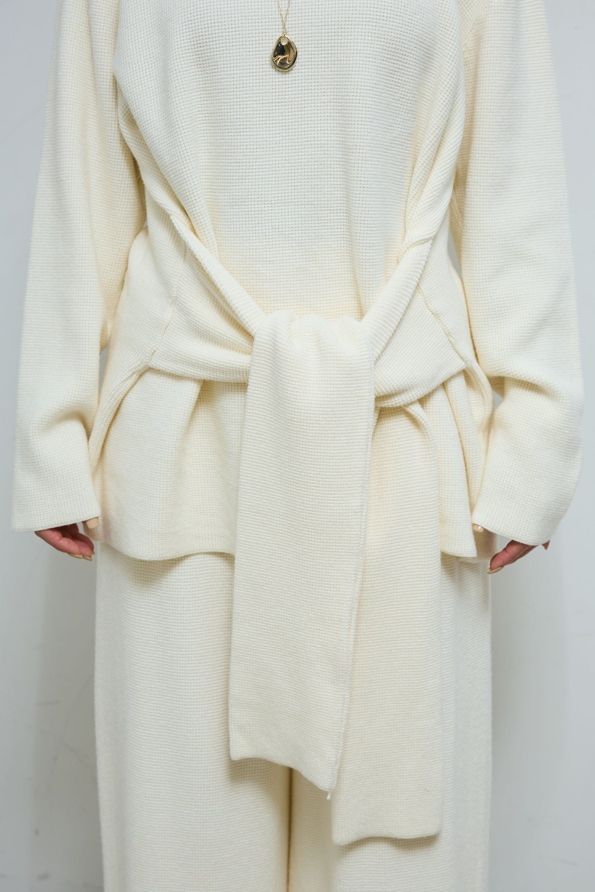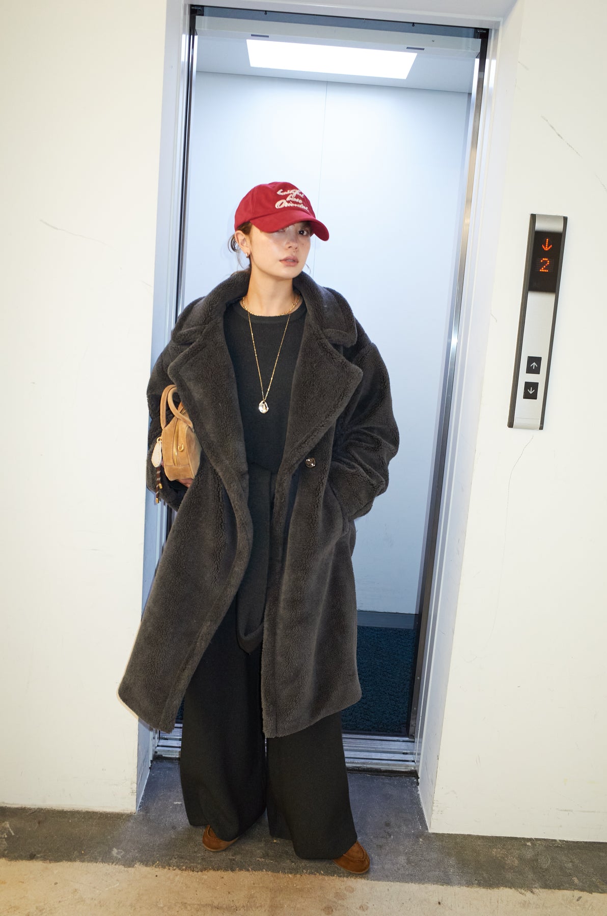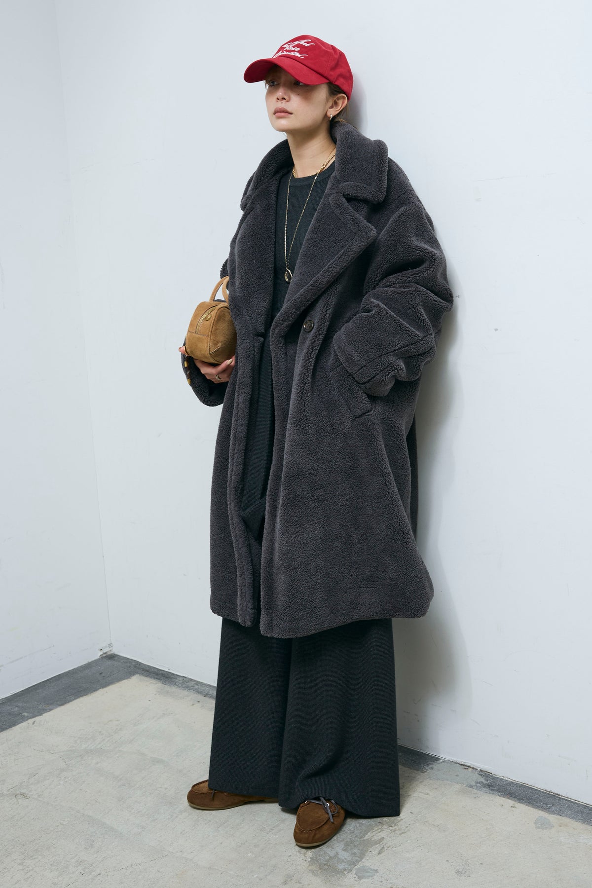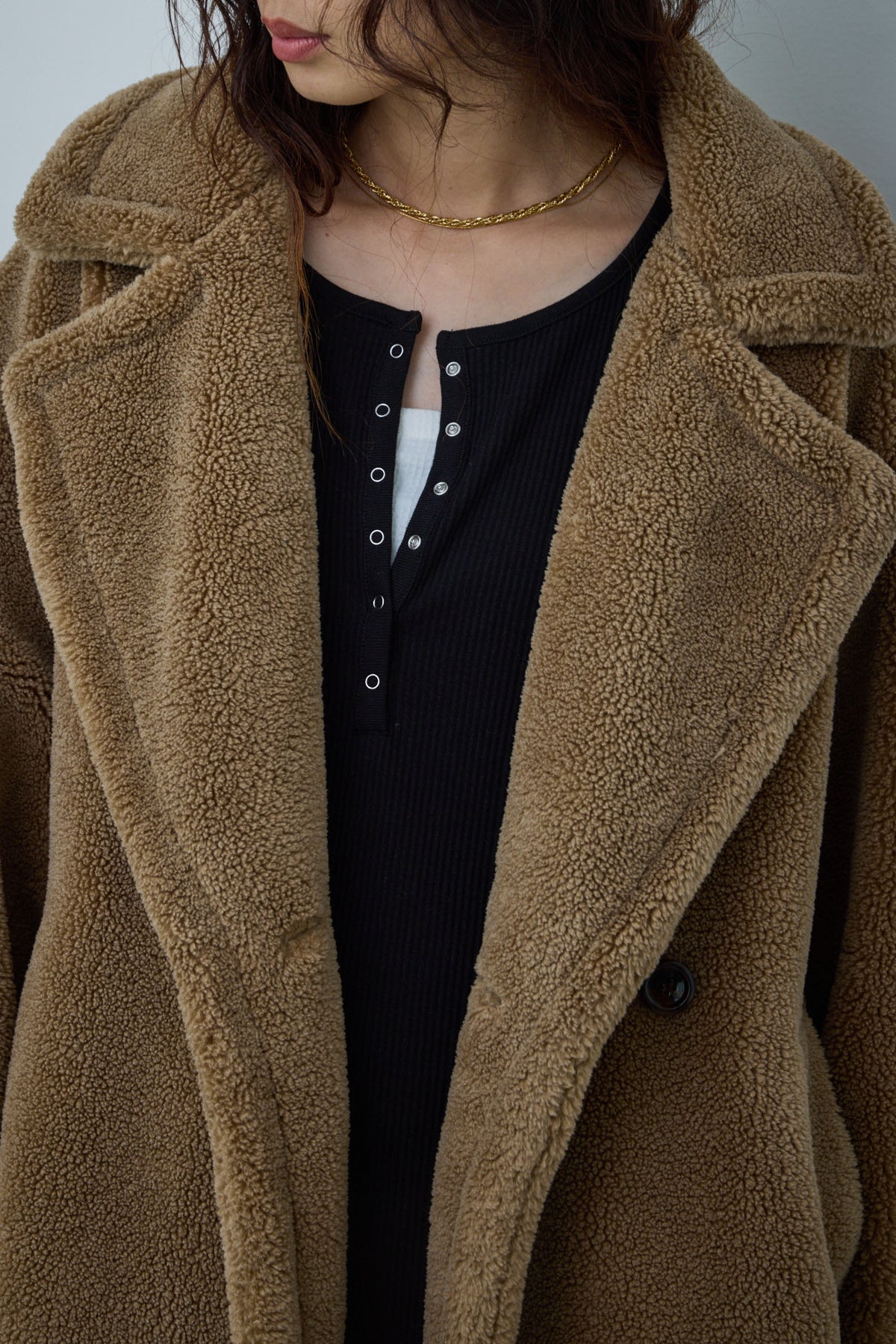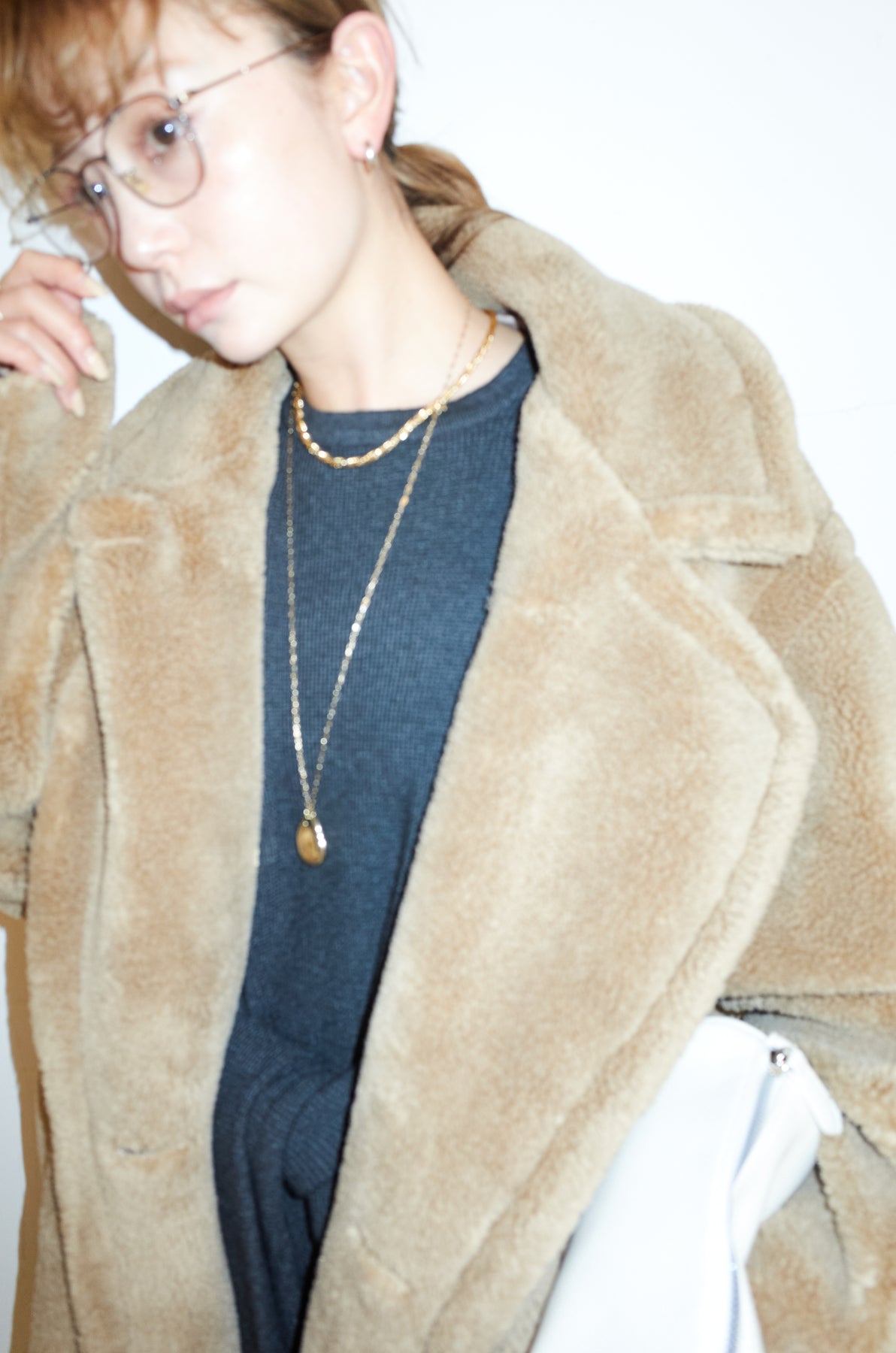 [予約/SET]ウエストレイヤードニットセットアップ+テディロングコート(2set)