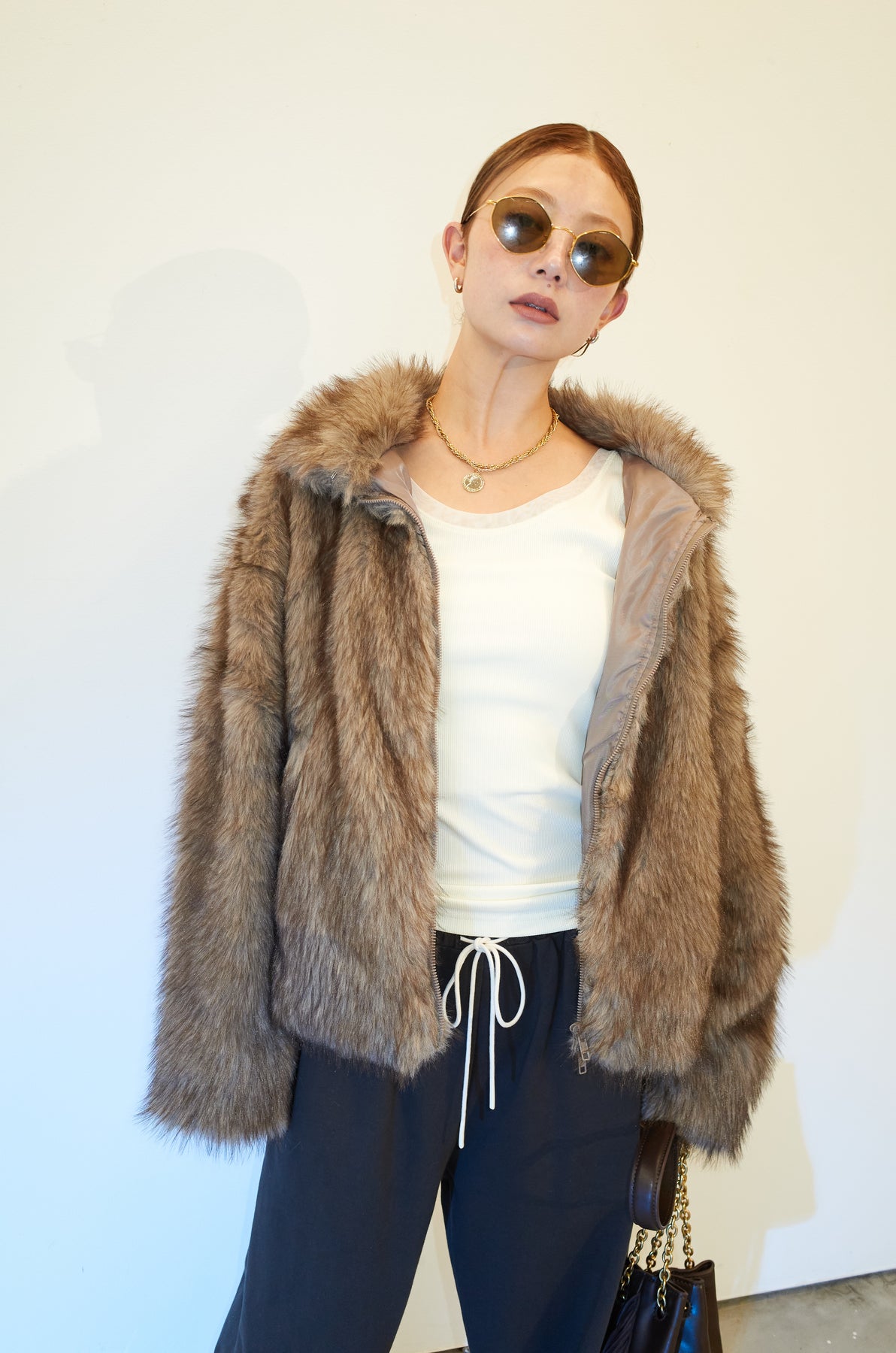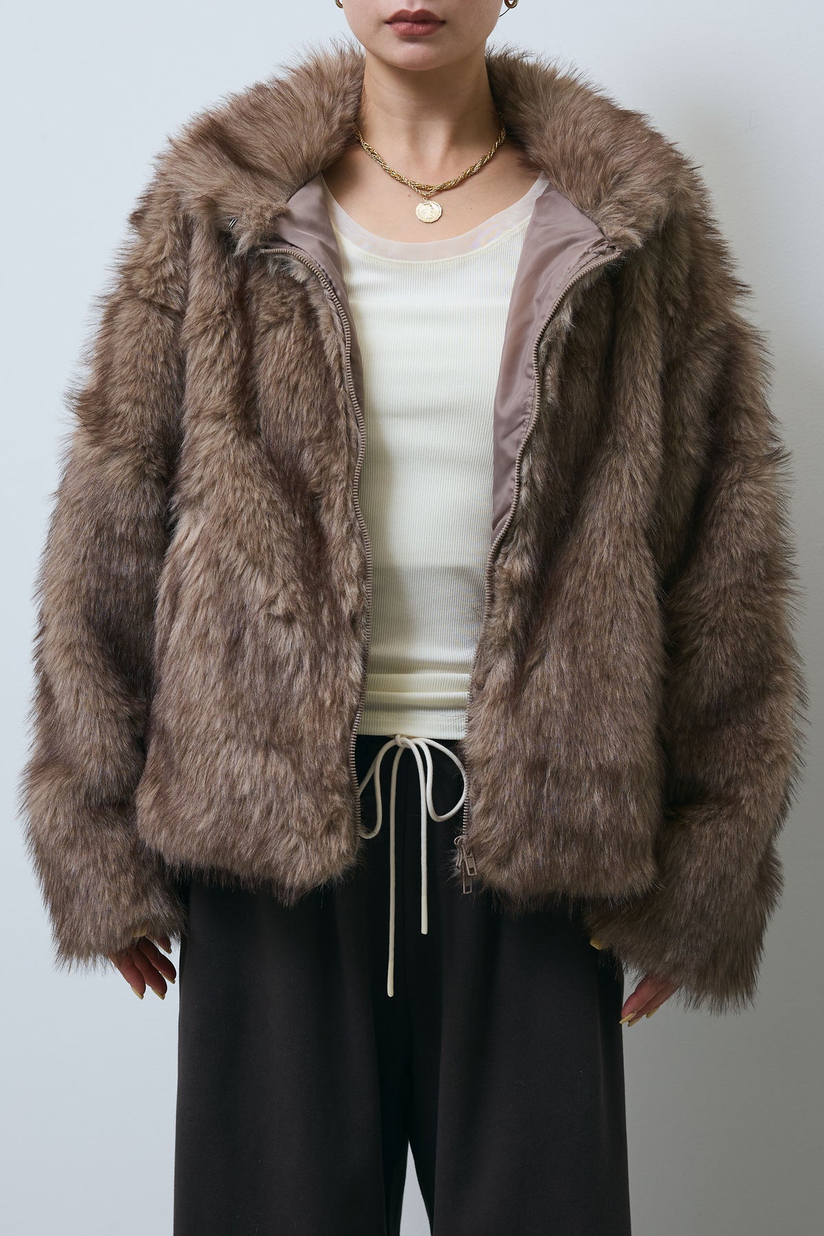 ふんわりとした毛足が魅力のエコファーミディブルゾン。軽やかな着心地ながら、しっかりとした保温性でこれからの季節にぴったりです。程よいボリューム感とコンパクトな丈感のバランスが絶妙で、ボトムを選ばず着回し自在。ジップを閉めても開けてもサマになる、存在感のある一枚です。
