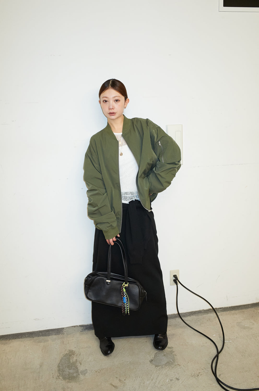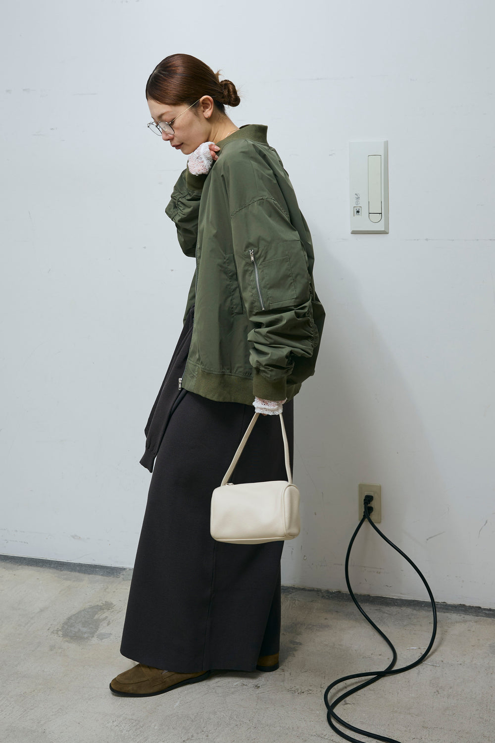 [予約/SET]シャーリングオーバーサイズライトMA1+フェイクレイヤードニットスカート(2set)
