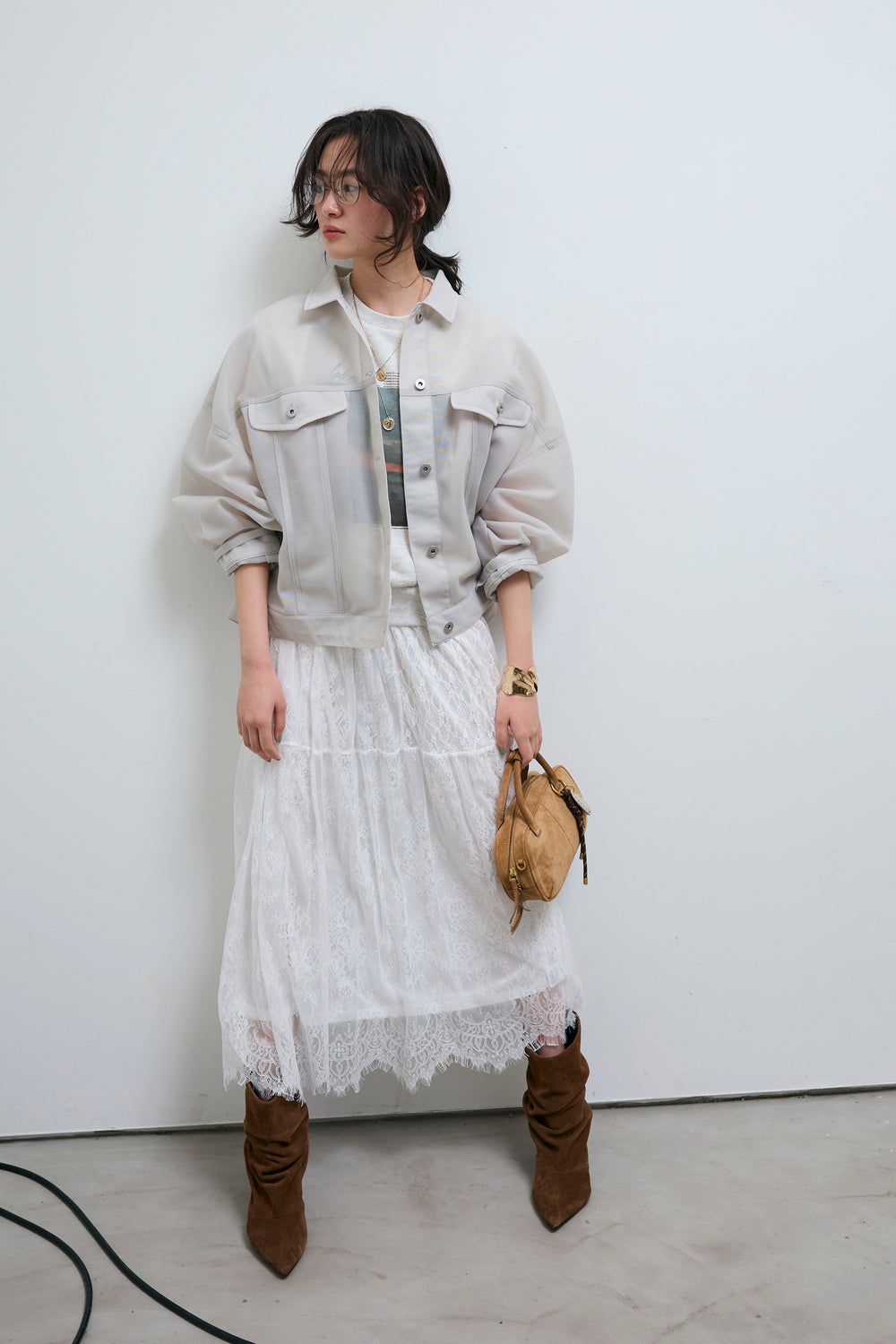 [予約/SET]シアーダンボールGジャン+レース 切替ロングスカート(2set)