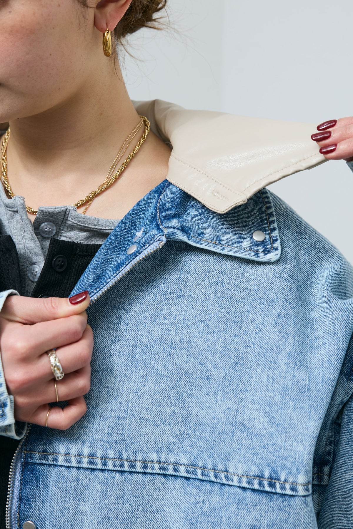 [予約]フェイクレザー2wayカラーデニムブルゾン