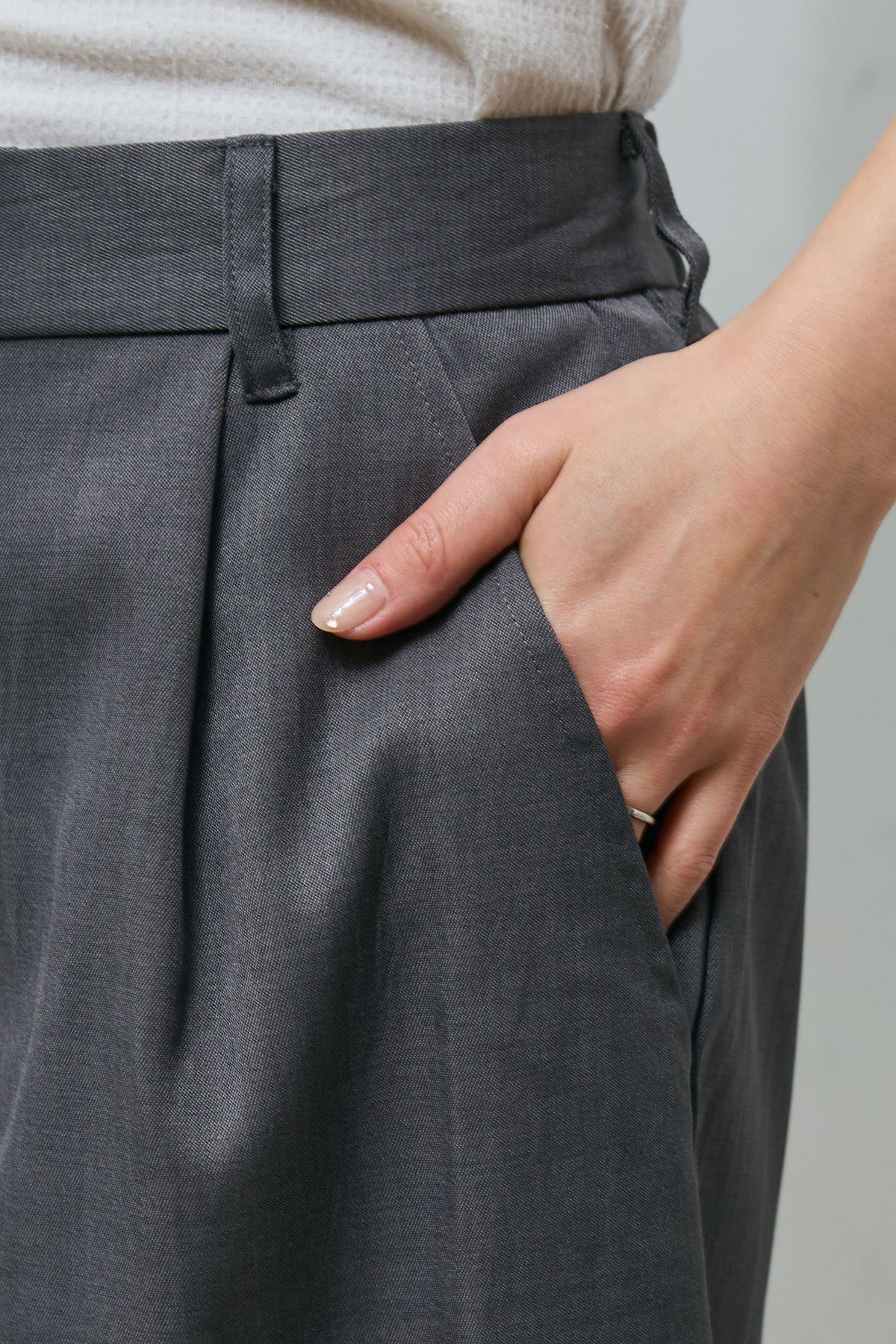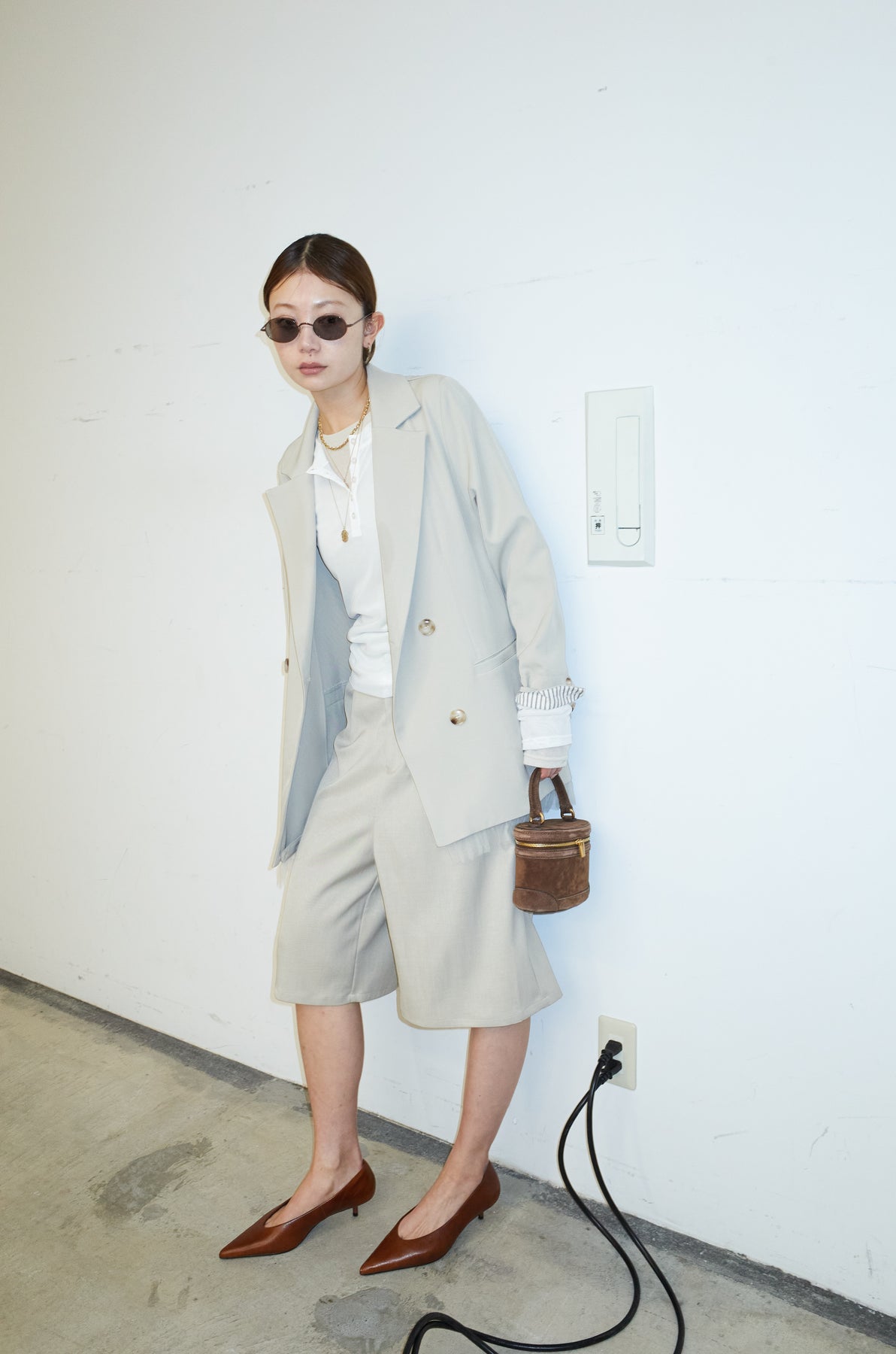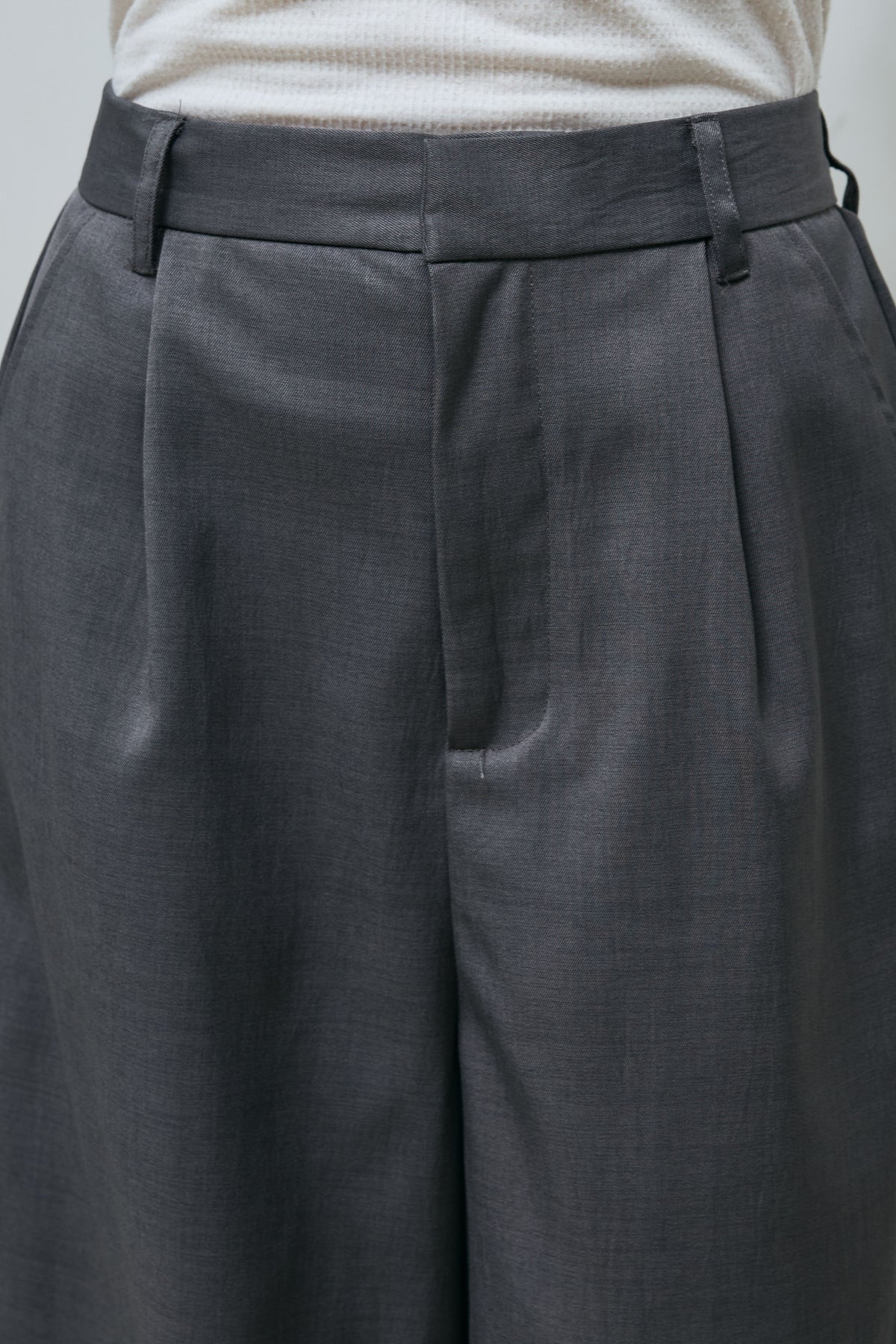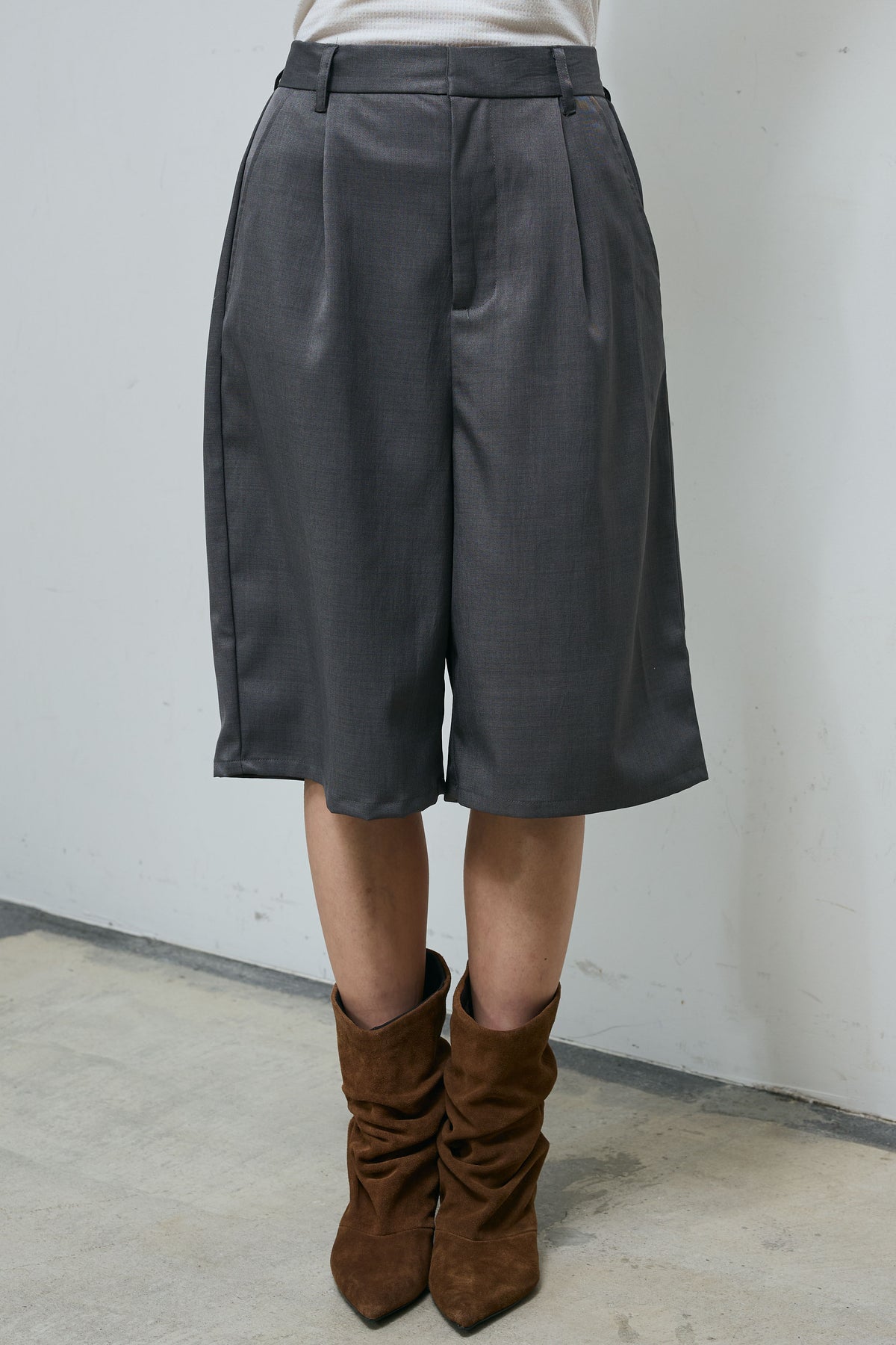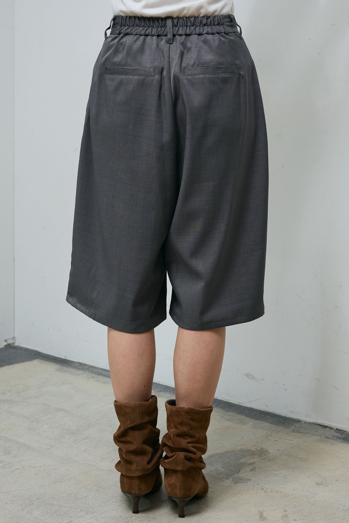 ハーフパンツの丈感で、快適さとスタイリッシュさを両立させたデザイン。高めのウエストラインとタックのディテールが、シルエットにエレガントさを与えます。TRツイル素材を使用し、通気性と軽さを兼ね備え、季節を問わず使いやすいアイテム。シンプルでありながらも、どんなコーディネートにも合わせやすく、カジュアルにもきれいめにも対応可能。合わせやすいデザインで、日常使いにぴったりなアイテムです。