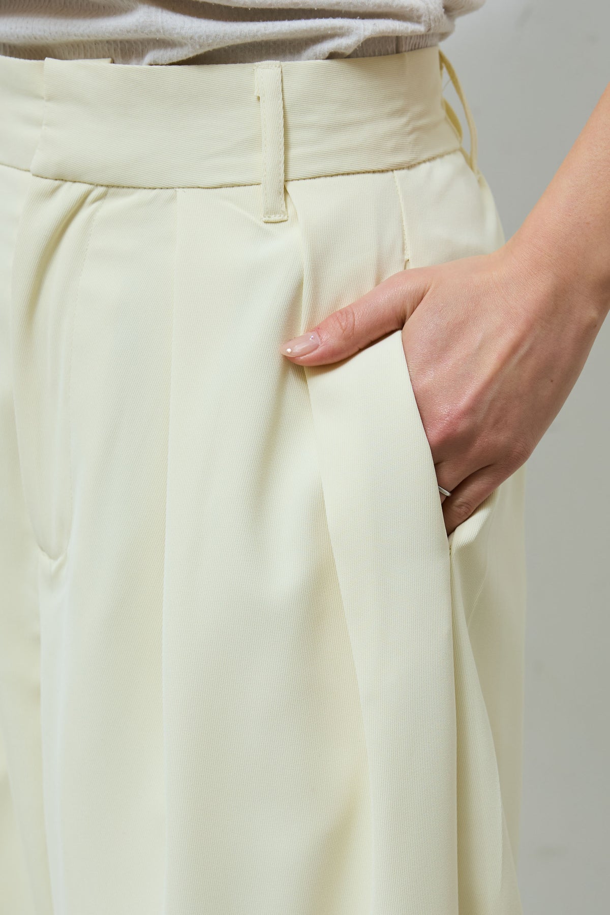 この「とろみタックパンツ」は、柔らかな素材感が特徴的で、リラックスしたシルエットが魅力的なアイテムです。ウエスト部分にタックが施されており、程よいゆとりを持たせたストレートラインが動きやすさを提供します。着心地も軽やかで、長時間の着用でも快適に過ごせるため、デイリー使いに最適です。