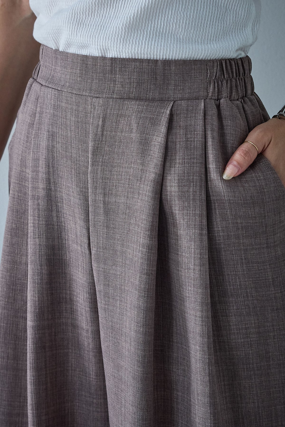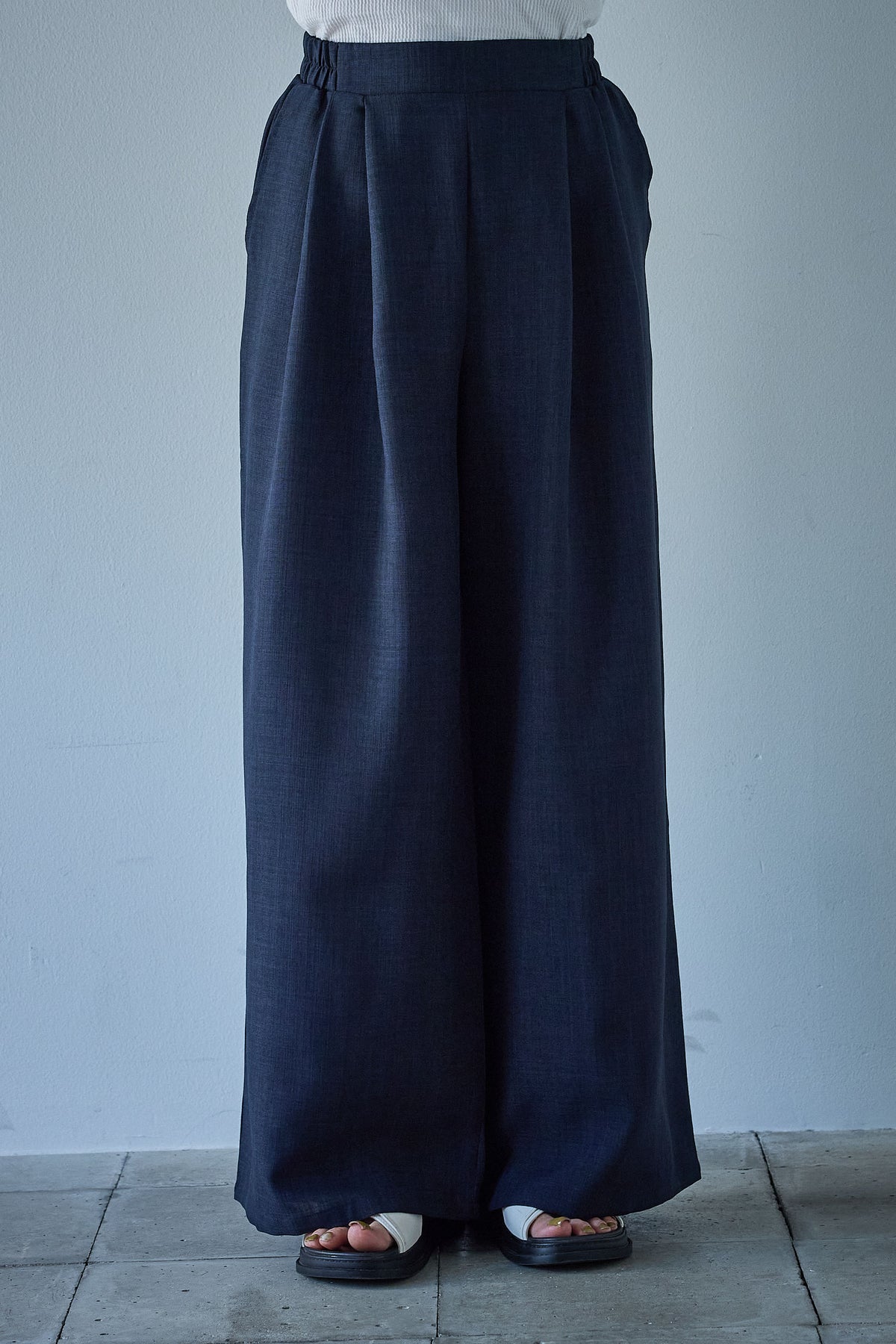 サマースラブツイードタック入りワイドパンツは、サマーツイード素材で仕立てられた軽やかで涼しげなワイドパンツです。タックデザインが施され、立体的なシルエットを生み出し、足元をすっきりと見せてくれます。シンプルながらも上品さを持ち合わせており、カジュアルにもきれいめにもコーディネートできる万能アイテムです。夏らしい軽やかさと、上品さを兼ね備えた一着です。