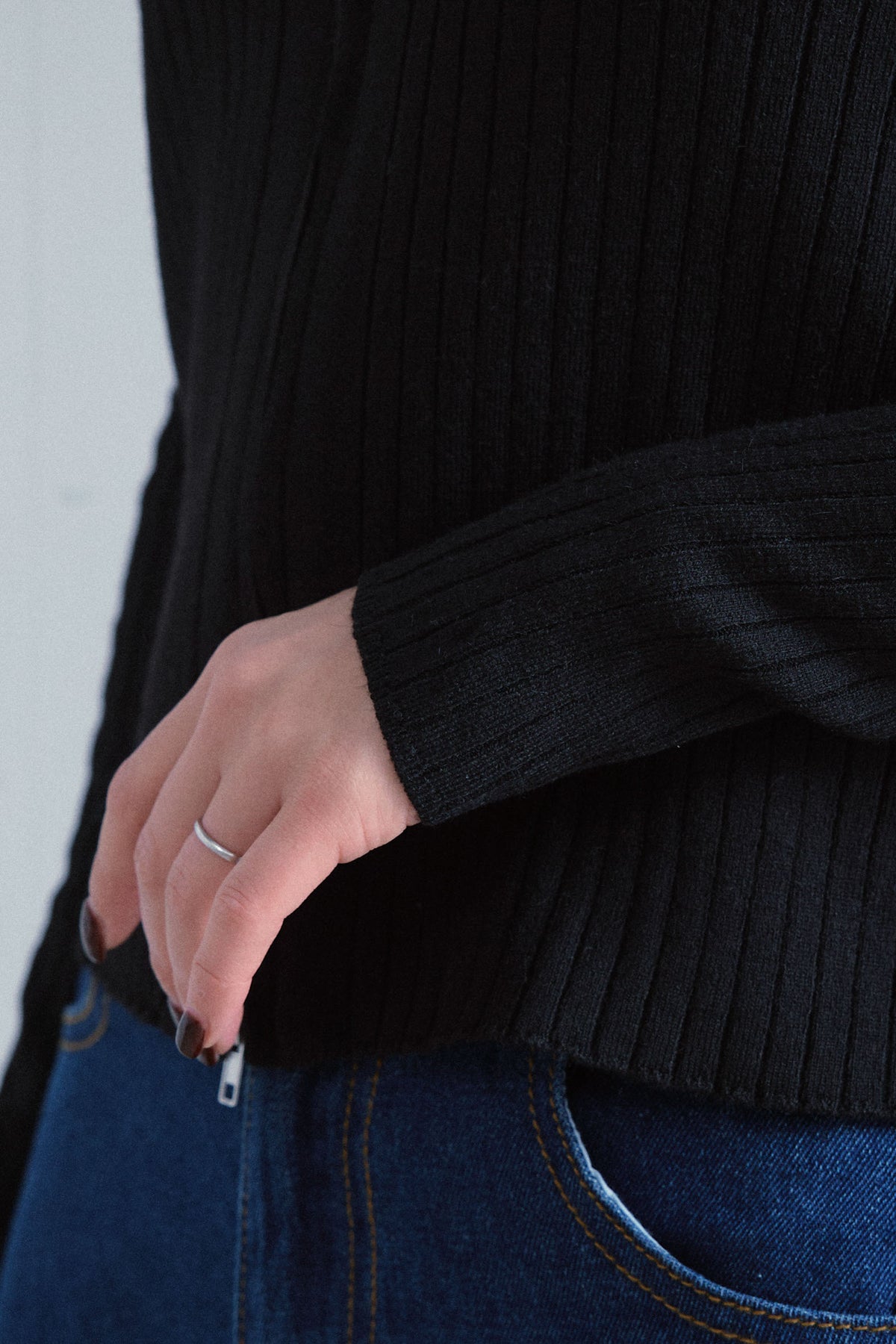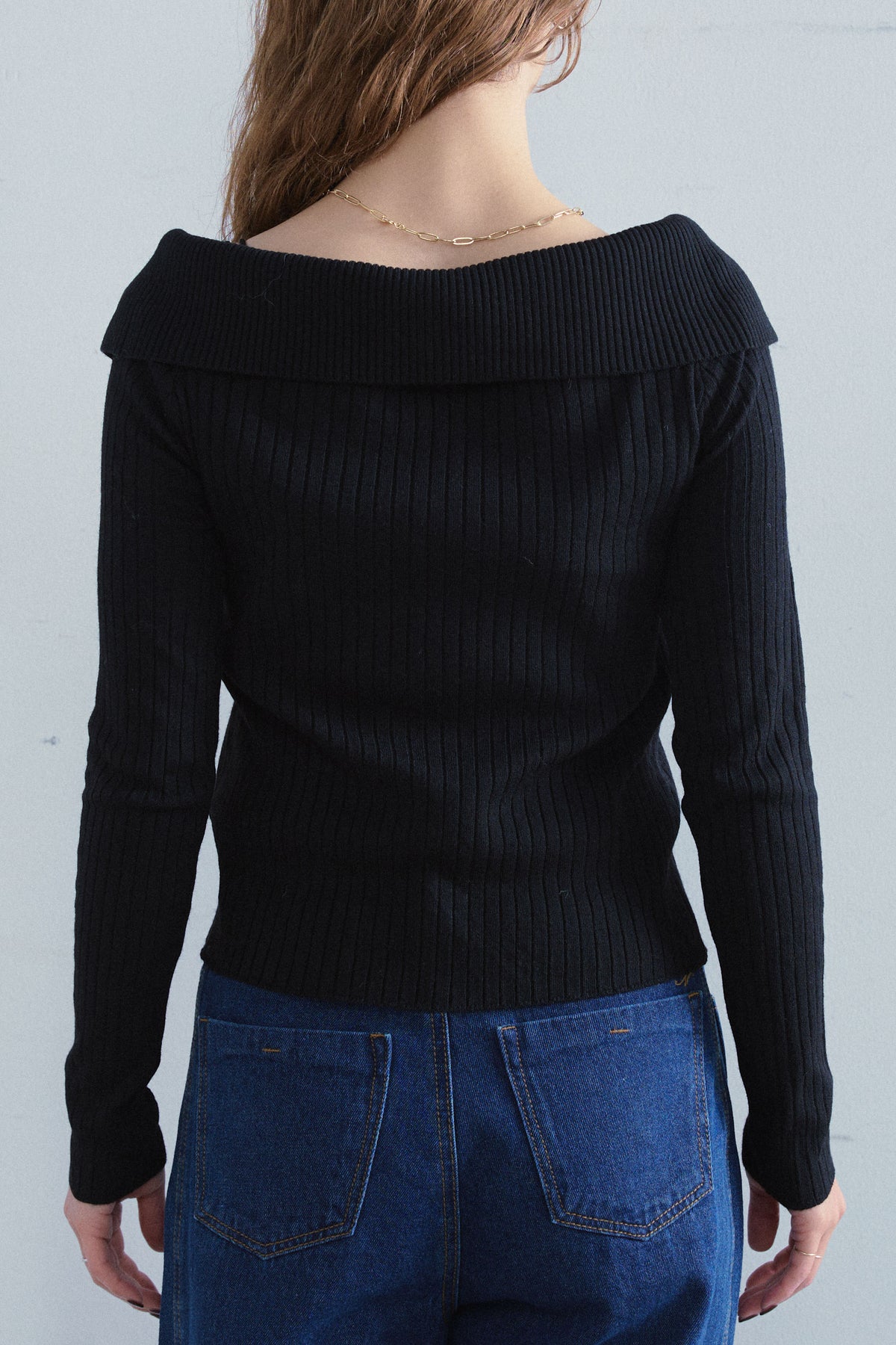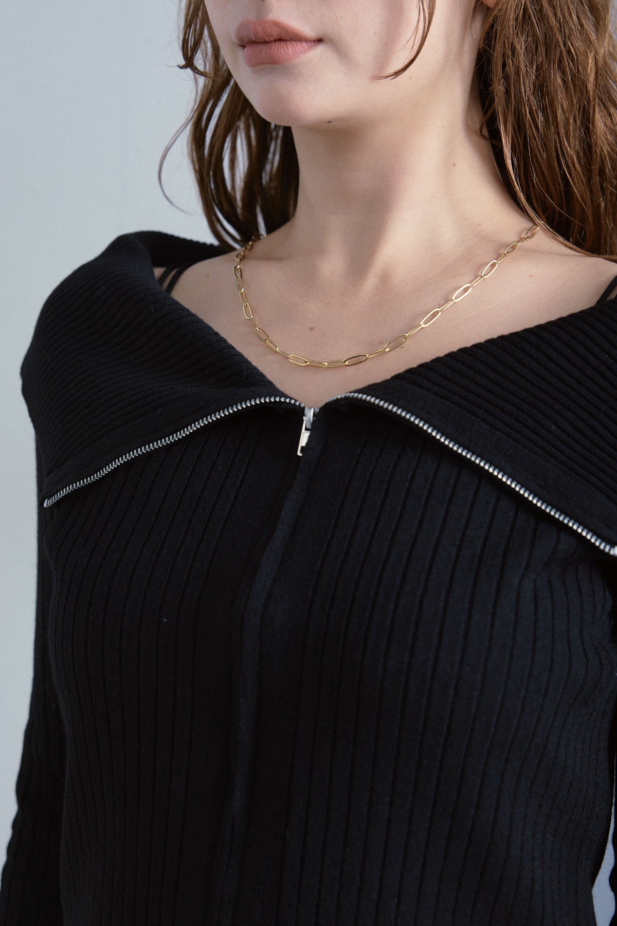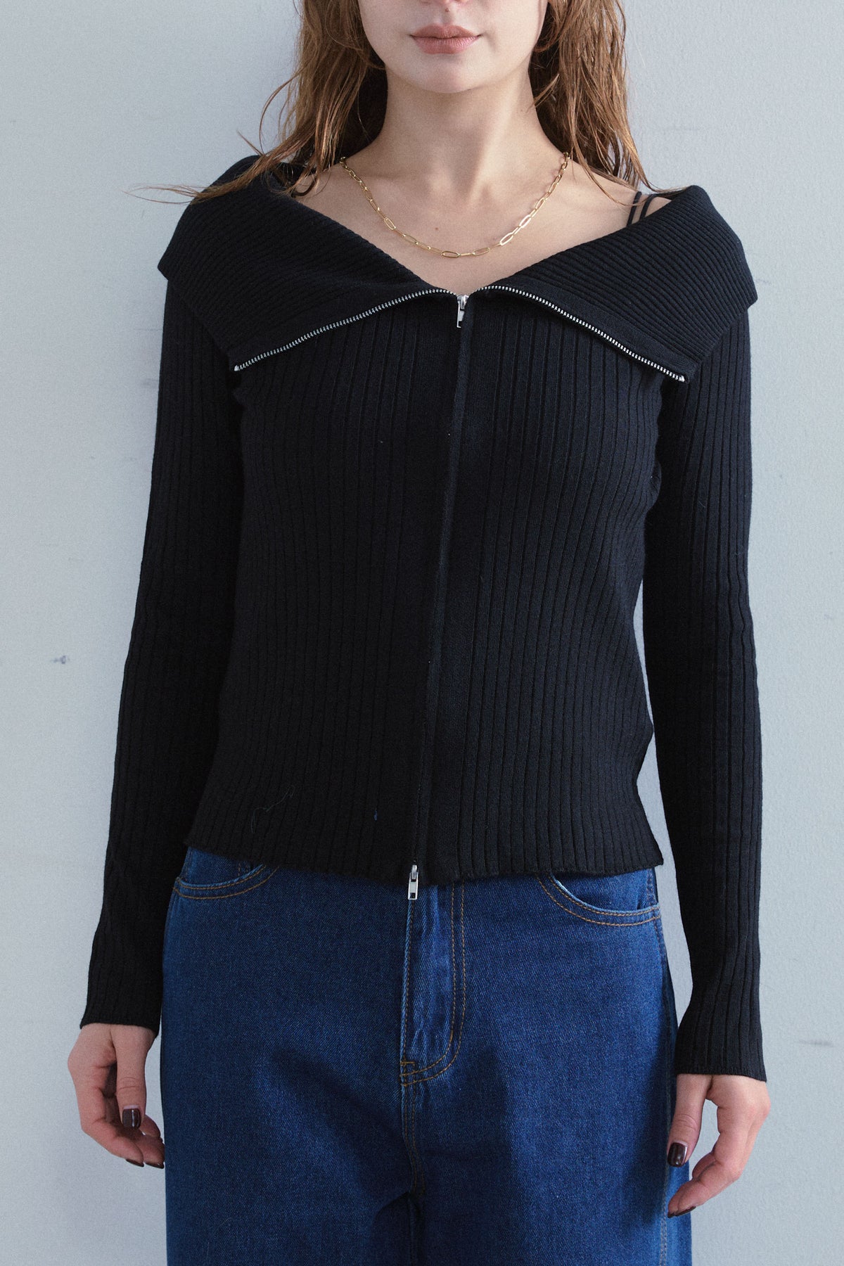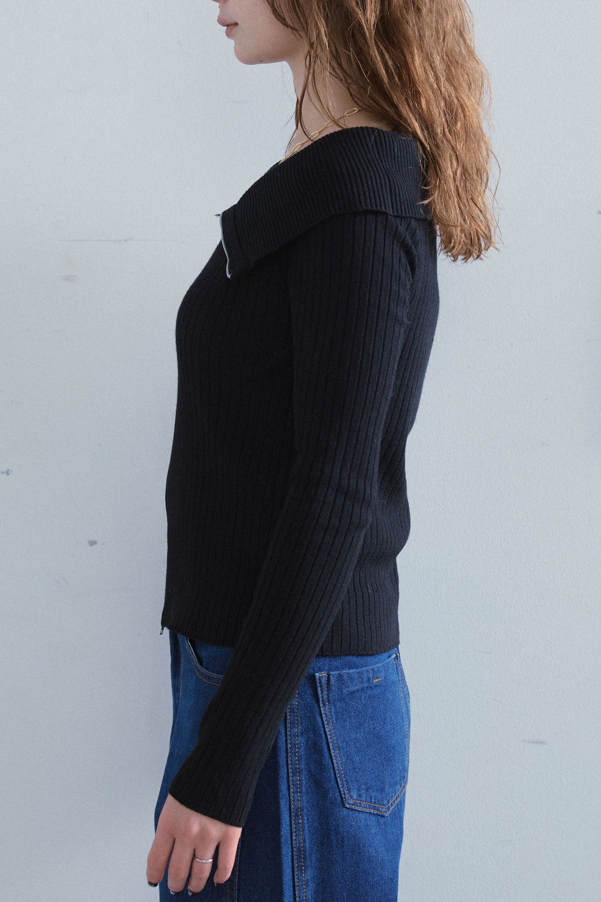 ◆ ダブルジップオフショルリブニット