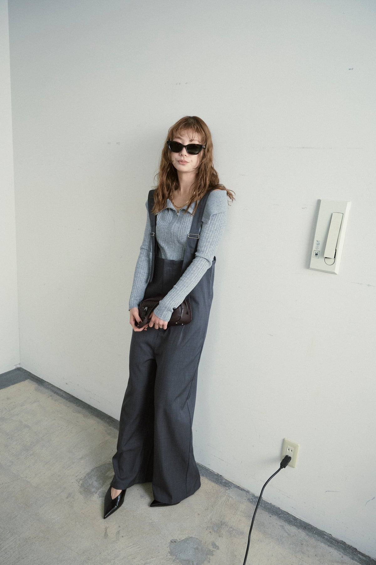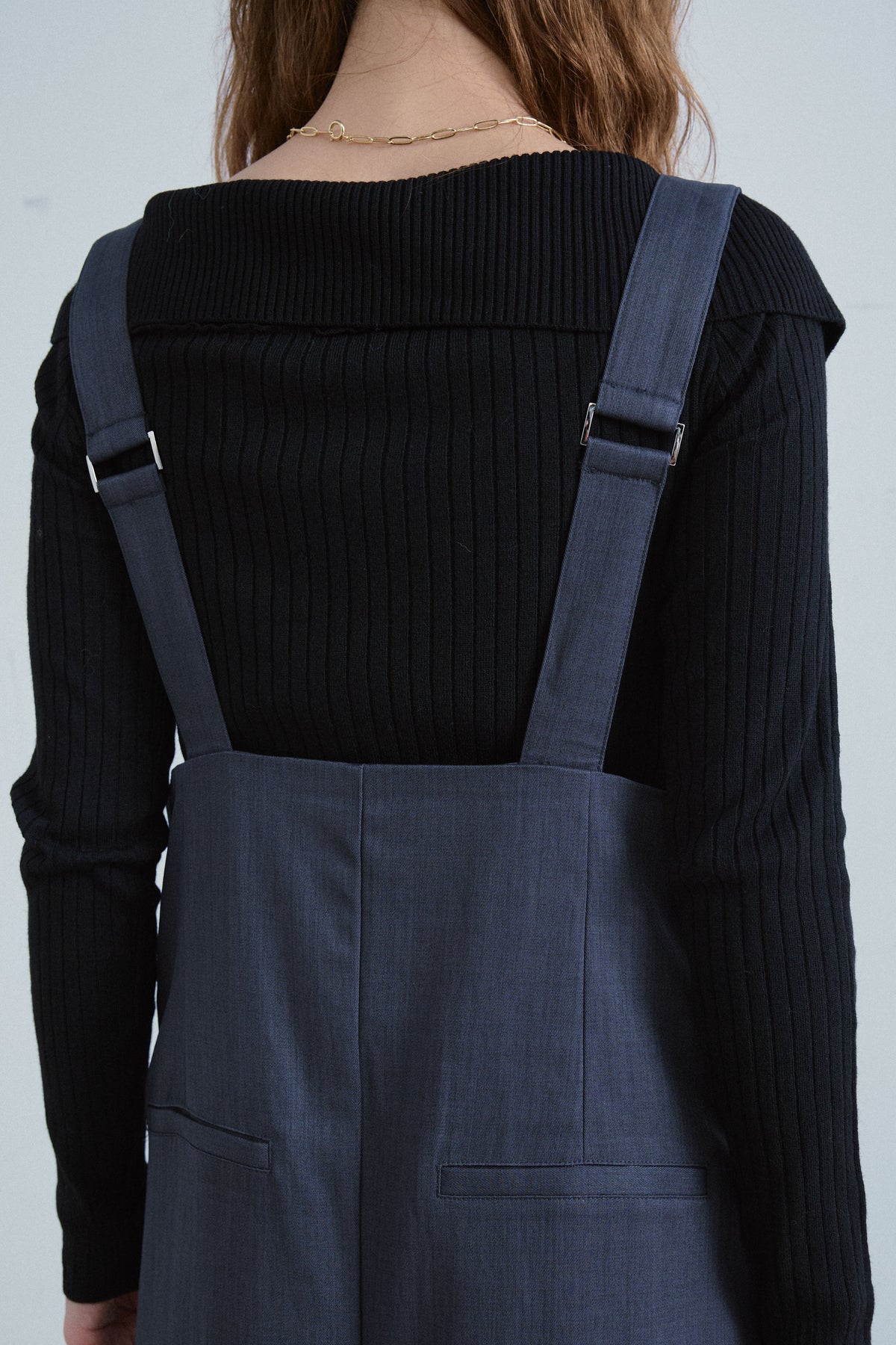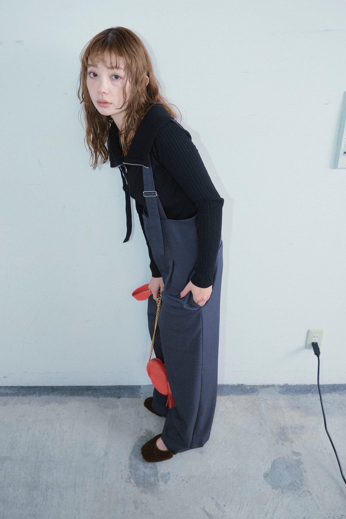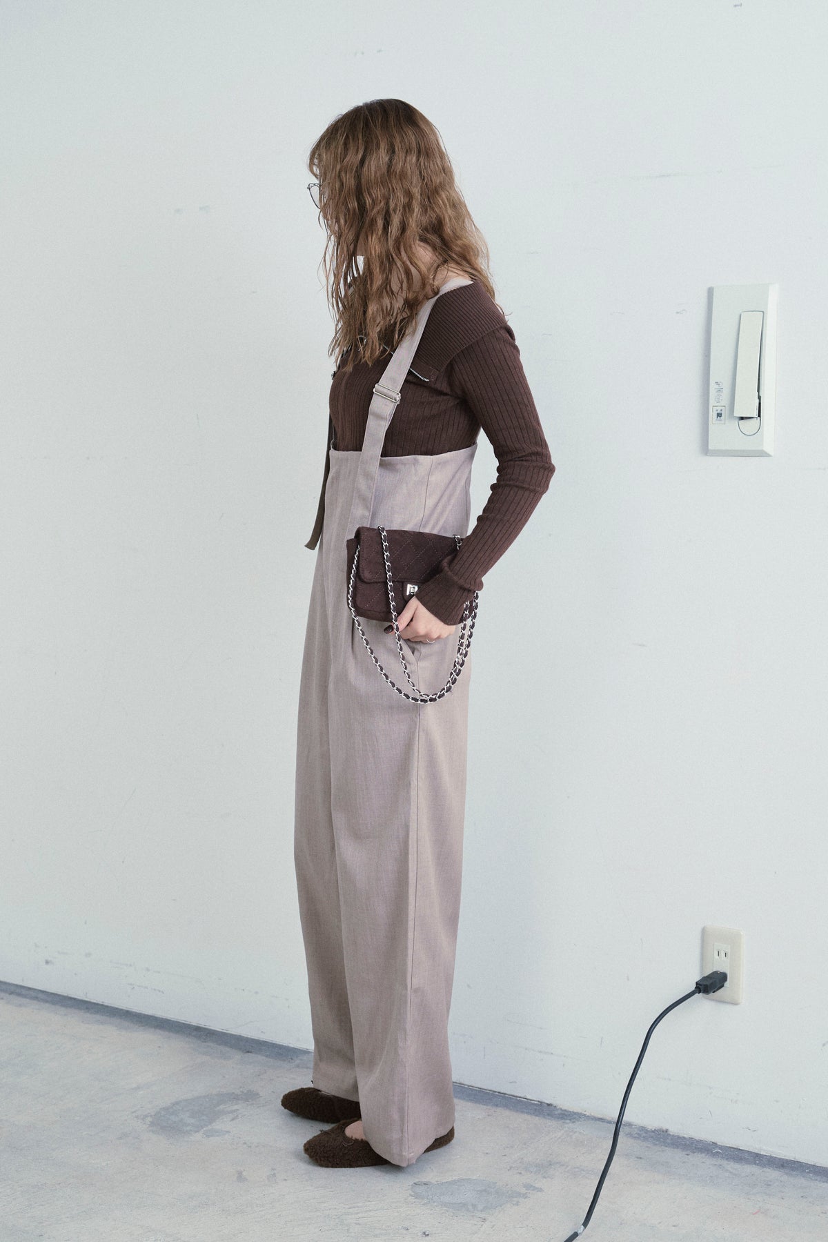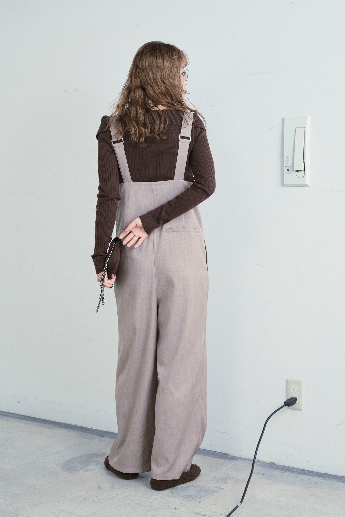 [予約/SET]ダブルジップオフショルリブニット+ハイウエストワイドサロペット(2set)