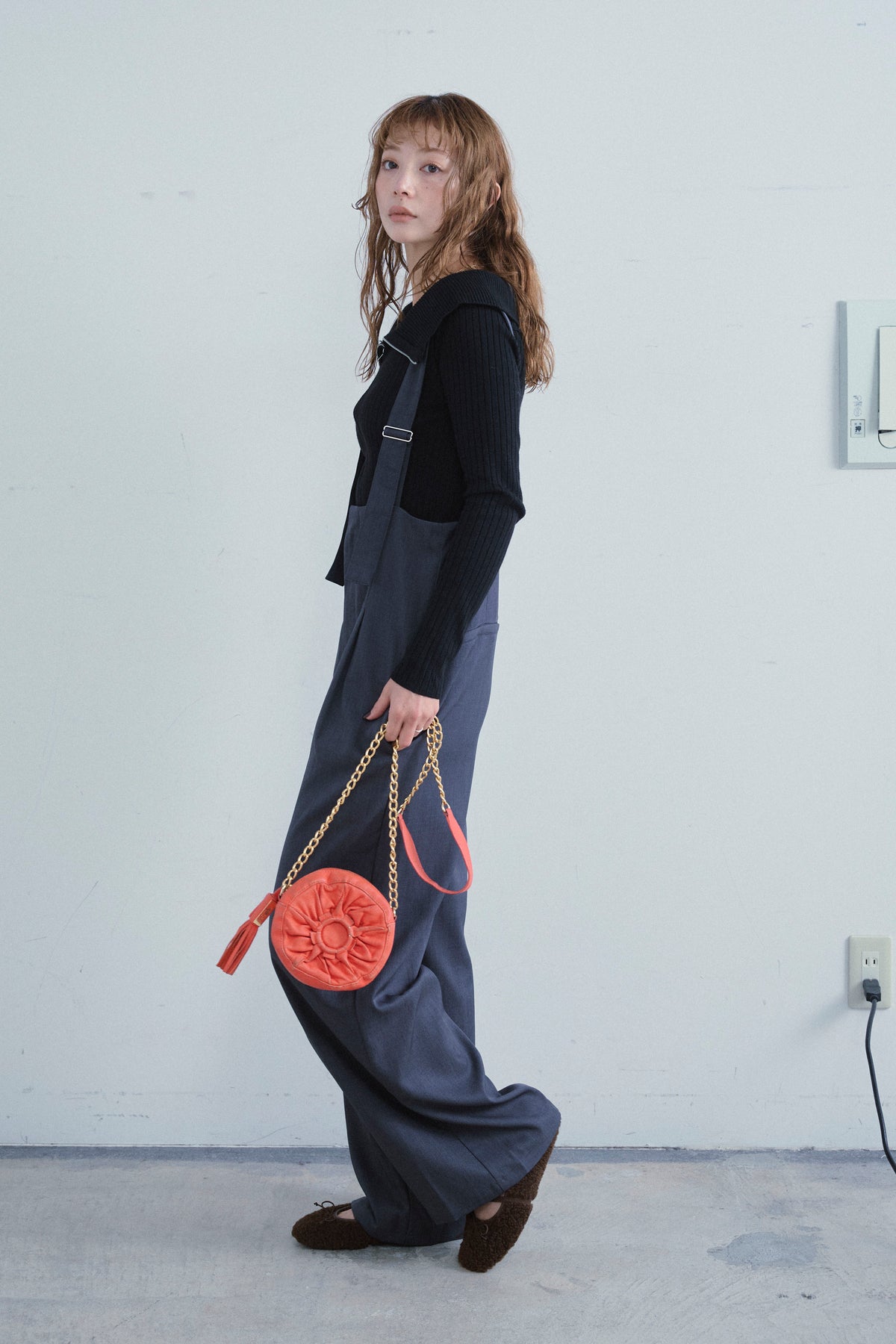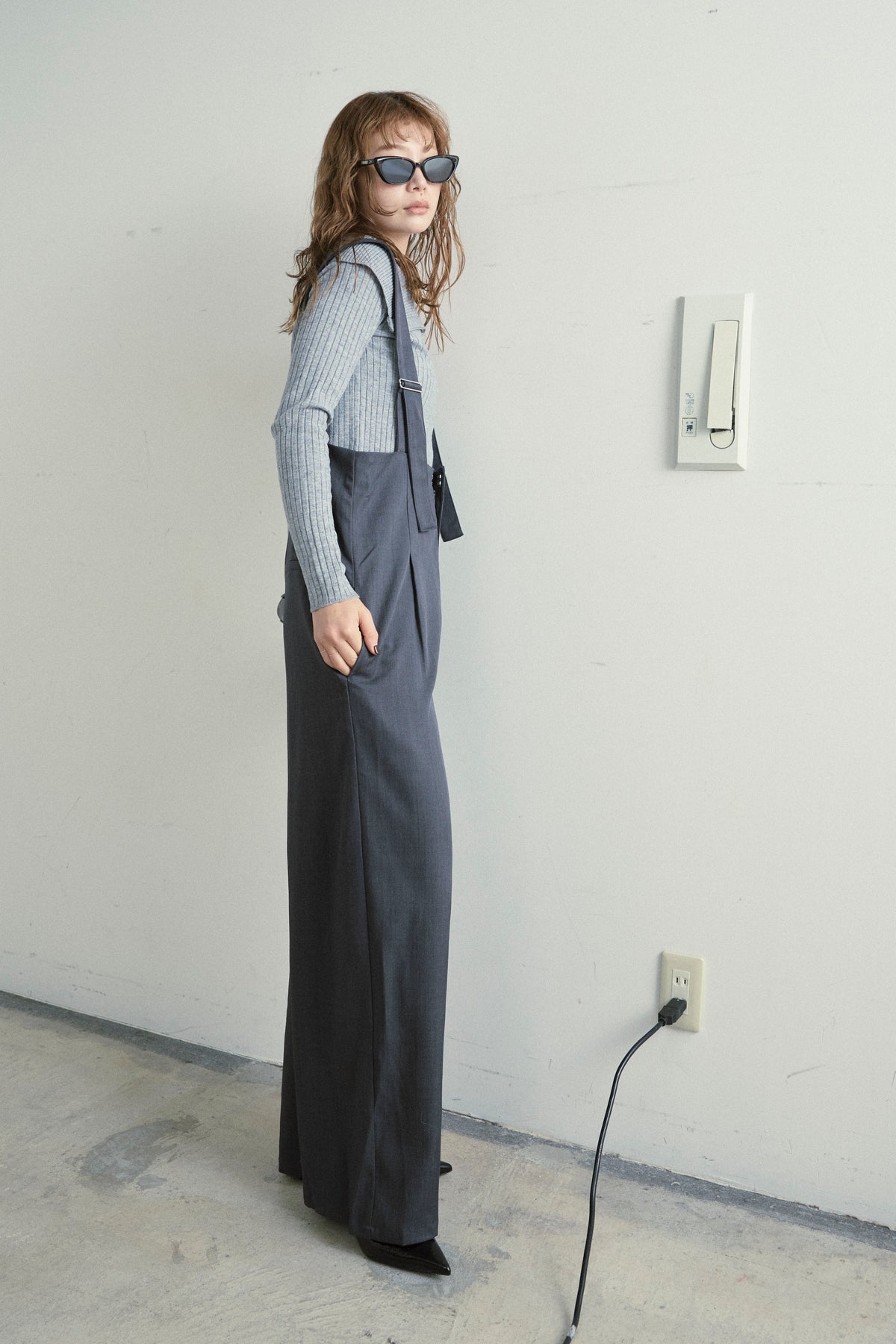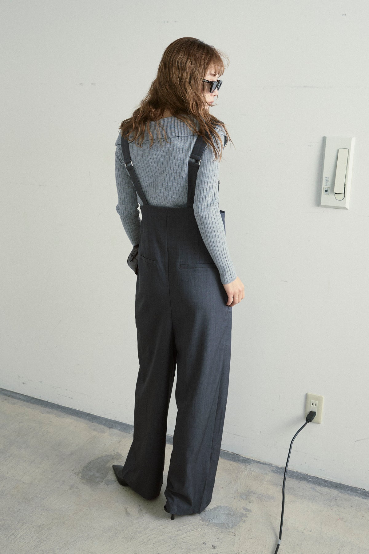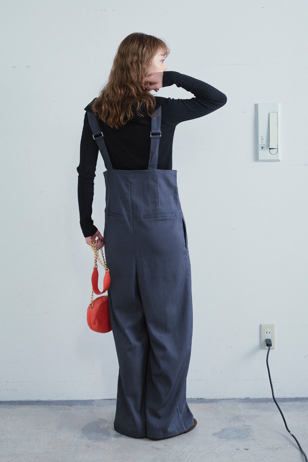[予約/SET]ダブルジップオフショルリブニット+ハイウエストワイドサロペット(2set)