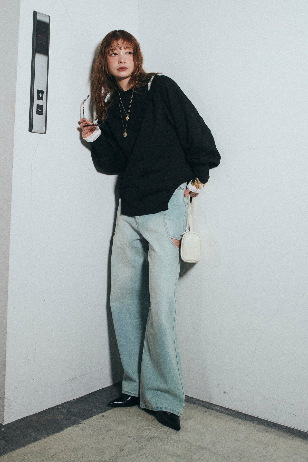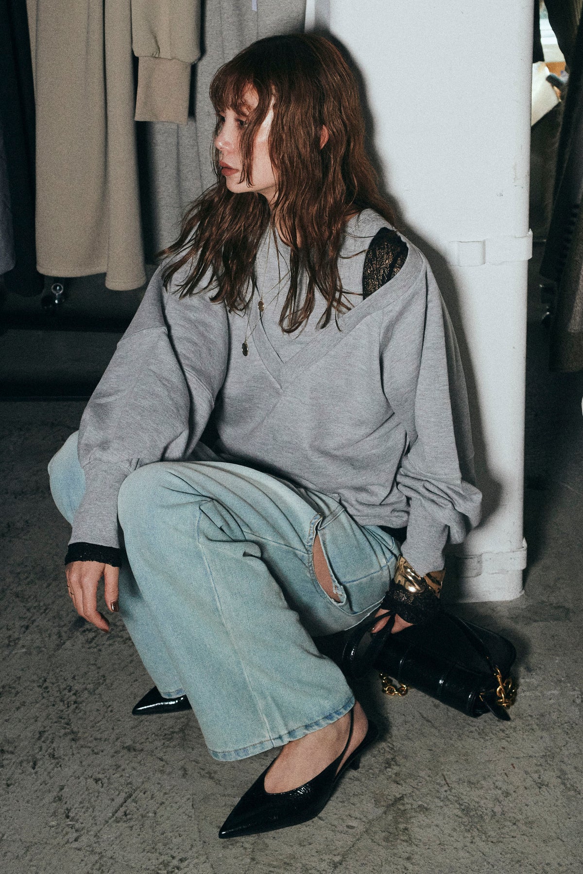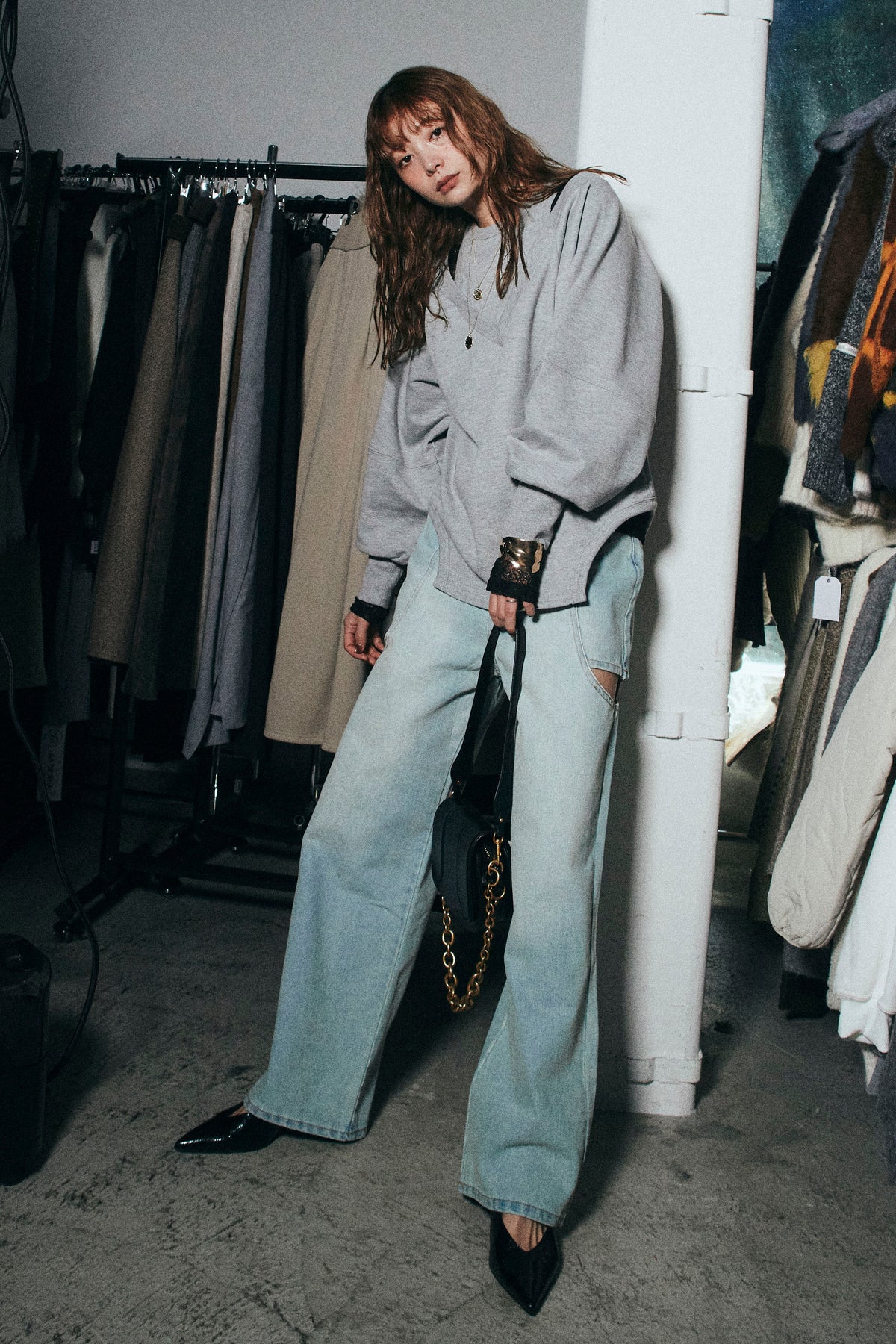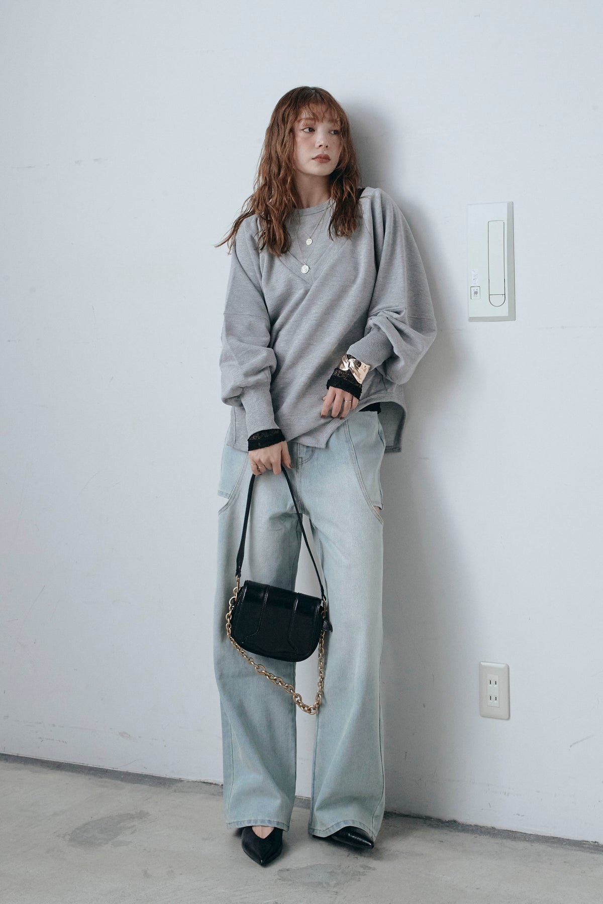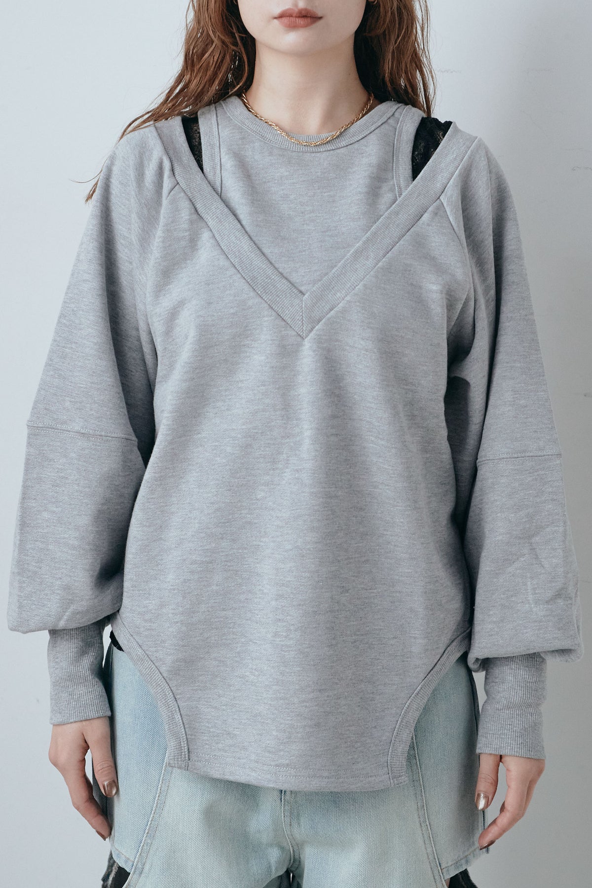 [予約/SET]カットアウトランタンスリーブスウェット+シアーレーストップス(2set)
